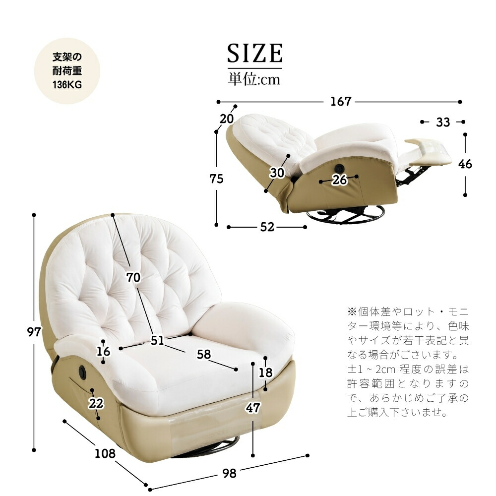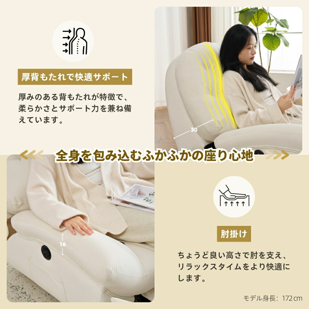 リクライニングソファ 電動 コンパクト ホワイト グレー
