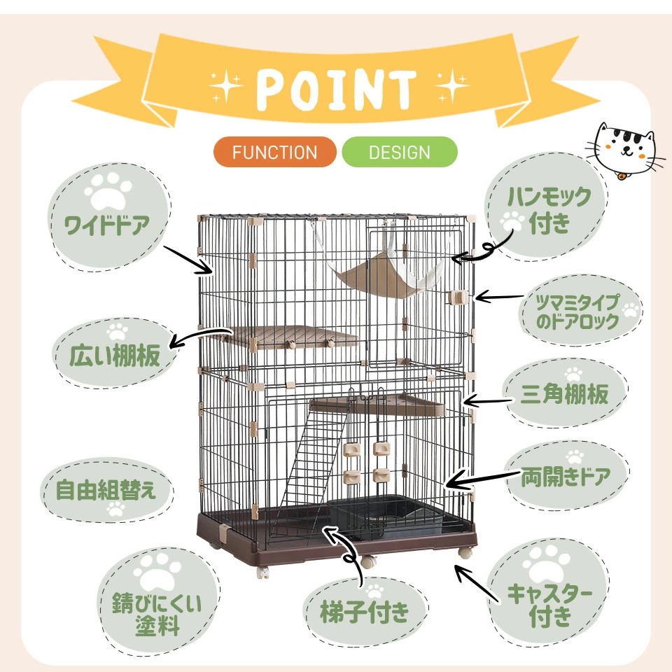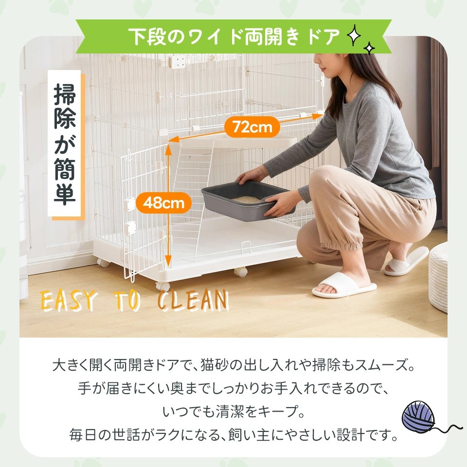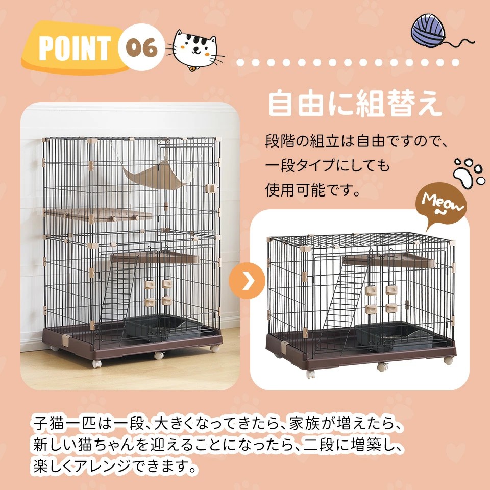猫 ケージ 2段 1段可能 キャットケ 猫用品 ケージ 人気 ホワイト ブラウン