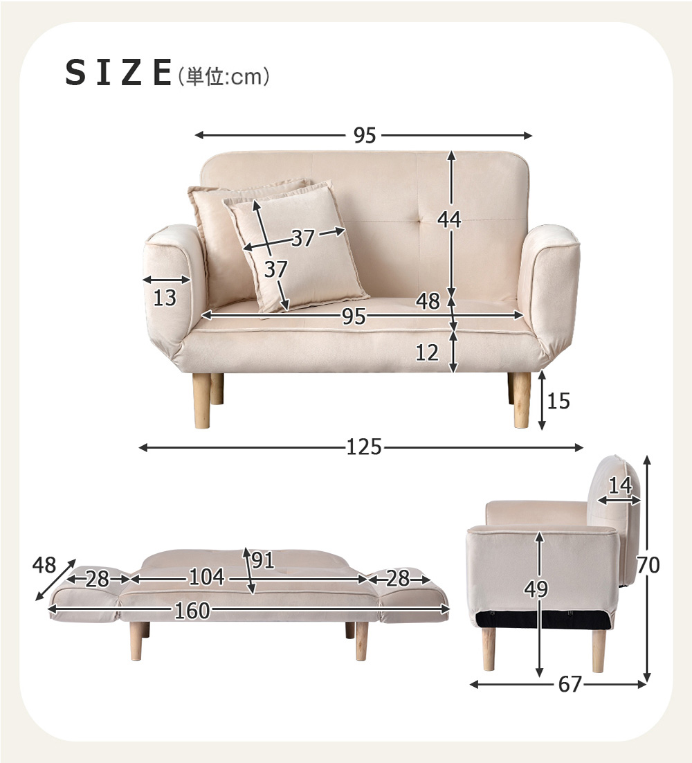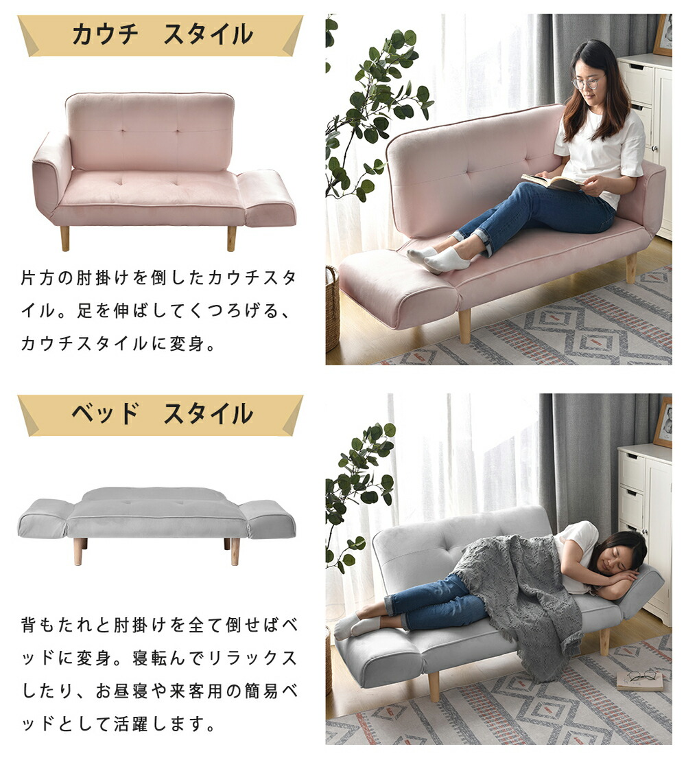 ソファ ソファー 2人掛け 折りたたみ ベージュ ピンク(NEW)