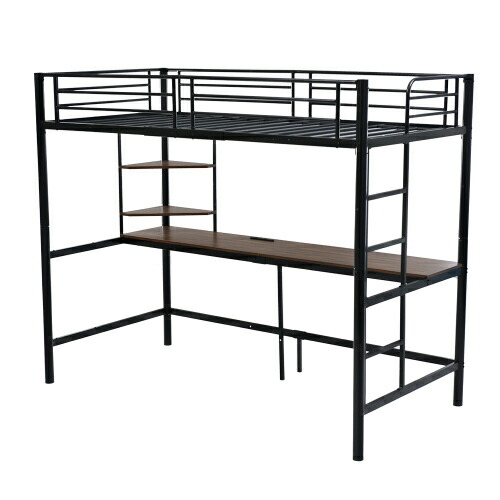 ロフトベッド デスク付き パイプベッド ホワイト ブラック