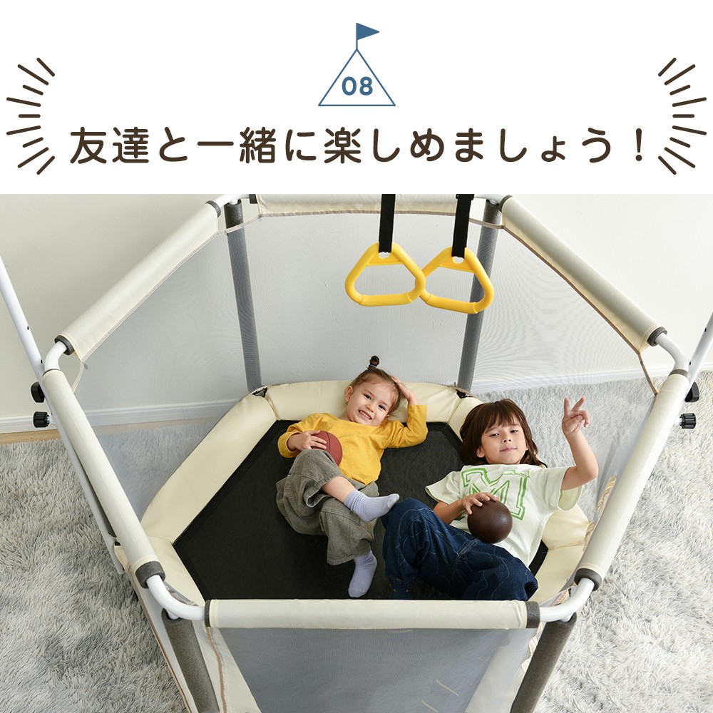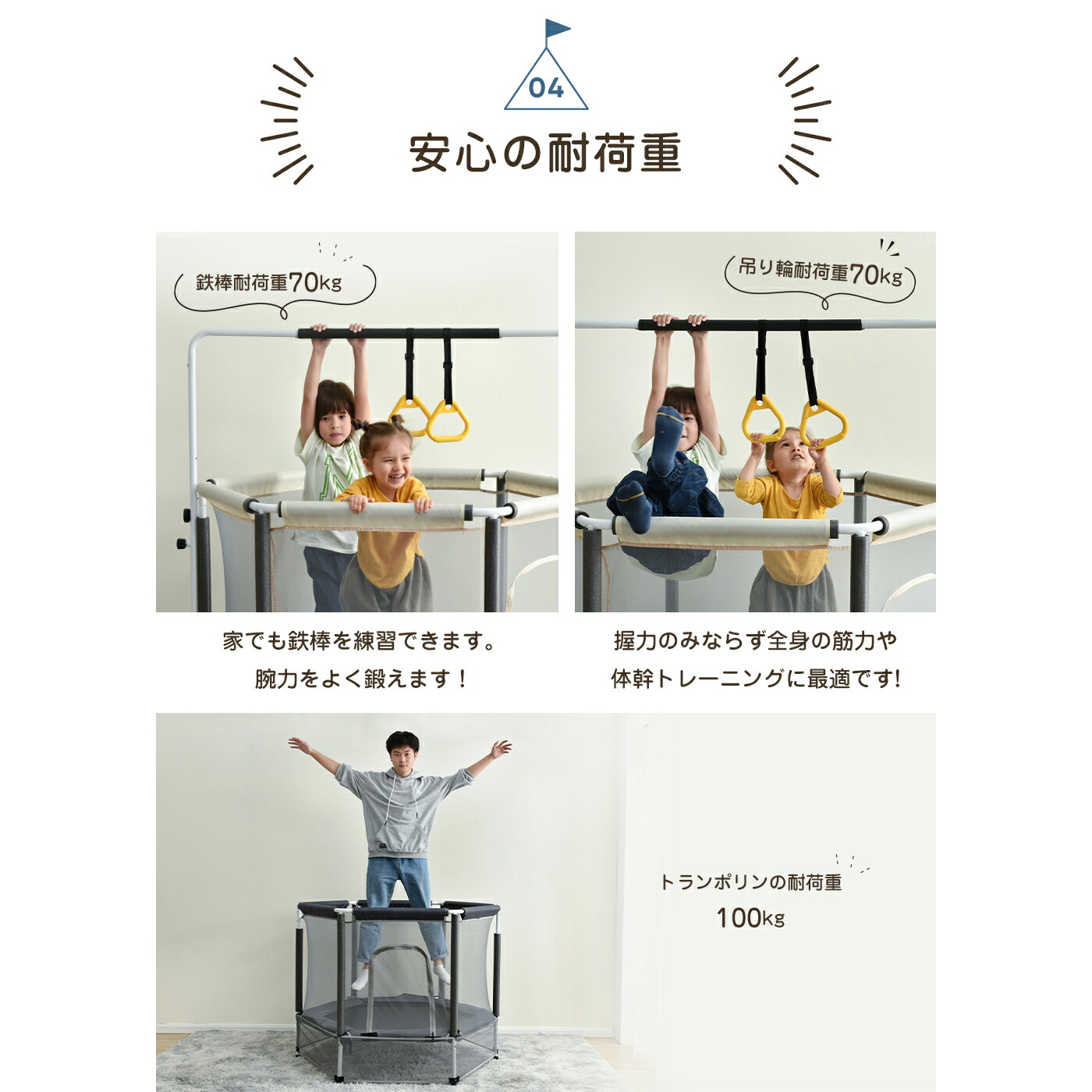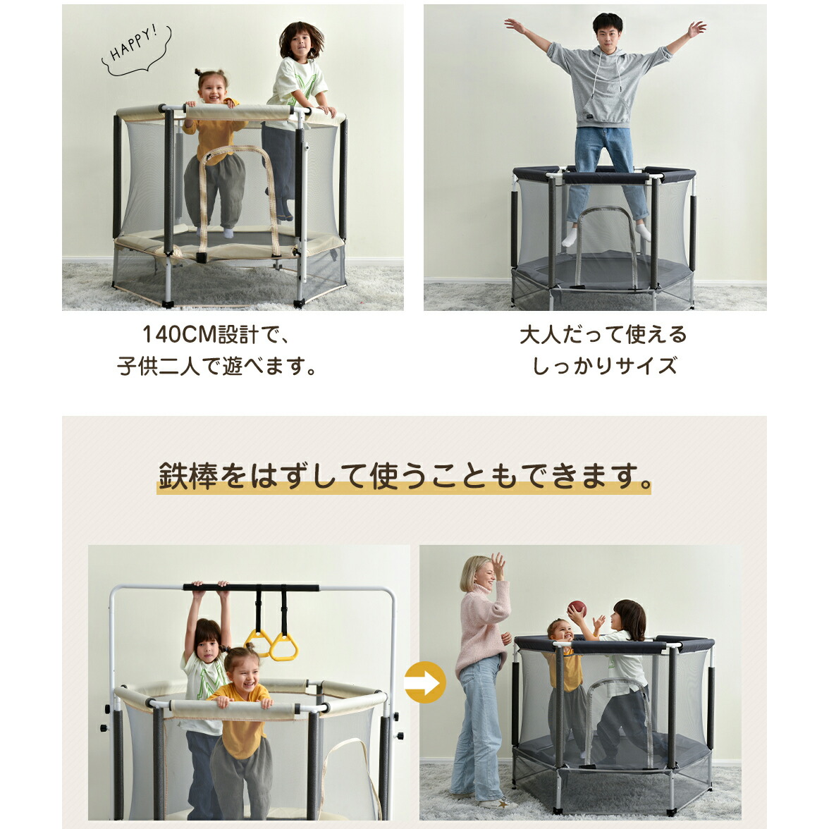 トランポリン 3ini ベビーサークル 鉄棒 吊り輪付き 多機能 子供用 安全ネット付き 安全カバー セーフティネット付き スプリング式 静音 大型 家庭用 室内 遊具 とらんぽりん キッズ スポーツ