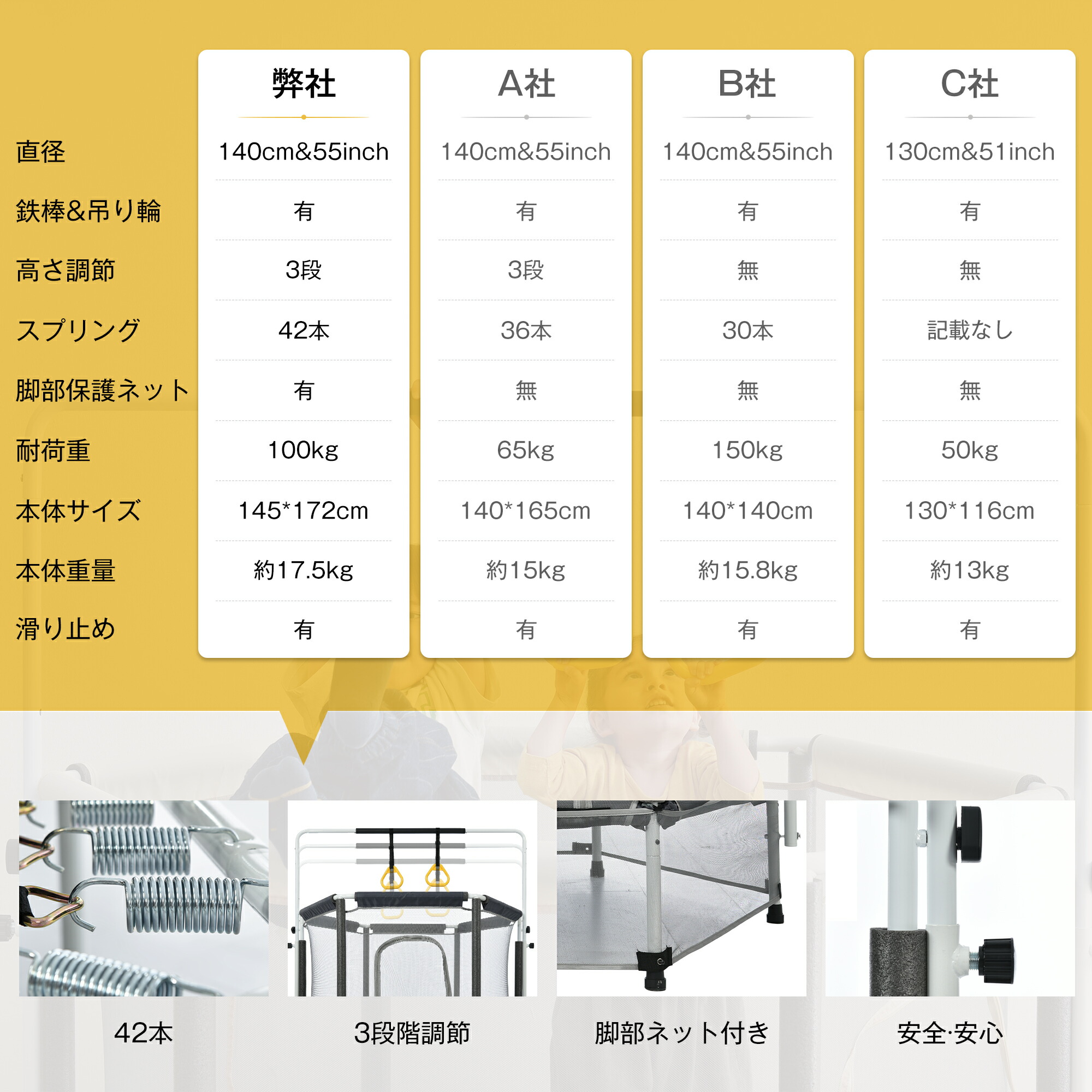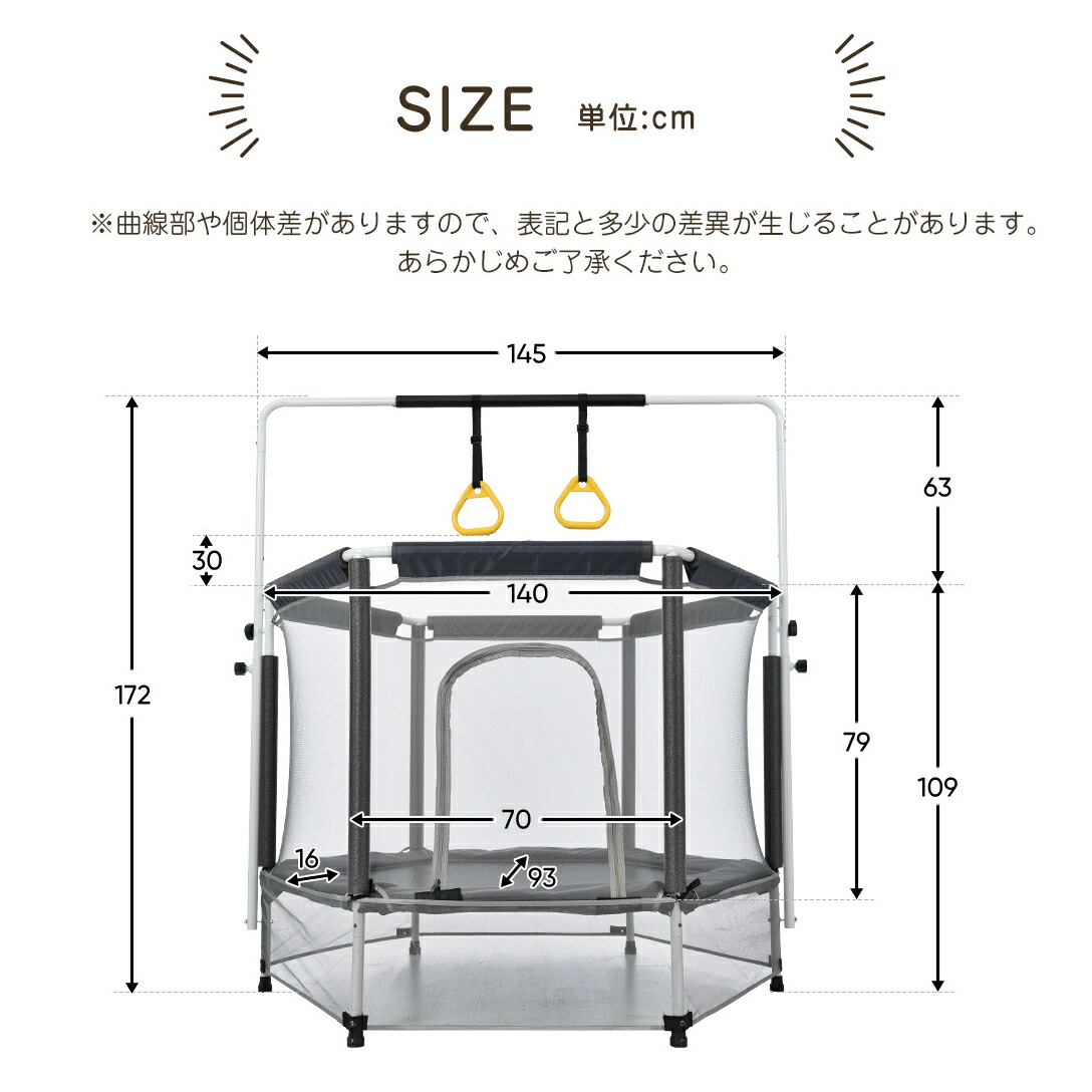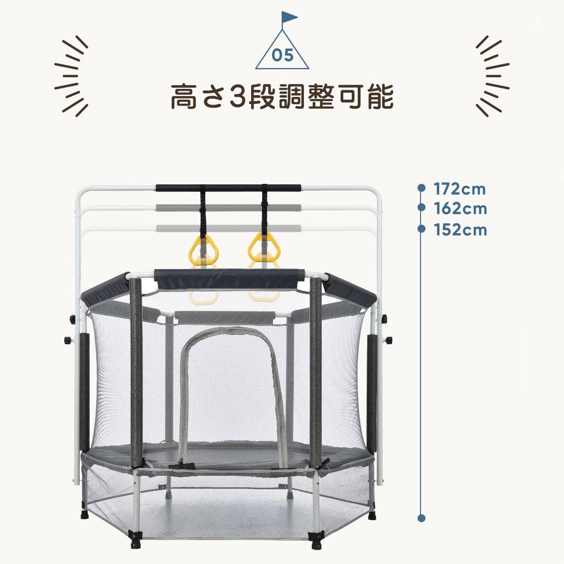 トランポリン 3ini ベビーサークル 鉄棒 吊り輪付き 多機能 子供用 安全ネット付き 安全カバー セーフティネット付き スプリング式 静音 大型 家庭用 室内 遊具 とらんぽりん キッズ スポーツ