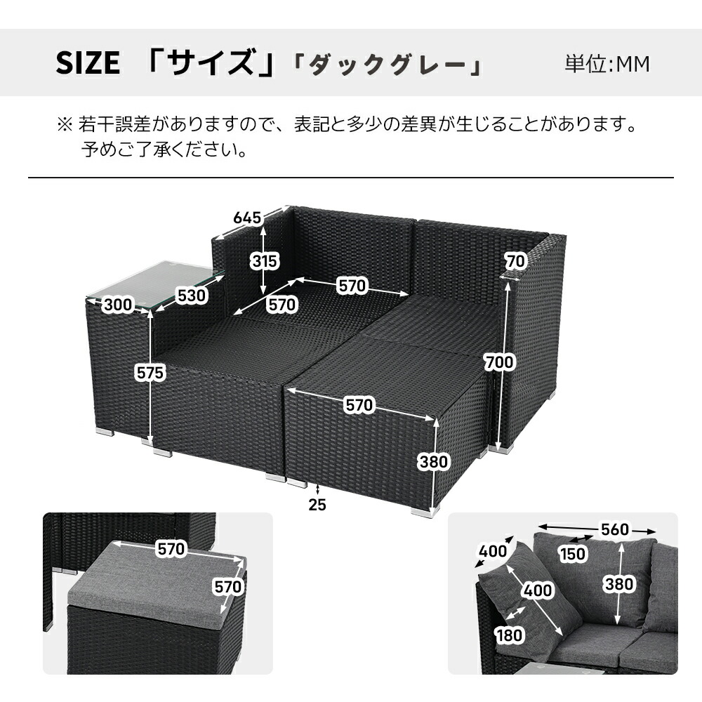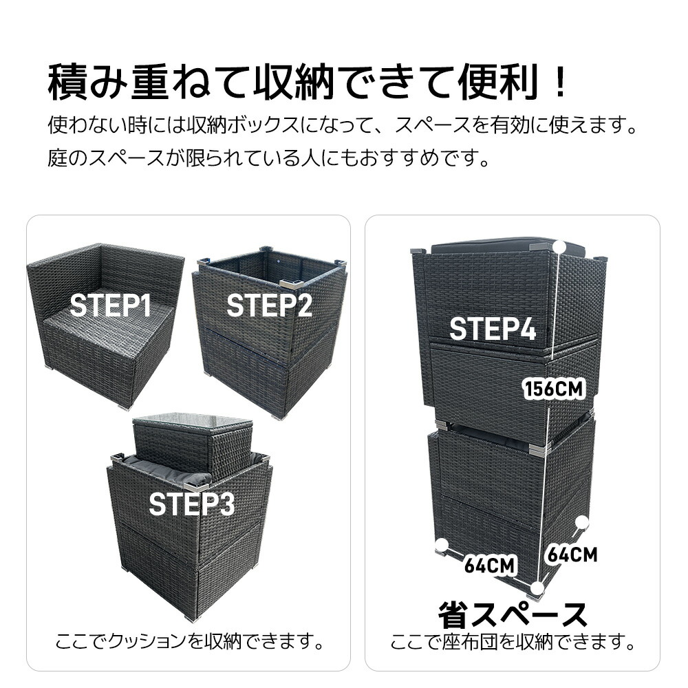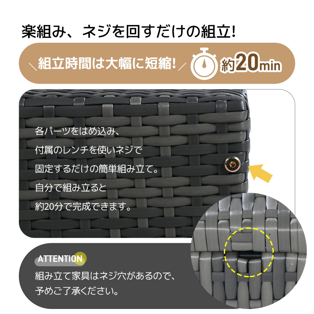 ガーデンファニチャー ラタン調 組合せ グレー 【NEW】ブラック