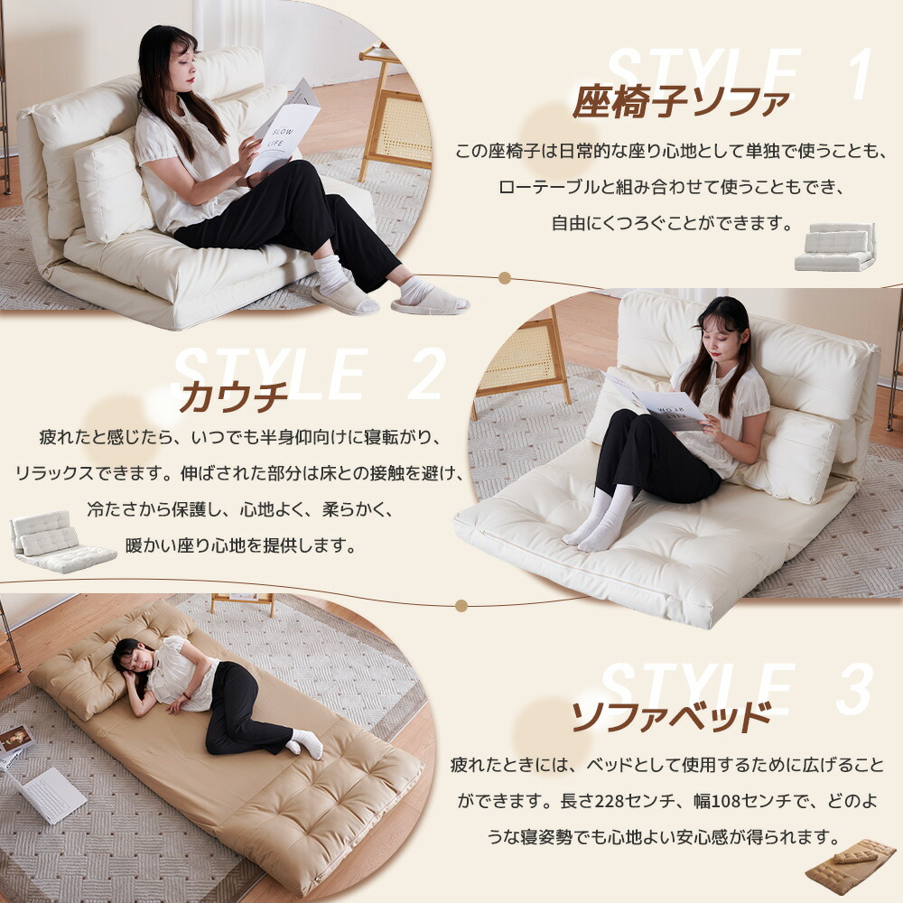 ソファベッド 折り畳み 6段階調節 ソ ベージュ グレー エクルベージュ ブラック