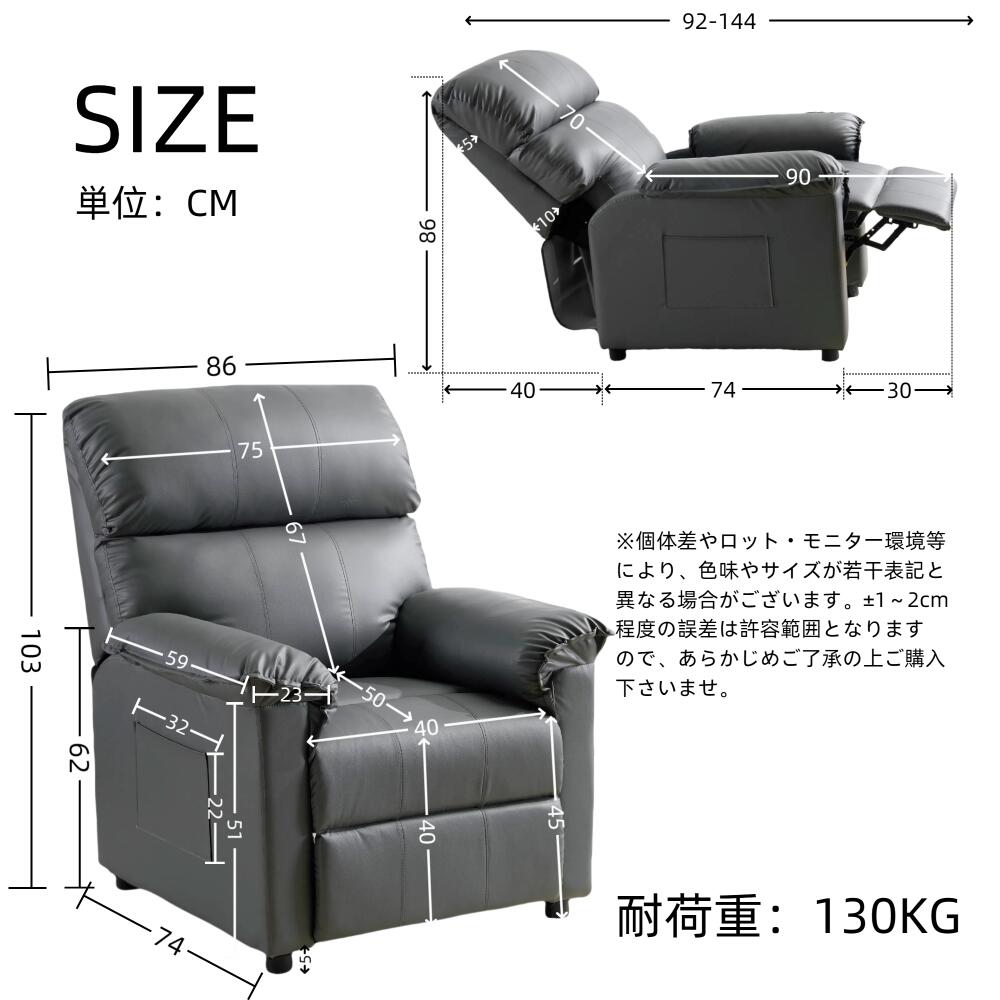 リクライニングソファ 1人掛け 寝られ ベージュ グレー キャメル