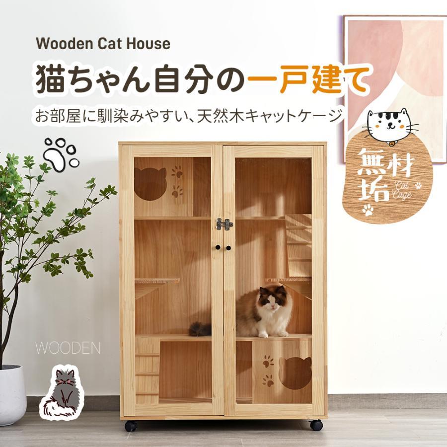 猫 ケージ 3段 木製 キャットケージ 猫用品 ケージ 通販