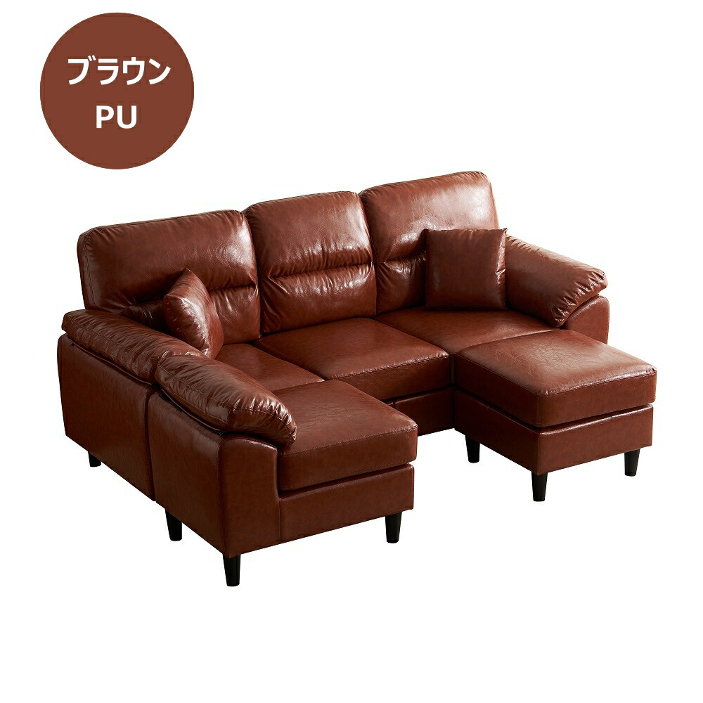 カウチソファ ソファ 5人掛け 3人掛 ホワイト グレー カーキー ブラウン(PUレザー) ブラック(PUレザー)