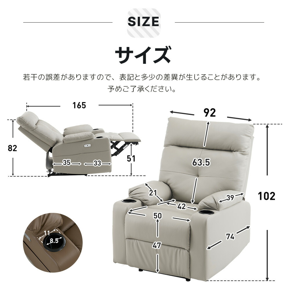 電動リクライニング ソファー 1人掛け ベージュグレー ブラック グレー