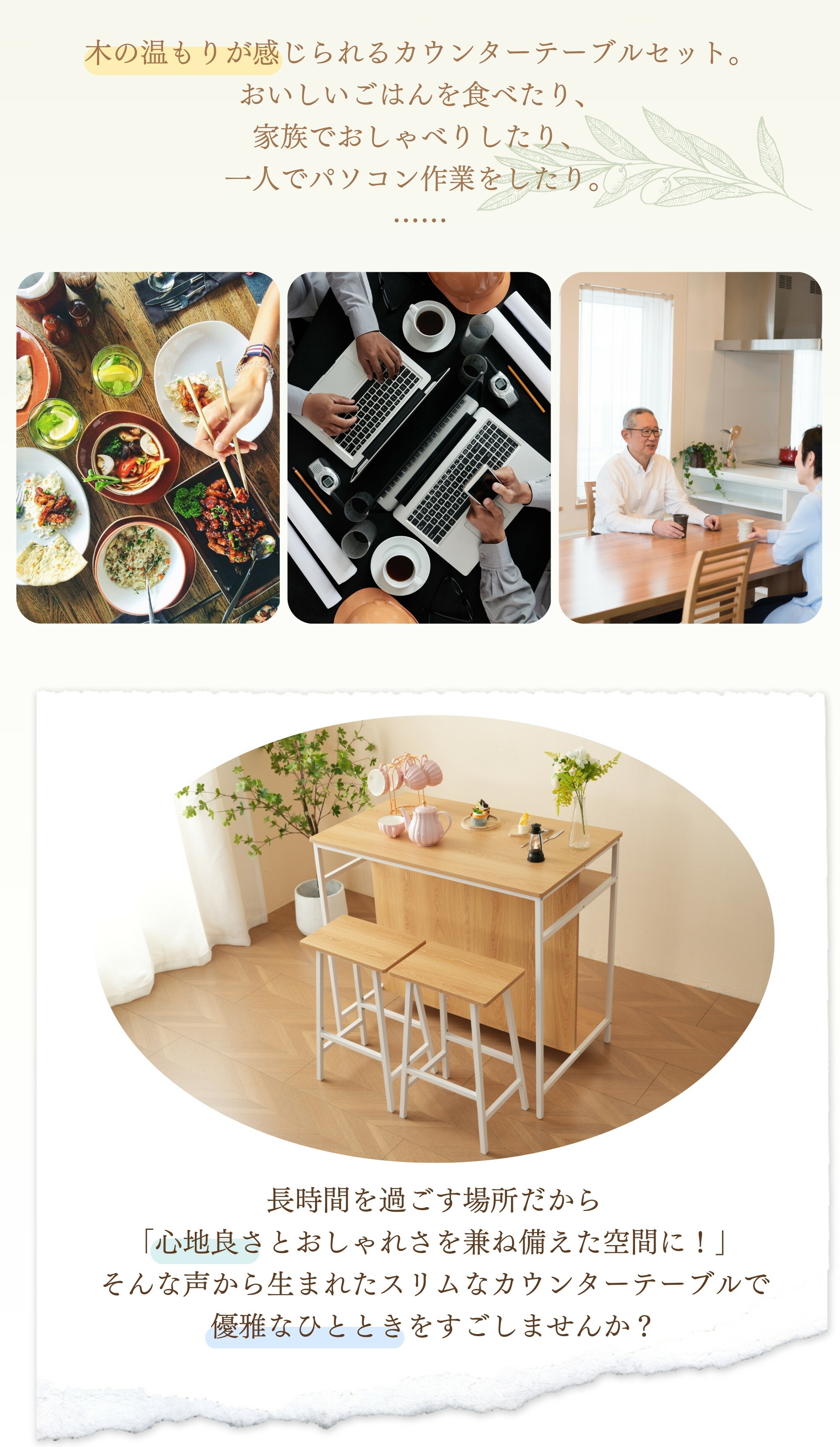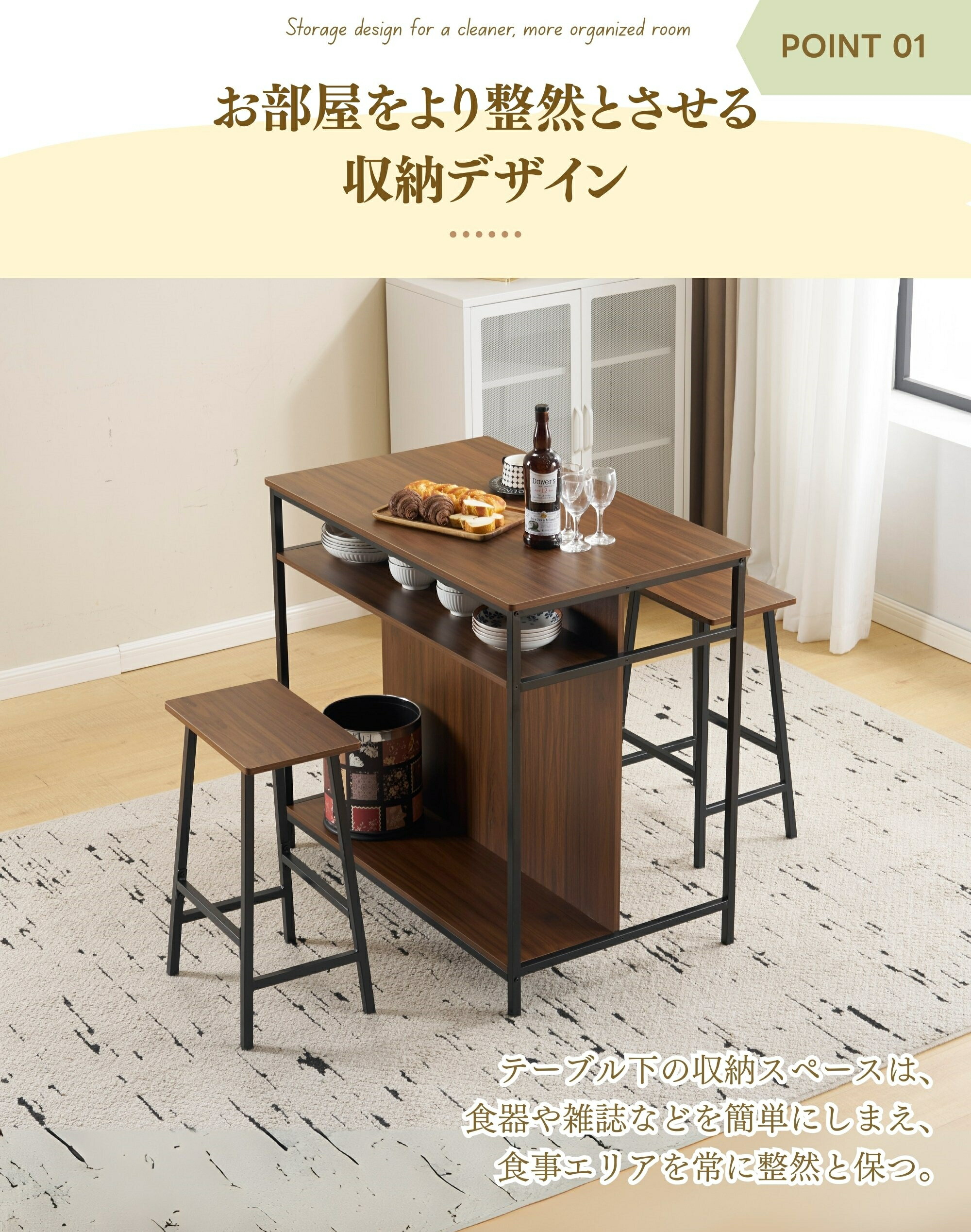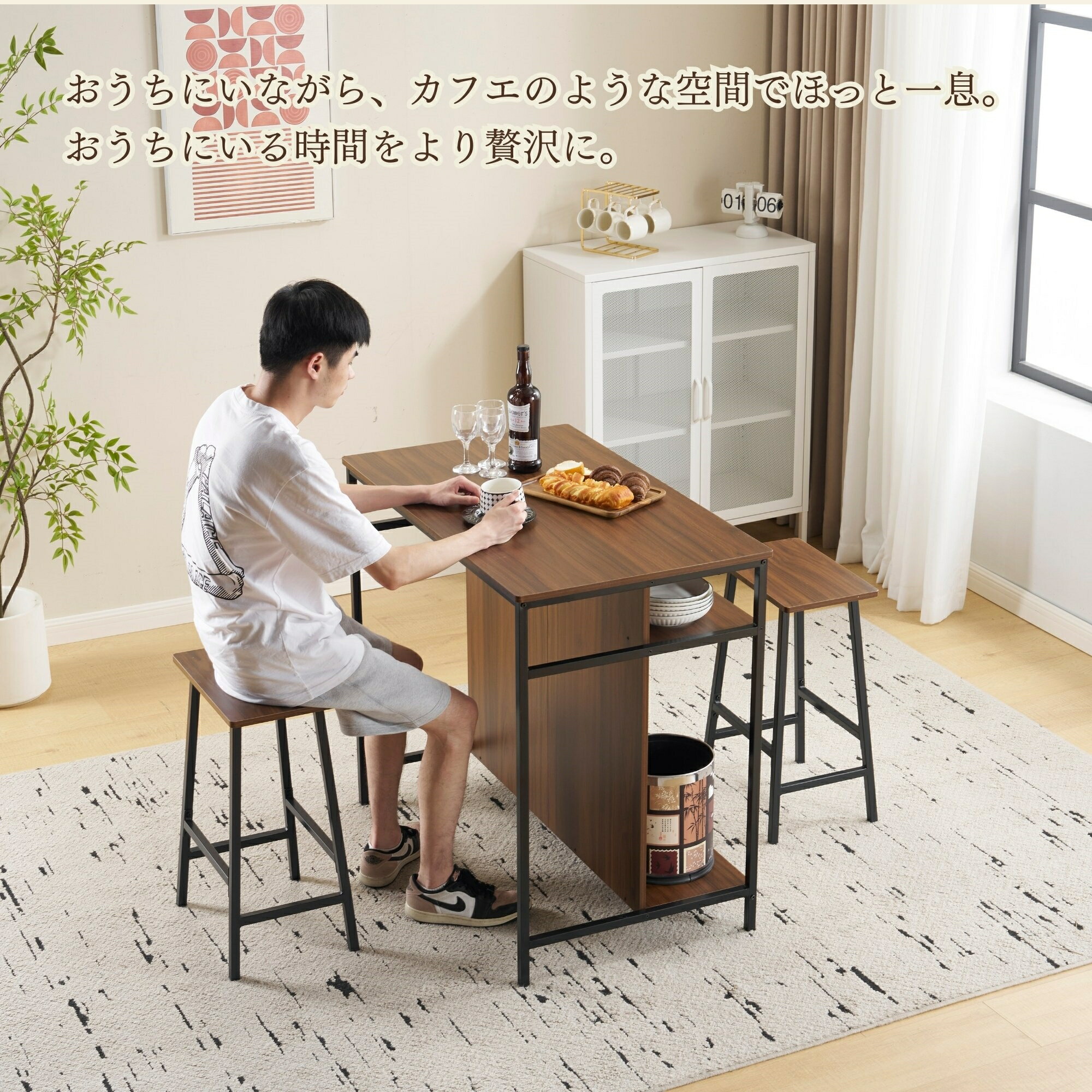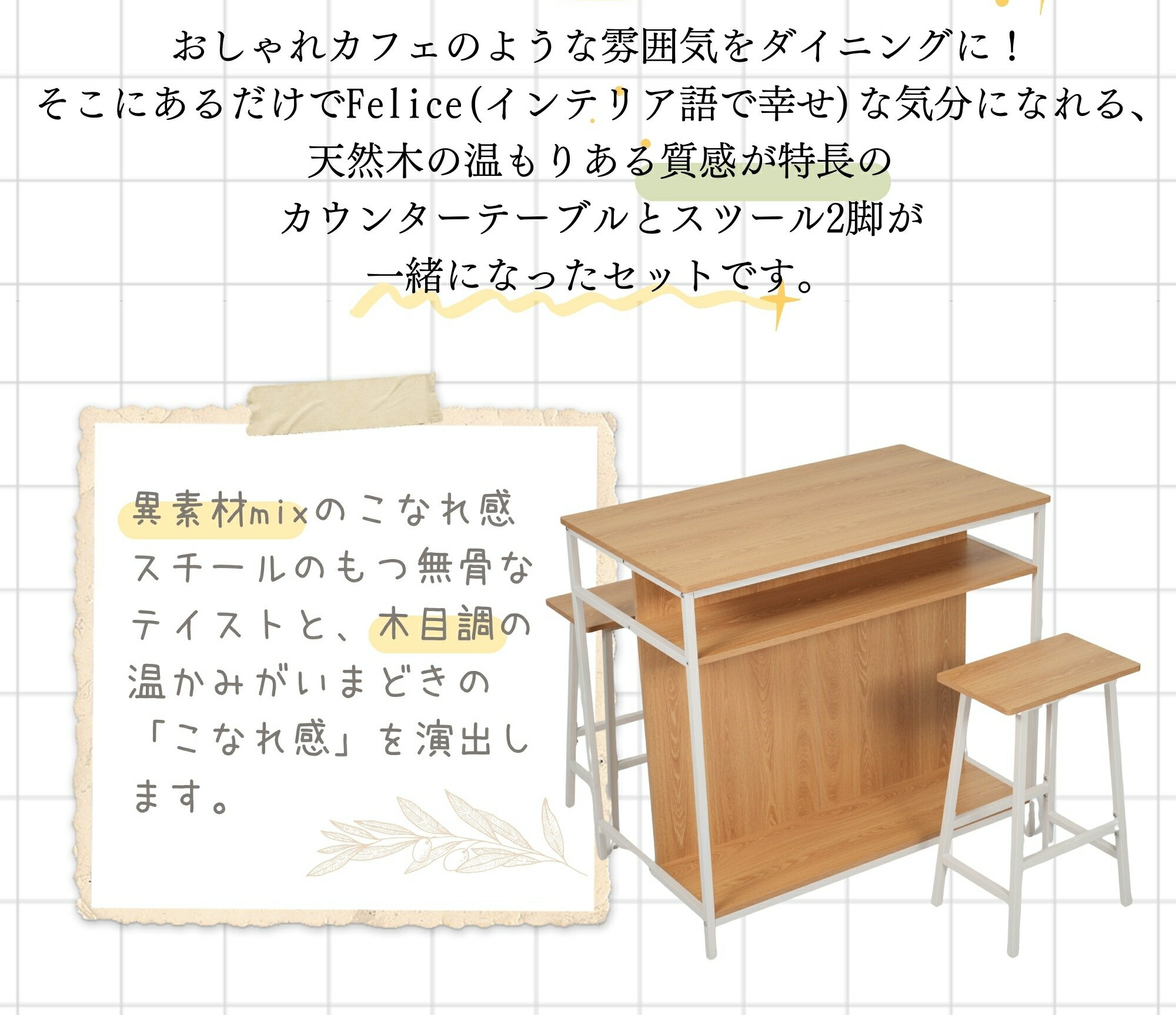 カウンターテーブル ハイスツール2脚セ ブラウン+ブラック ナチュラル+ホワイト