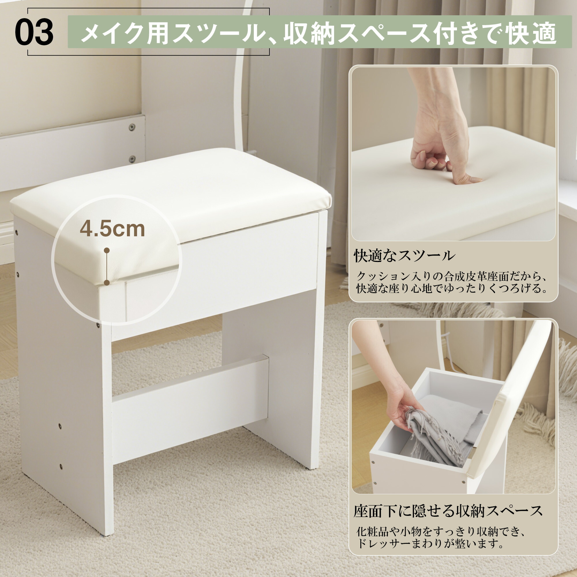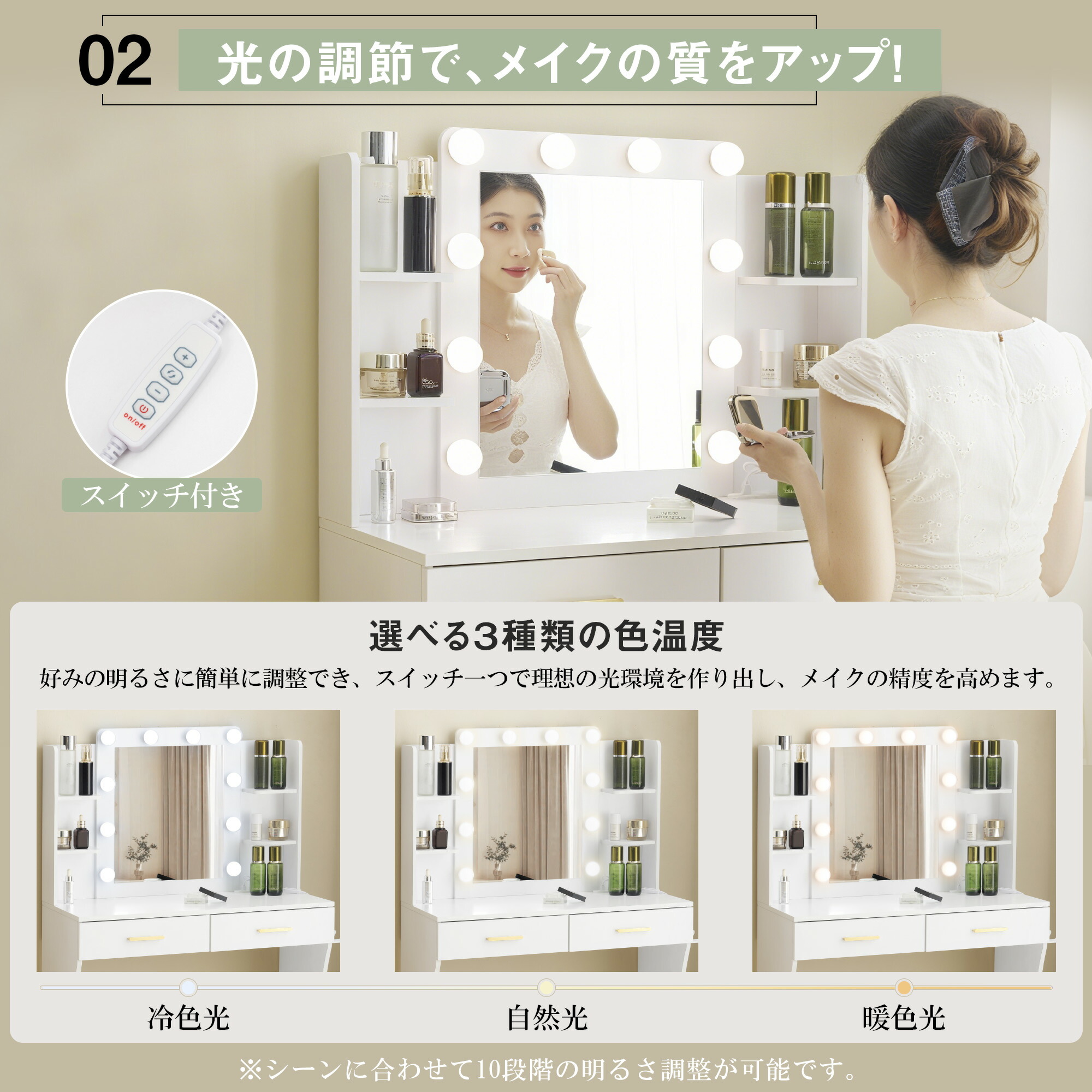 ドレッサー 化粧台 コンセント付き テ