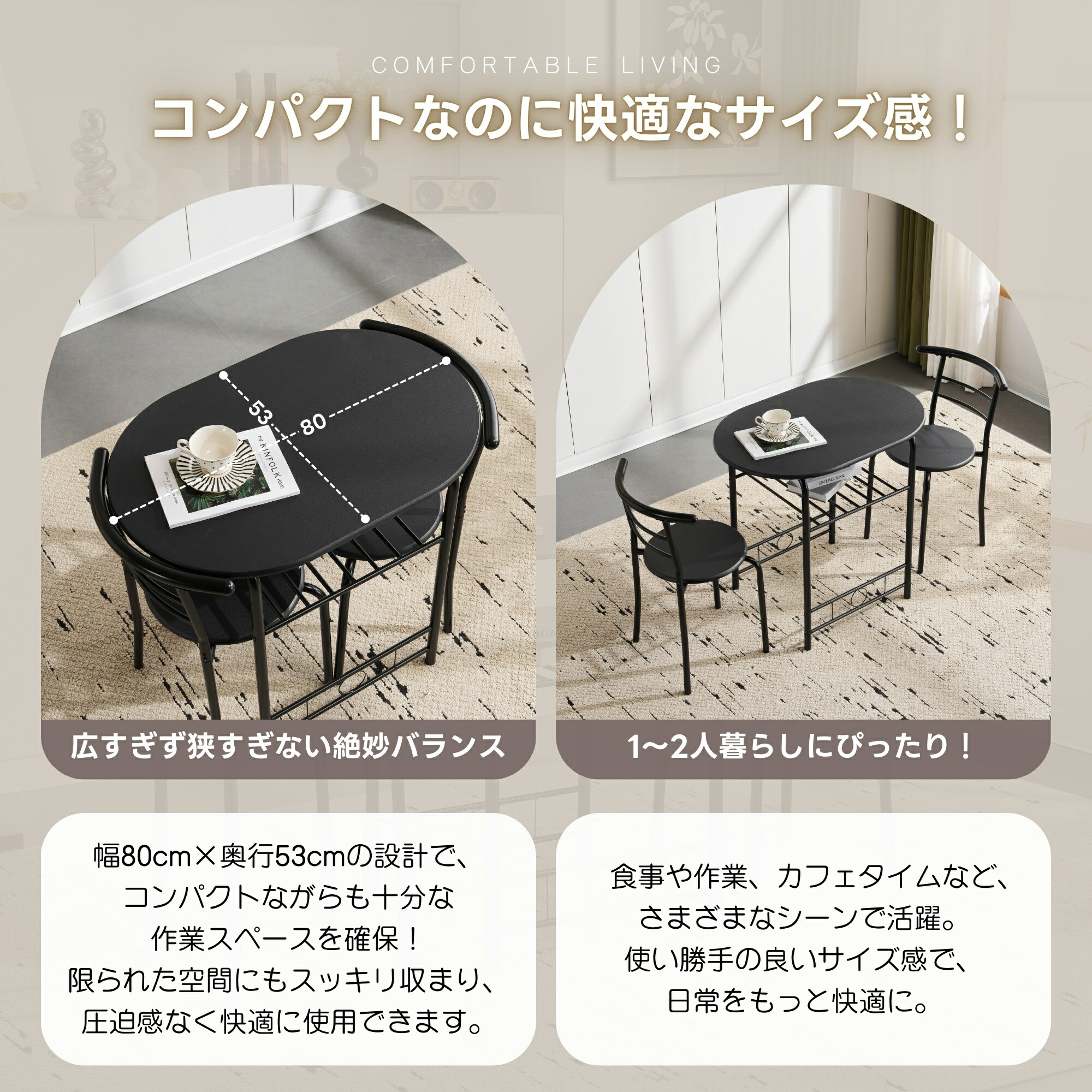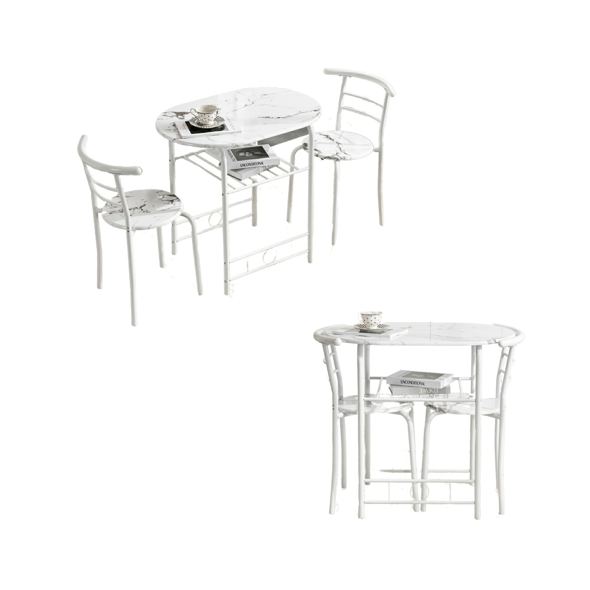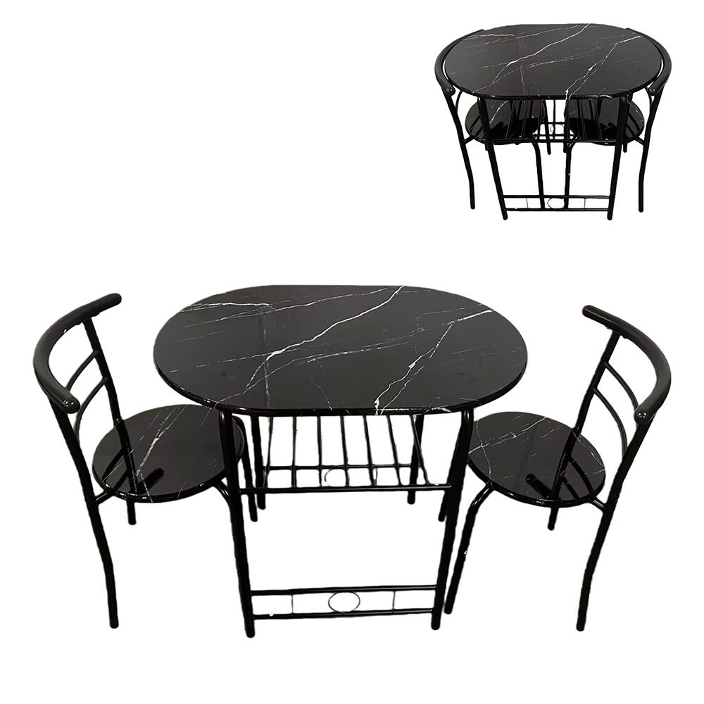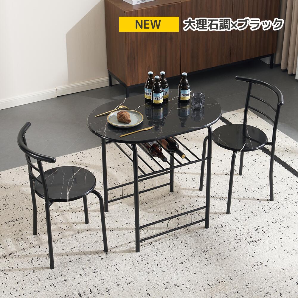 ダイニング 3点セット2人掛け 円形 大理石調×ホワイト 大理石調×ブラック