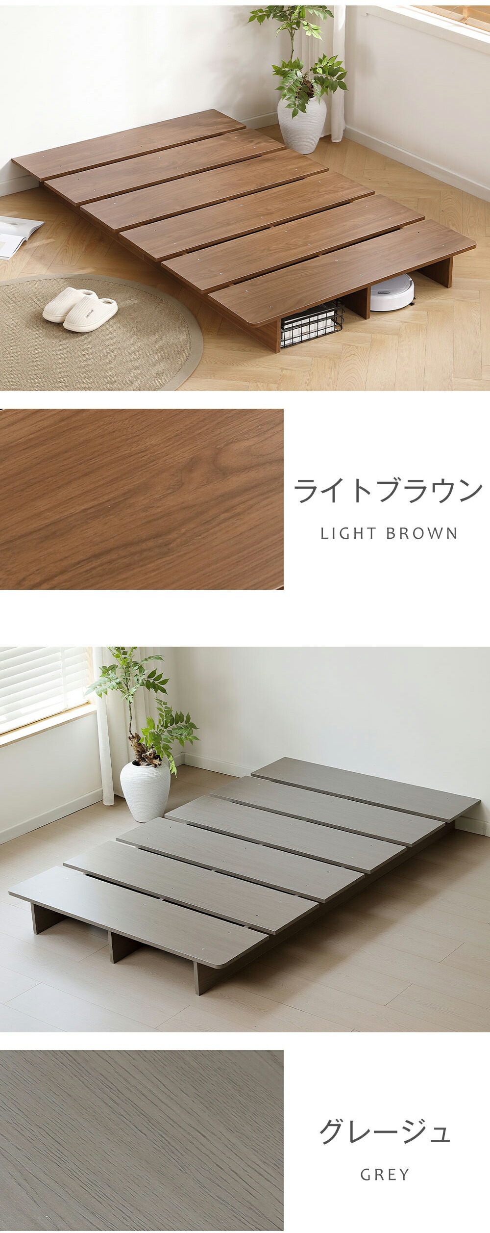 ベッド ローベッド ベッドフレーム す セミシングル シングル セミダブル ダブル ブラウン グレー ナチュラル