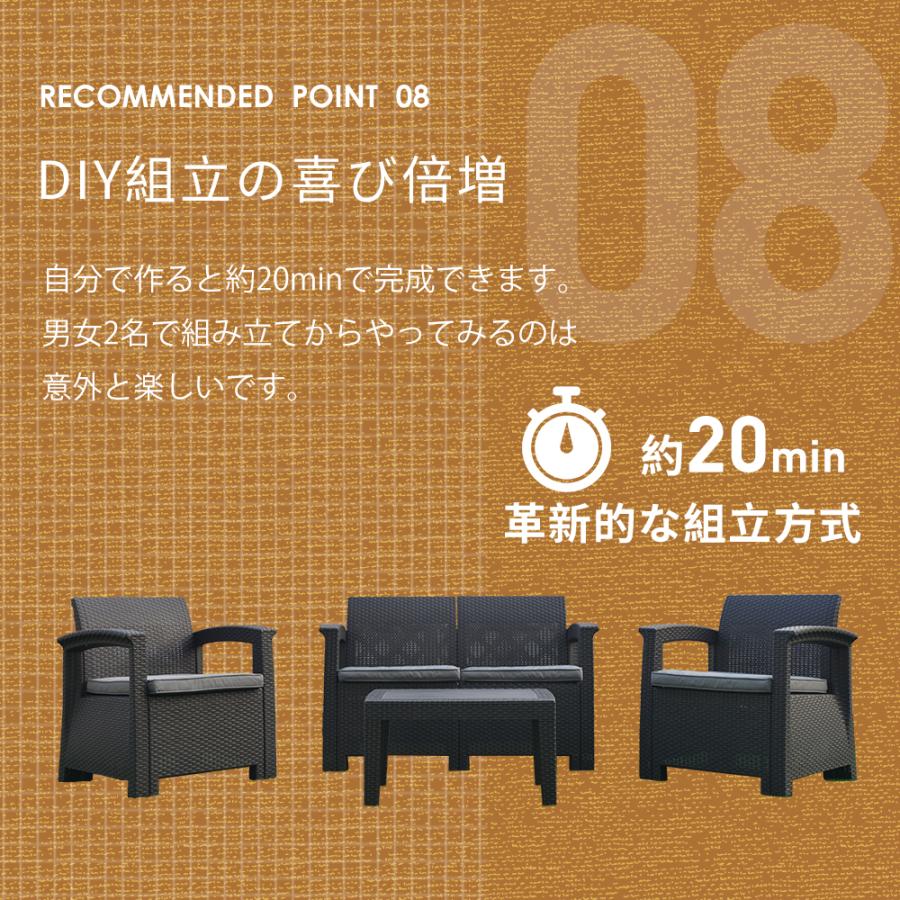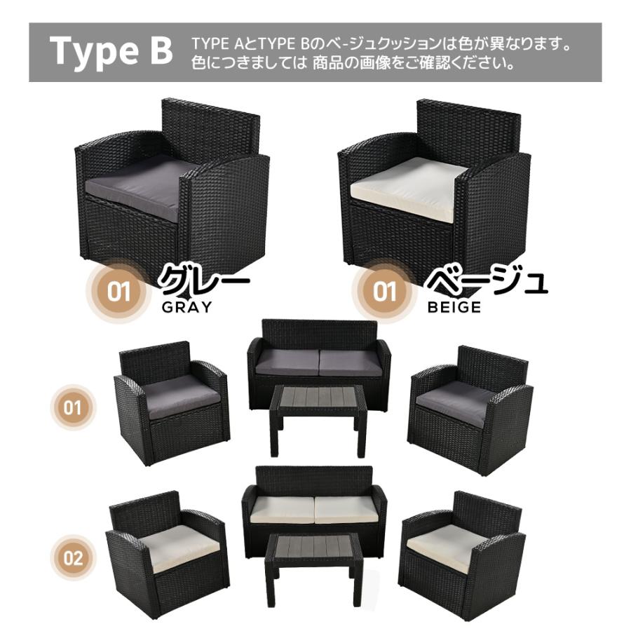 ガーデンテーブルセット 雨ざらし 4人 クッション:グレー クッション:ベージュ