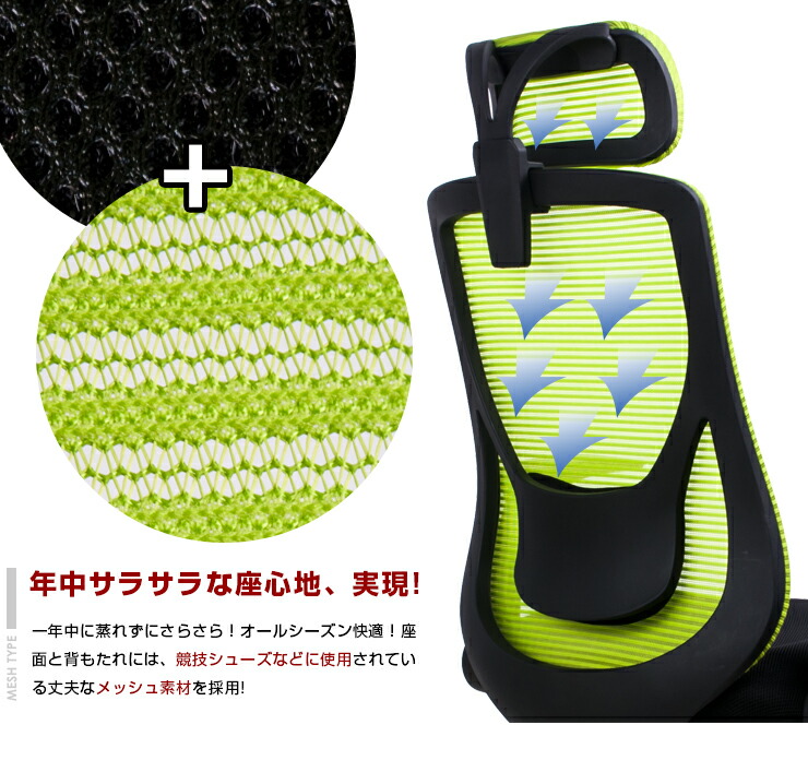 オフィスチェア メッシュ ハイバック ブラック ブルー グレー レッド グリーン ワイン