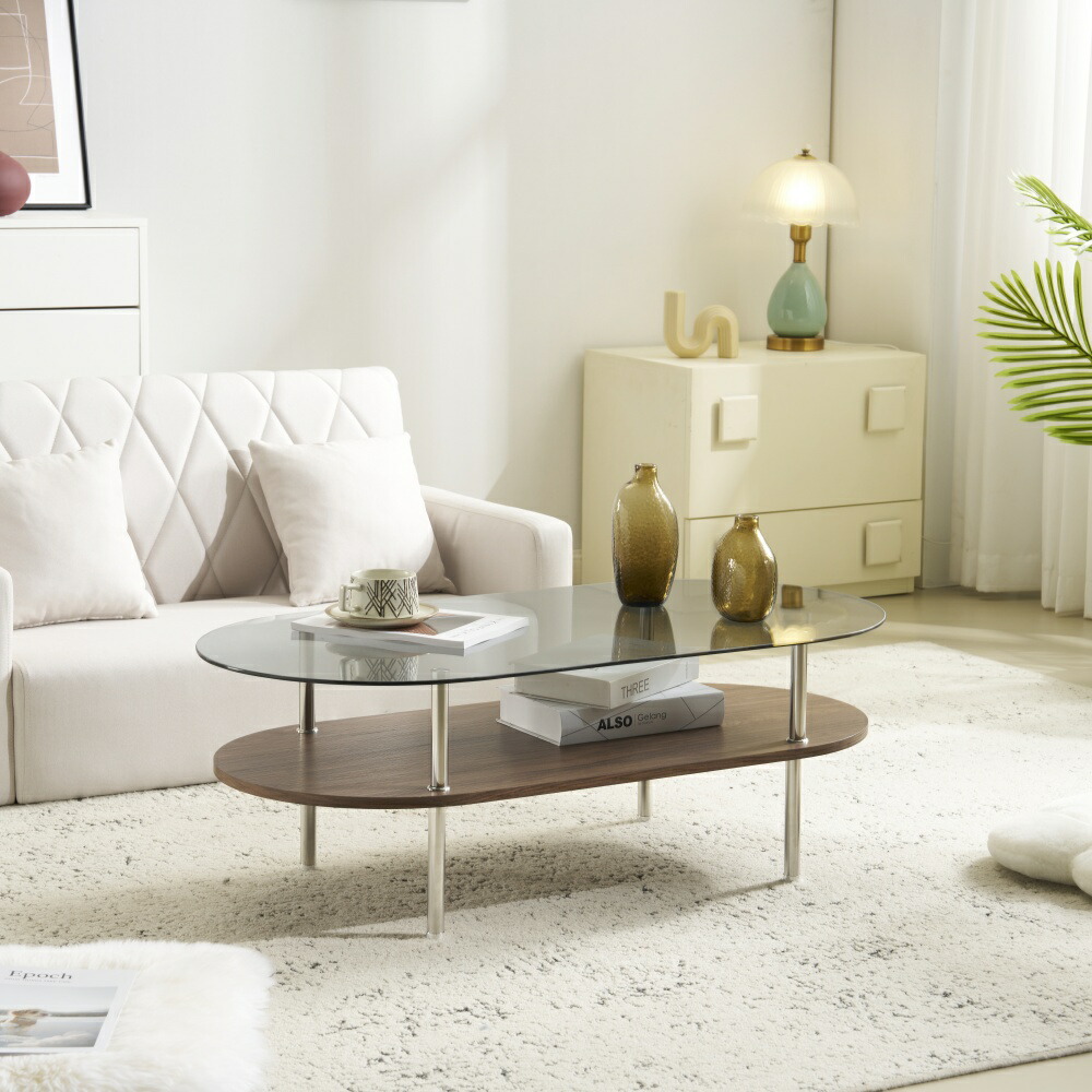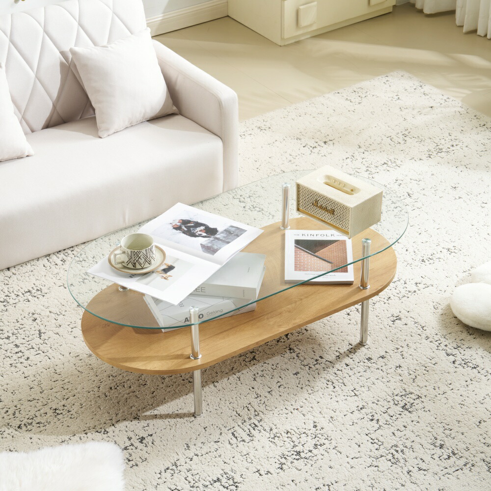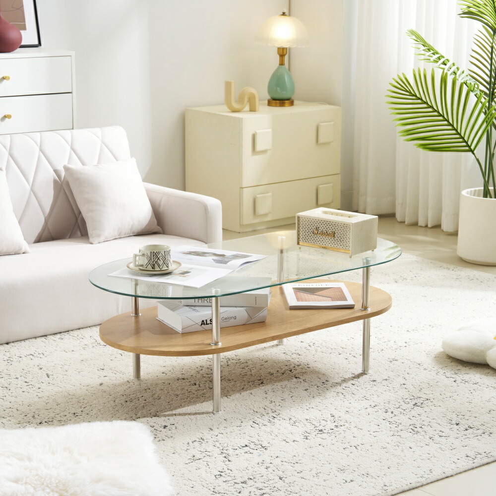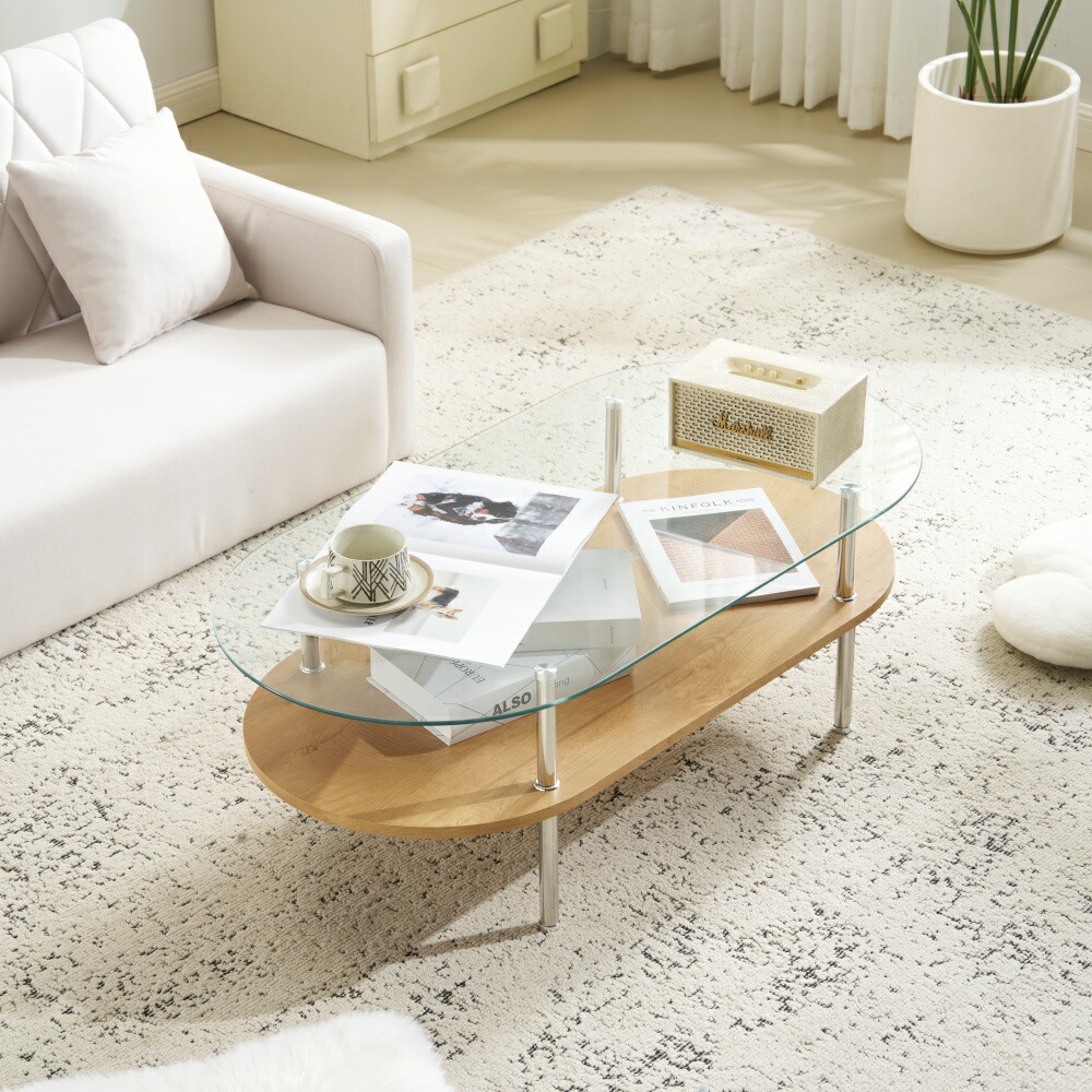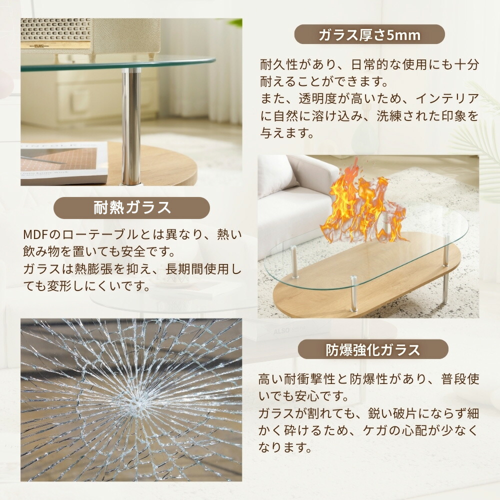 ガラステーブル 収納付き ローテーブル ブラウン ナチュラル