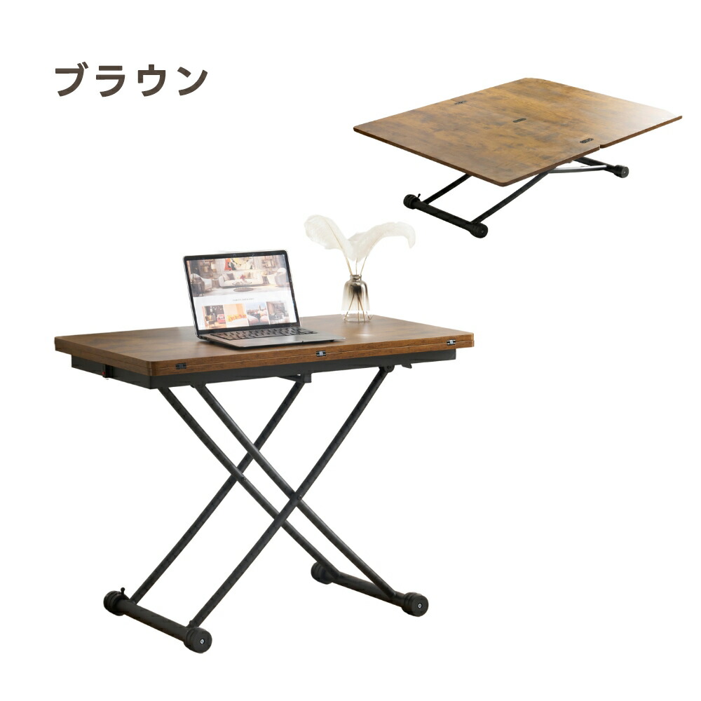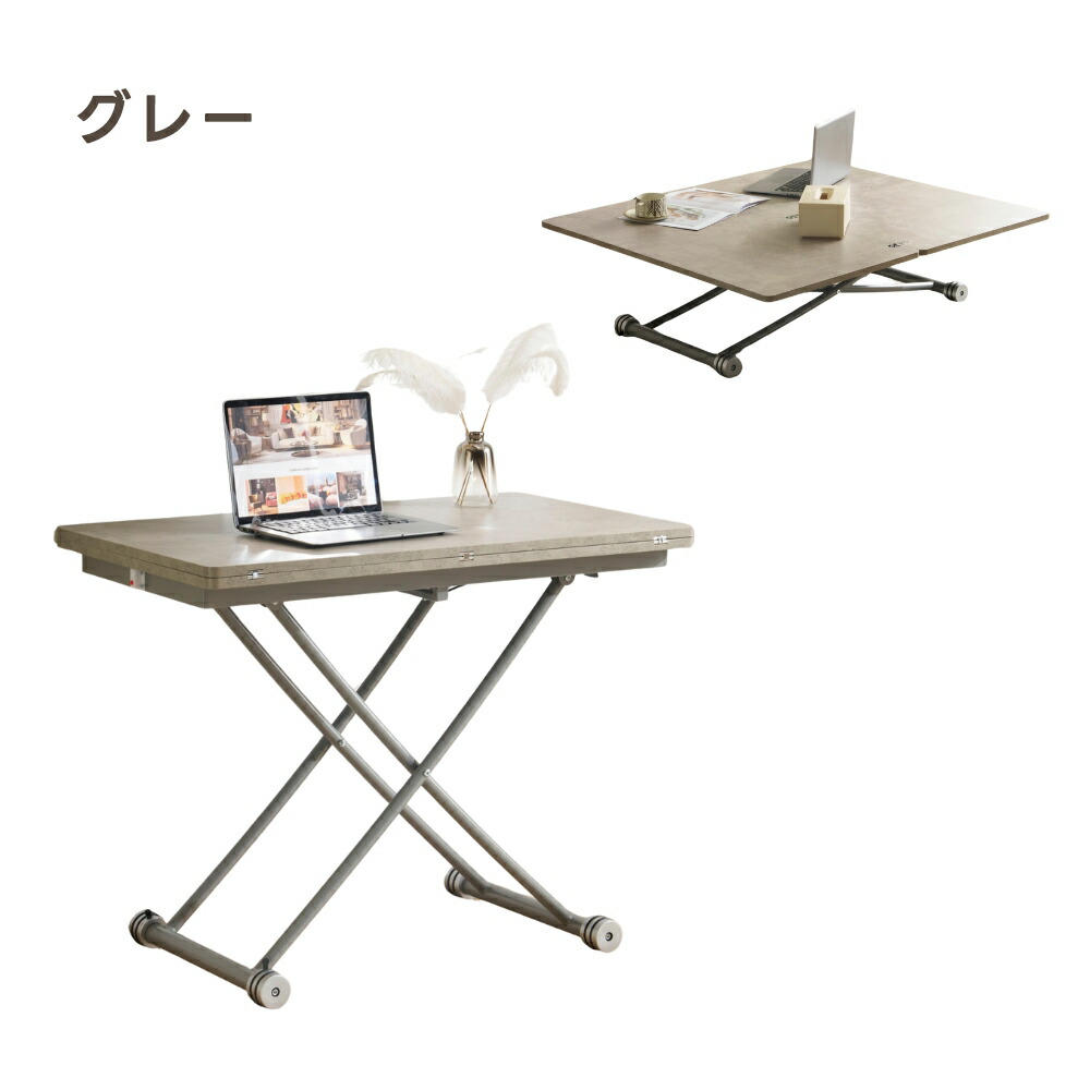 昇降式テーブルガス圧昇降テーブル 省ス ブラウン ナチュラル ホワイト グレー