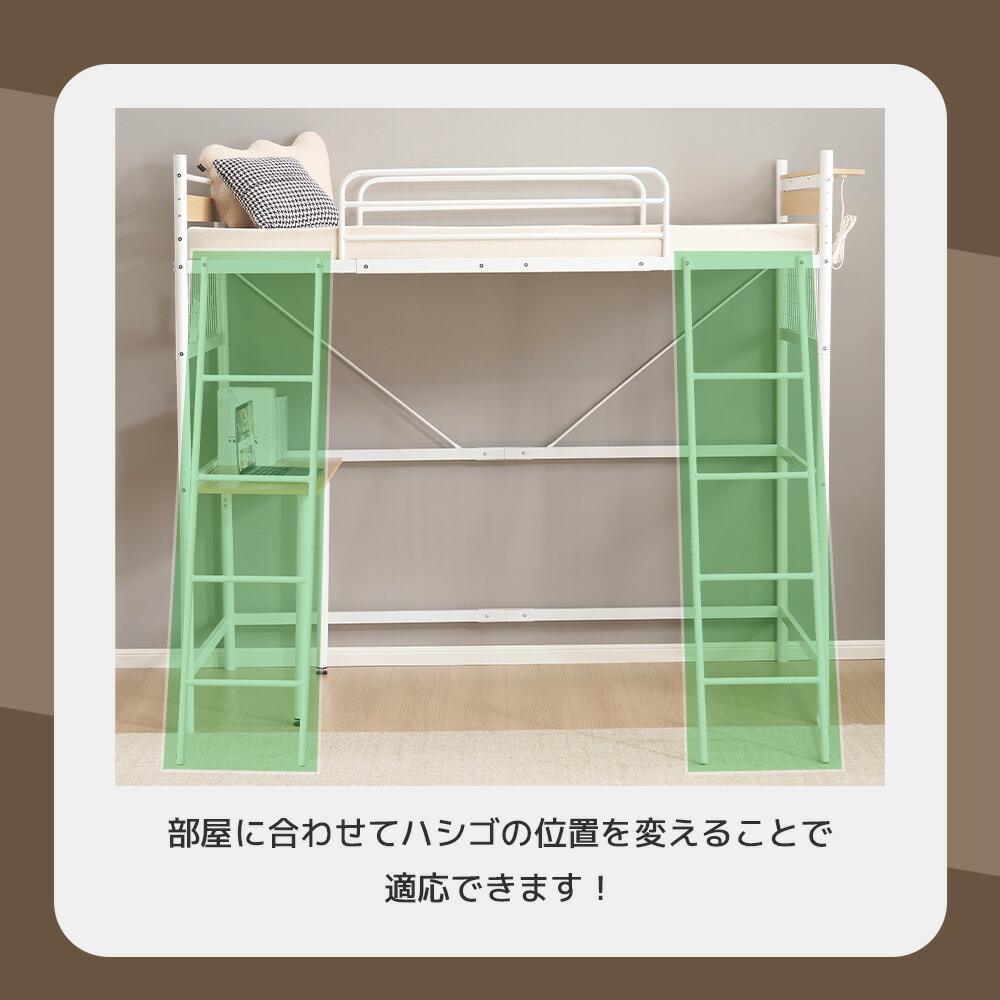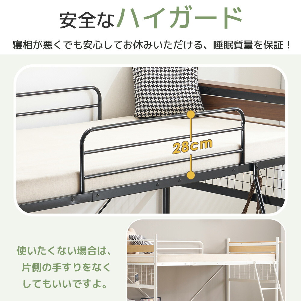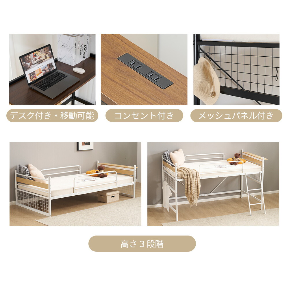システムベット デスク付き ロフトベッ ホワイト ブラック