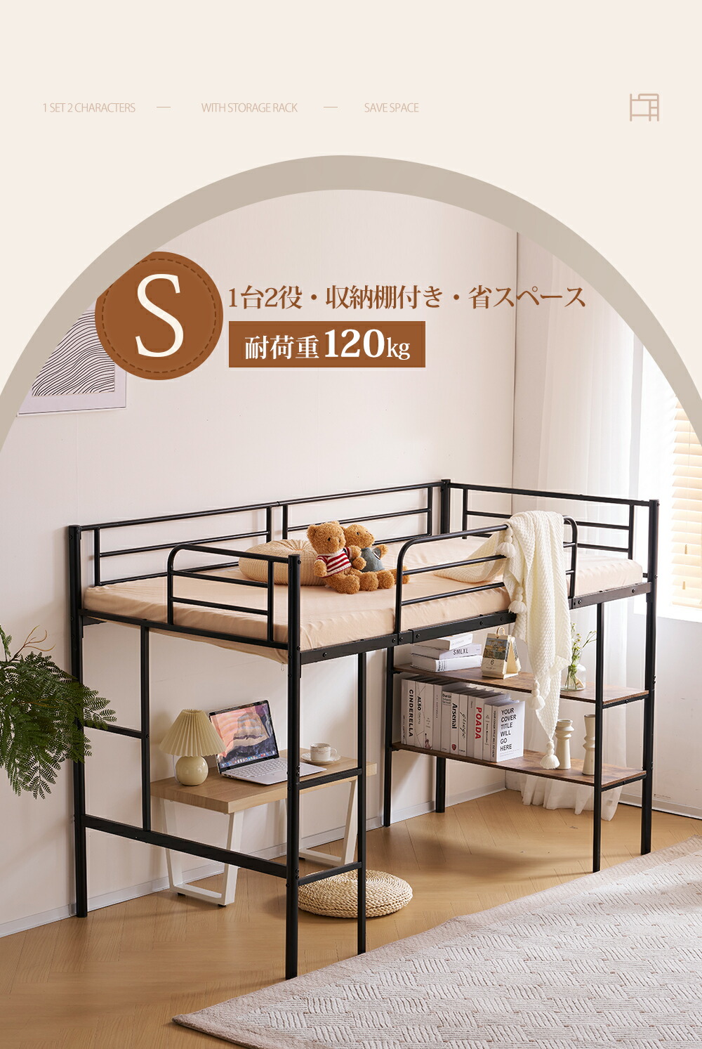 ロフトベッド 収納棚付き 高さ135c