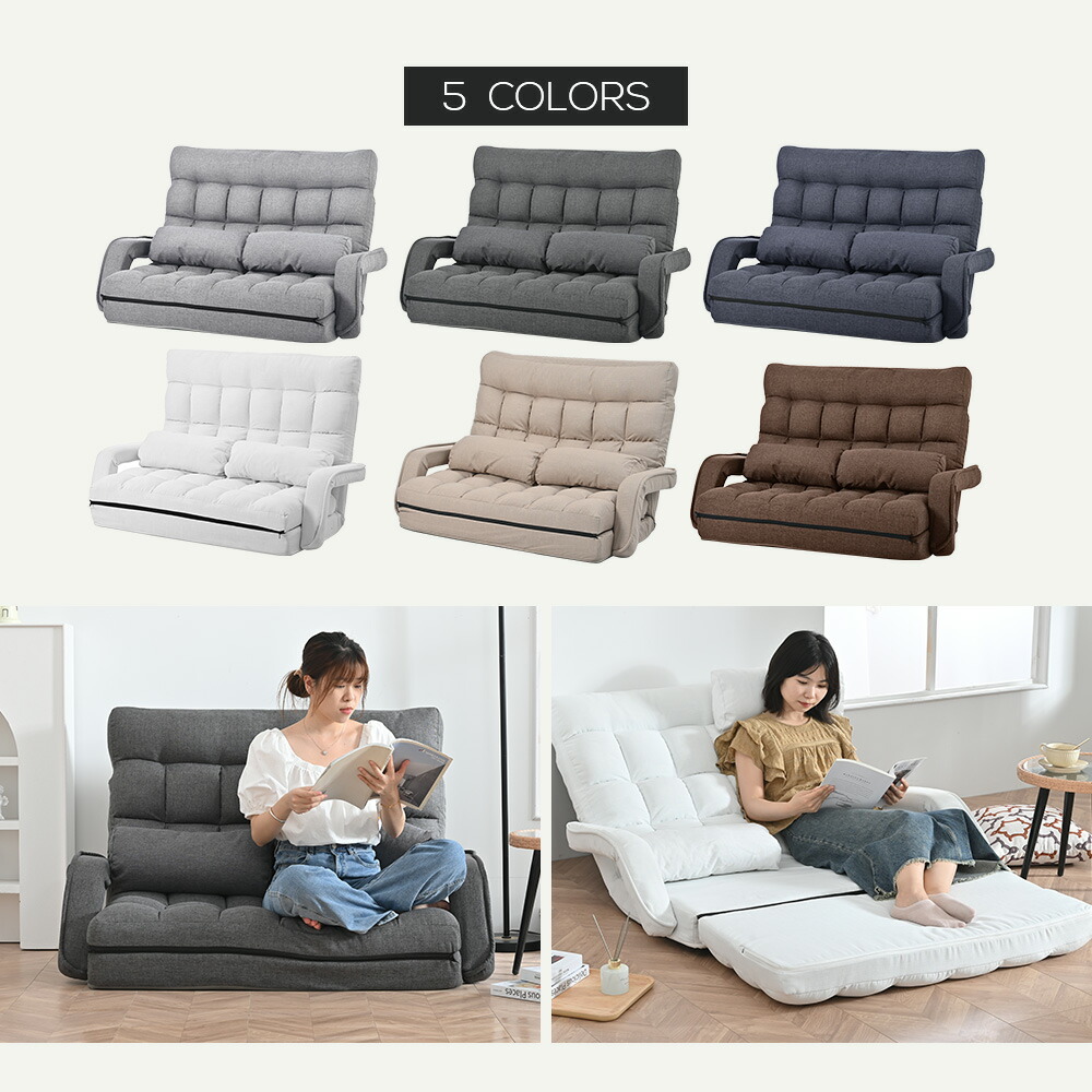 座椅子 二人掛け 4WAY 連動肘つき ブラウン ライトグレー