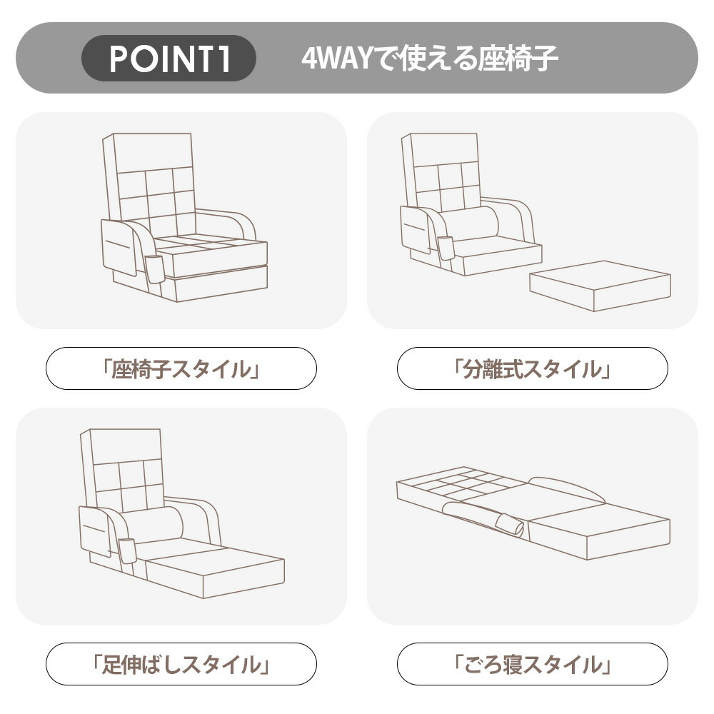 座椅子 1人掛け 肘掛け サイドポケッ ホワイト ブラウン ダークグレー ライトグレー ブルーグレー コーヒー