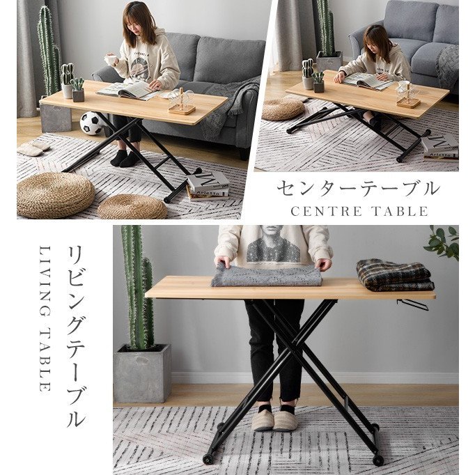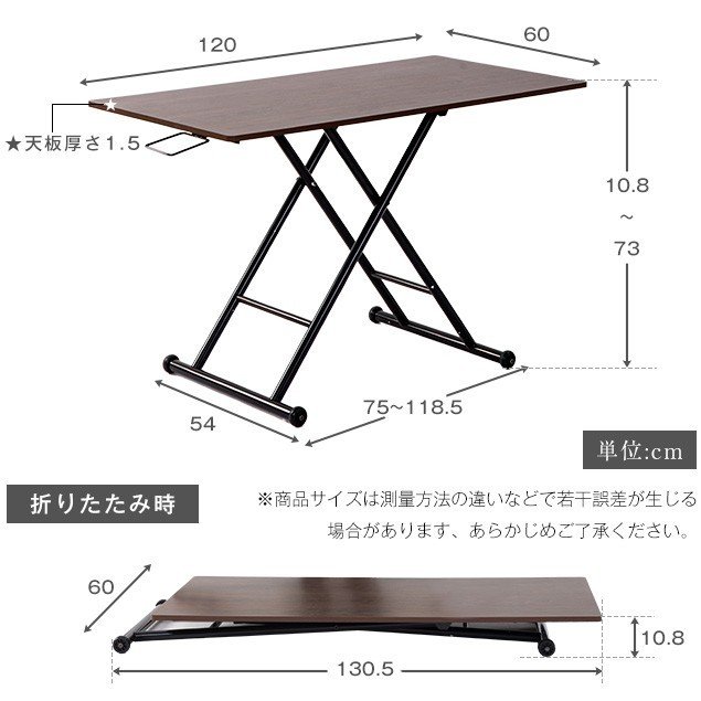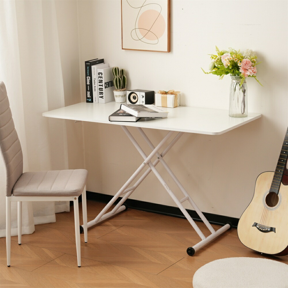 昇降式テーブル 無段階 120cm 昇 クルミ ナチュラル 【NEW】ホワイト