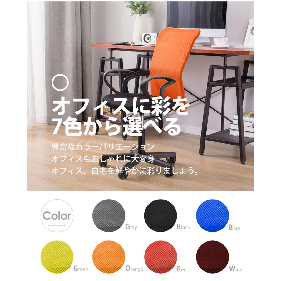 オフィスチェア メッシュ 360回転 ブラック オレンジ レッド ブルー グリーン ワイン グレー ブラウン ライトブルー ライトブラウン ライトグレー ダークグレー ベージュ ピンク