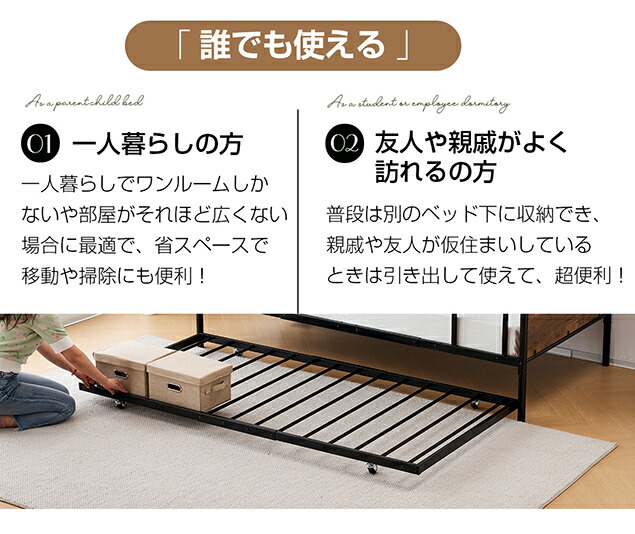 シングルベッド 195*97cm 移動 ホワイト ブラック