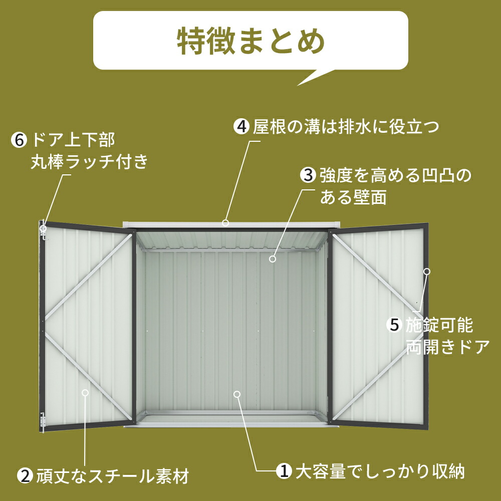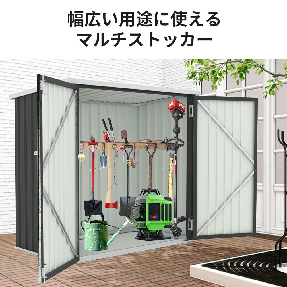 物置 物置き 屋外用 両開きドア 施錠 ブラック 【NEW】グレーxホワイト
