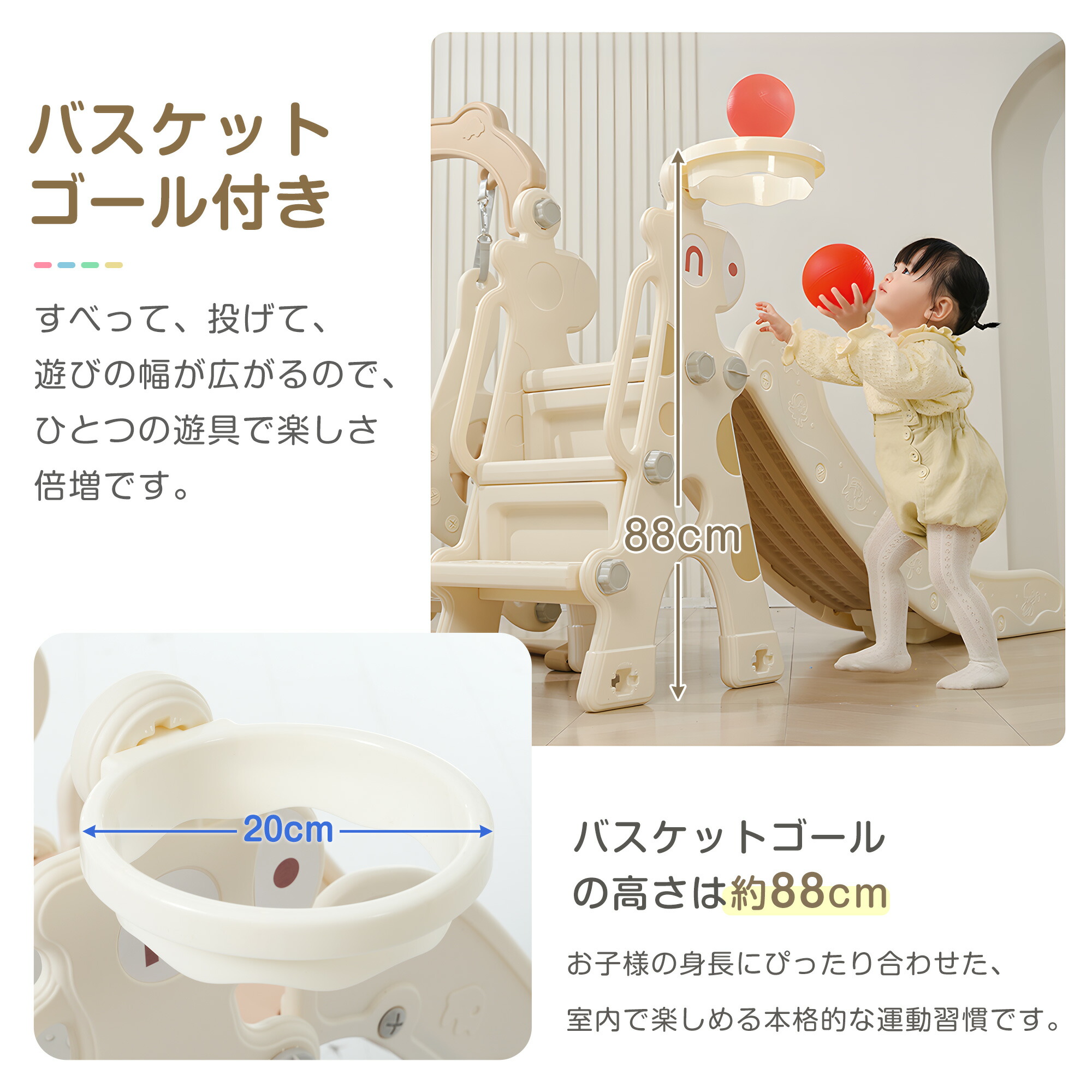 滑り台 室内遊具 省スペース コンパクト 2色 すべり台 室内 バスケットゴール 屋内 おもちゃ キッズ 子供 子供用 誕生日 プレゼント 遊具
