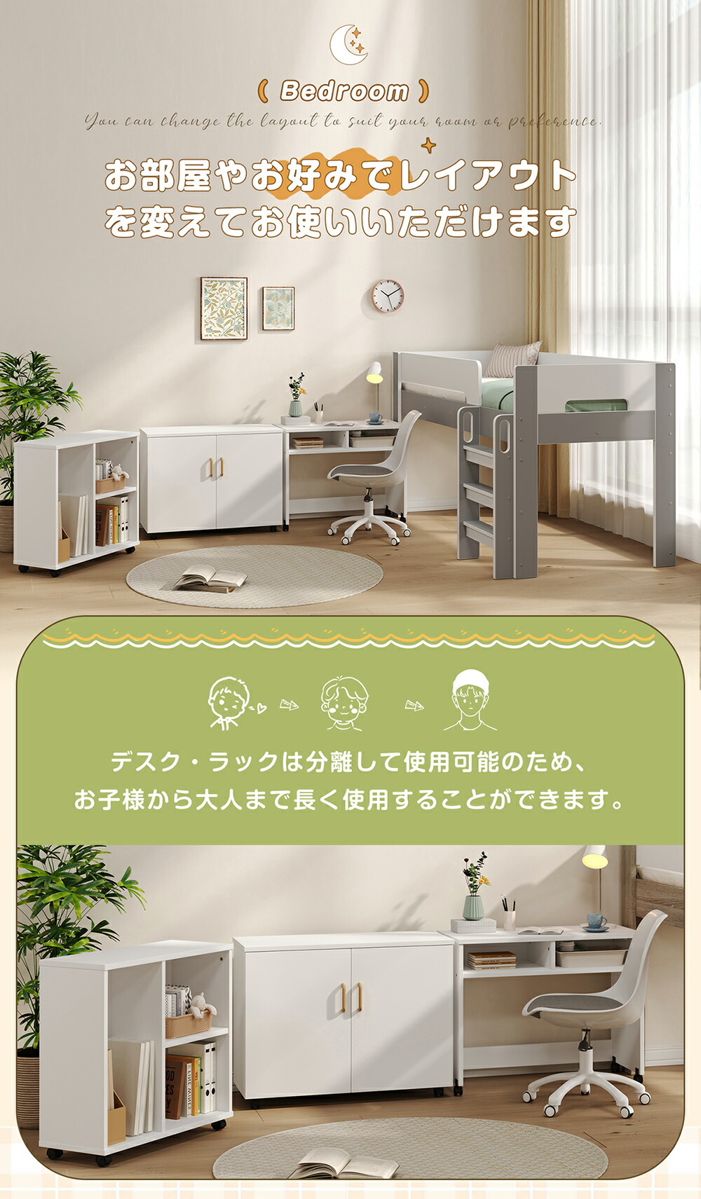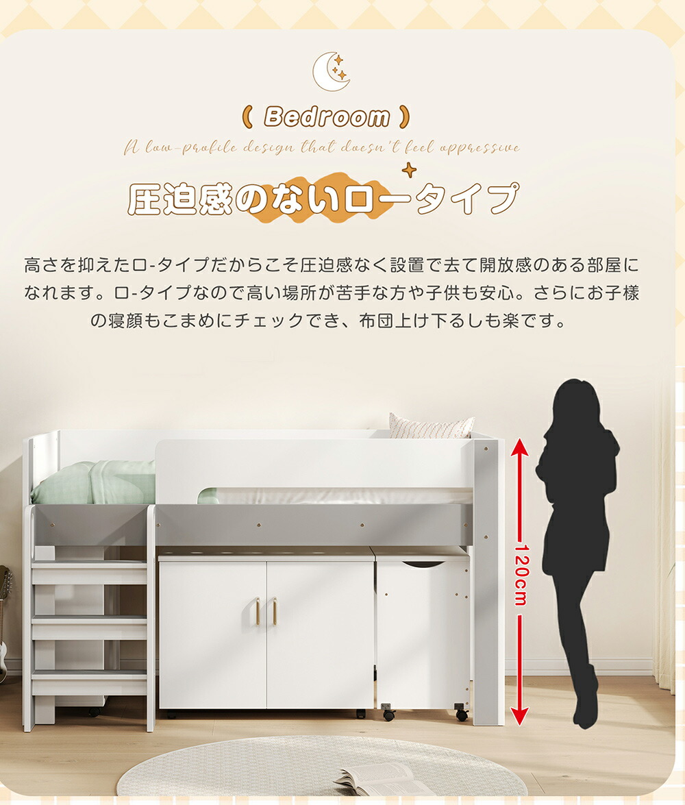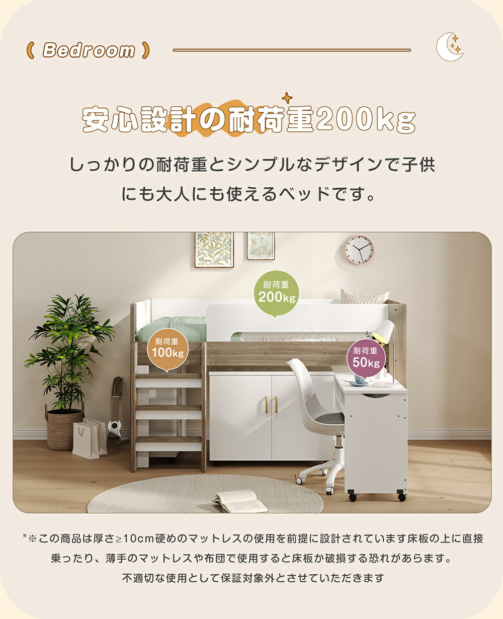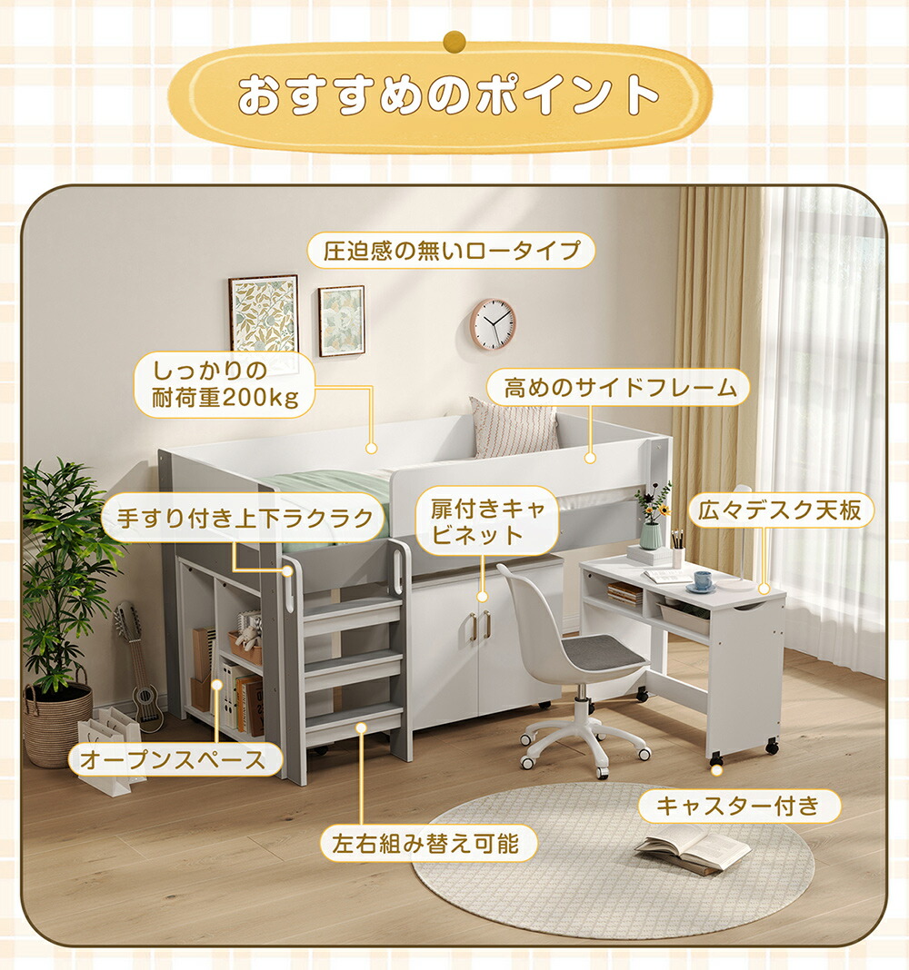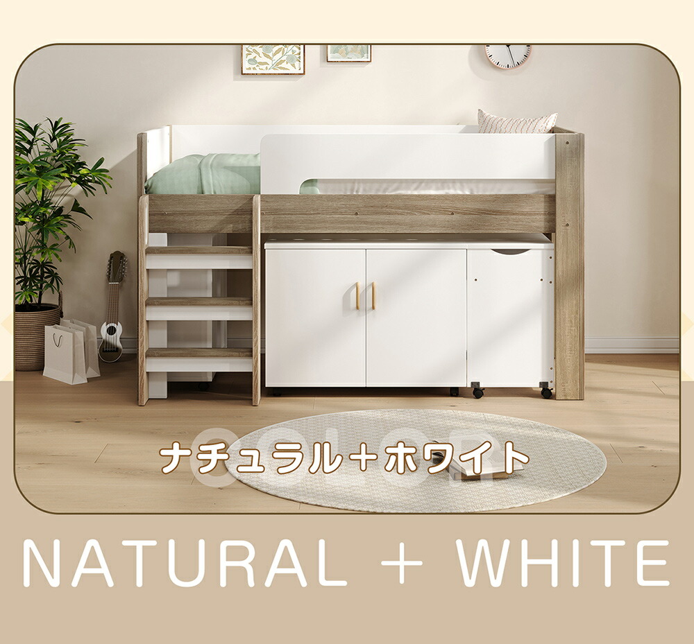 システムベッド ロフトベッド S 木製 ホワイト+グレー ホワイト+ナチュラル