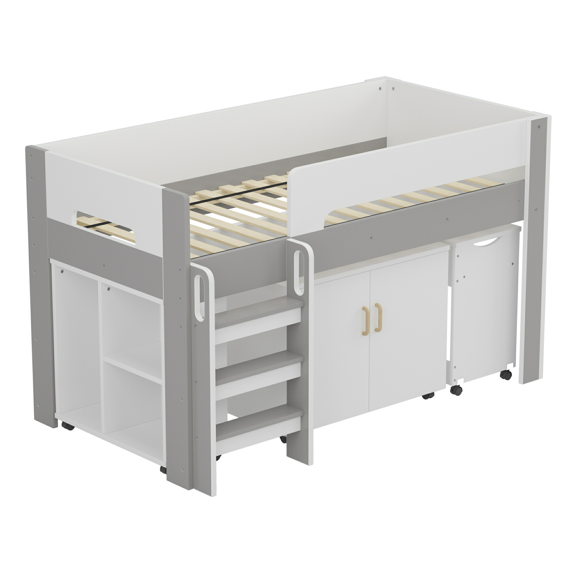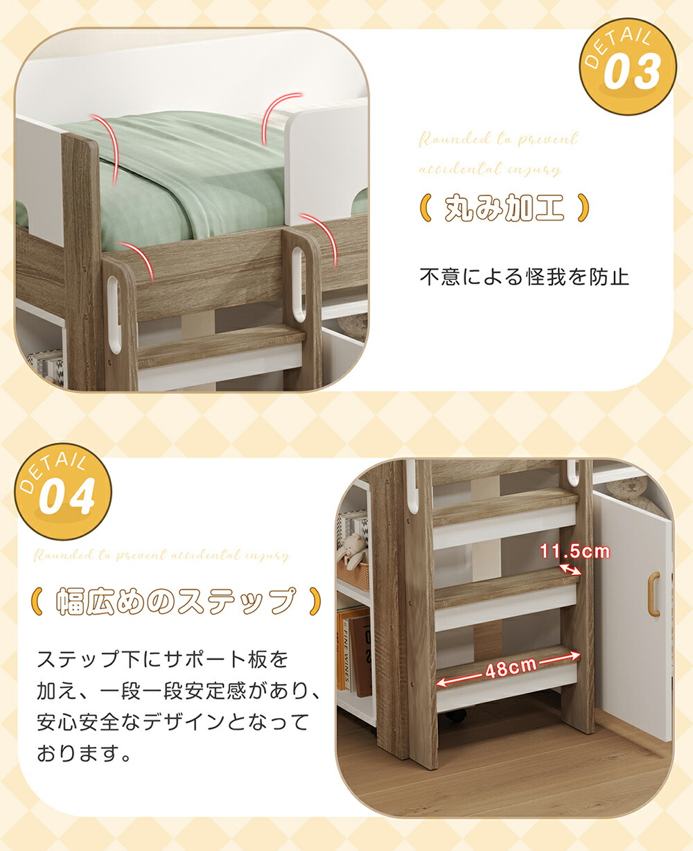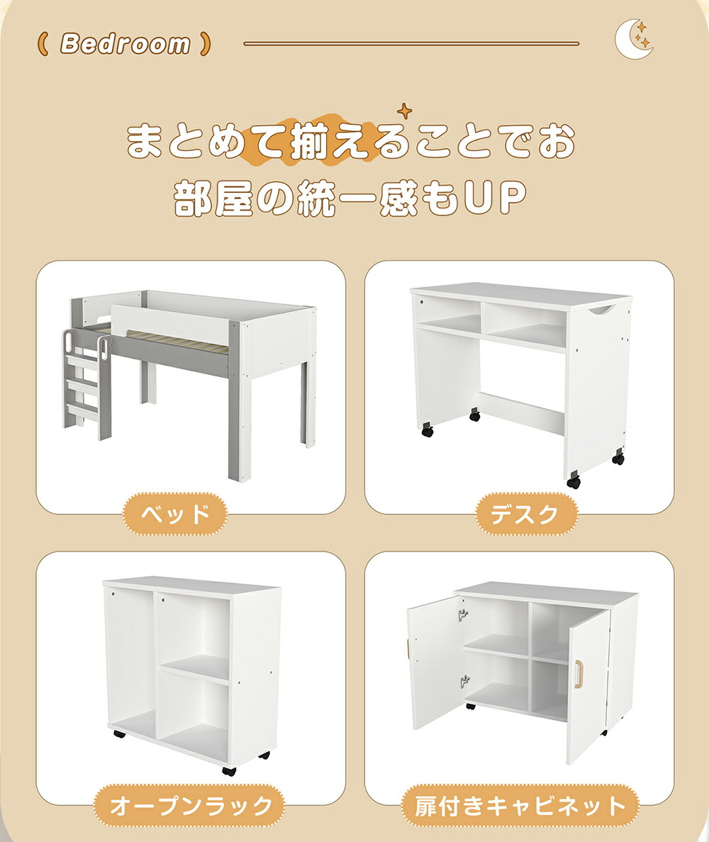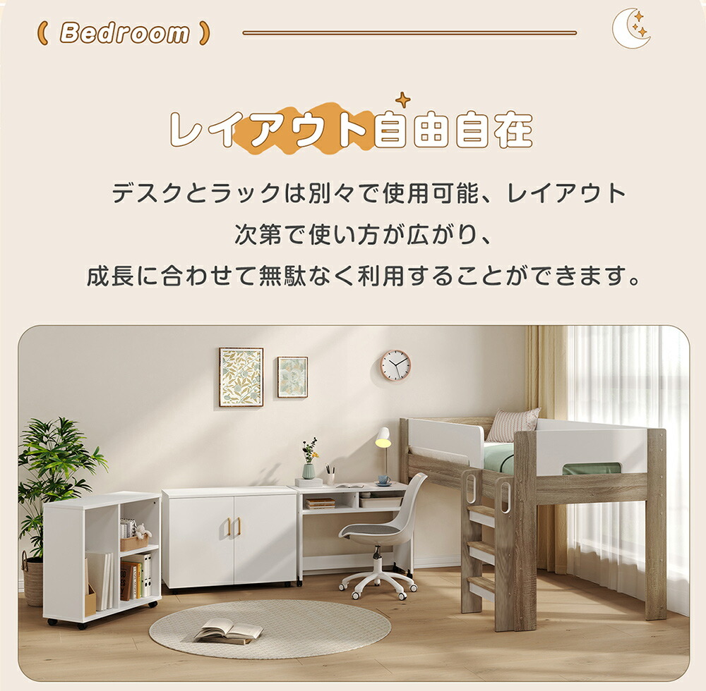 システムベッド ロフトベッド S 木製 ホワイト+グレー ホワイト+ナチュラル