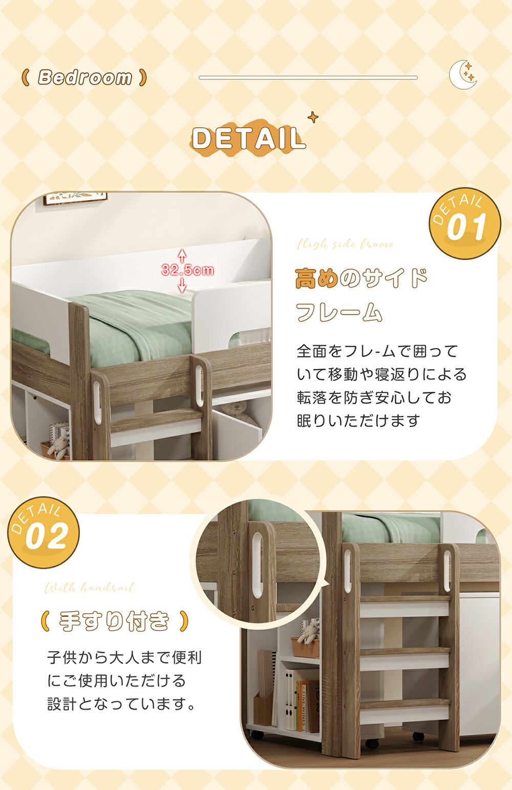 ロフトベッド シングル システムベッド パイプベッド 耐荷重150kg 高さ170cm 木 デスク付き コンセント付き 収納棚 ハイタイプ はしご付き 子供部屋 耐震 子供ベッド 一人暮らし スチール