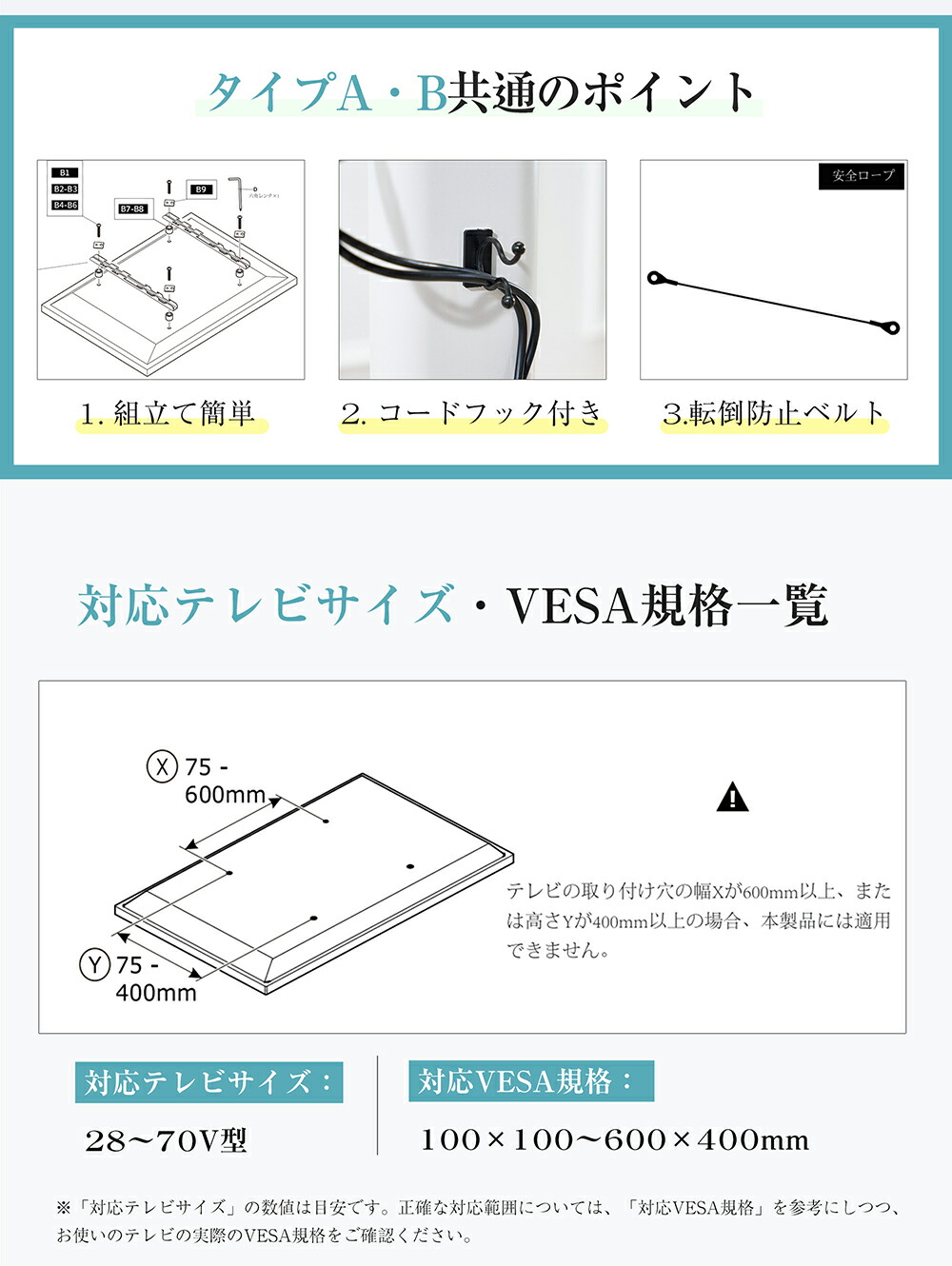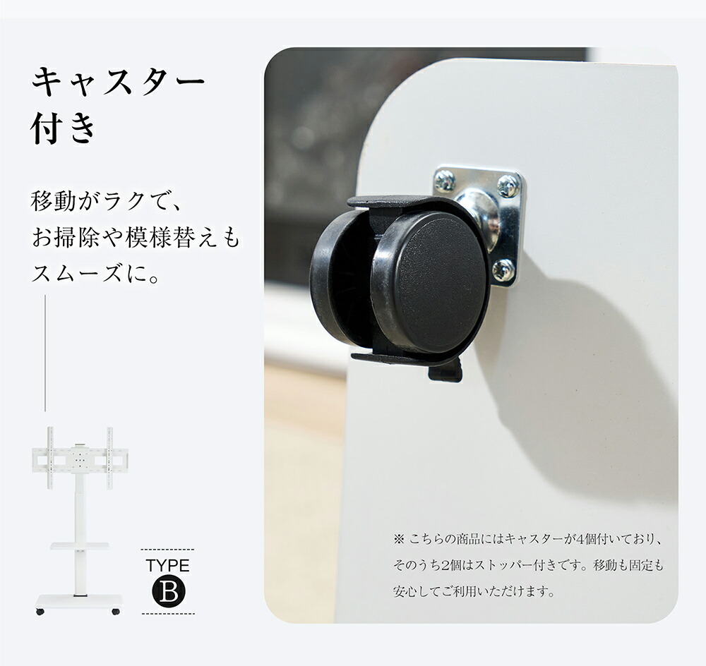 テレビスタンド キャスター付き 壁寄せ タイプA タイプB ナチュラル ホワイト