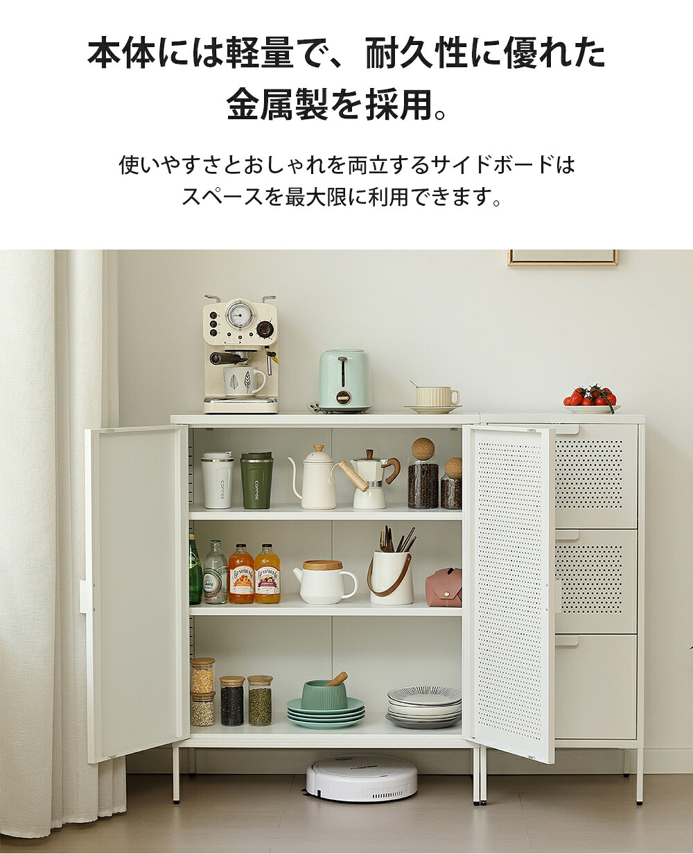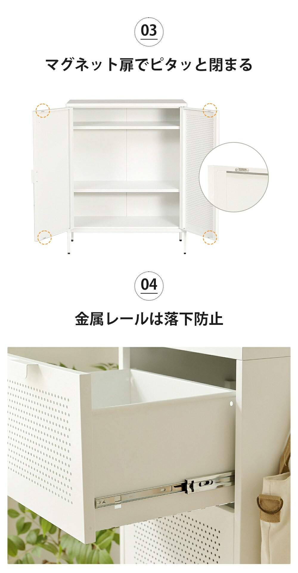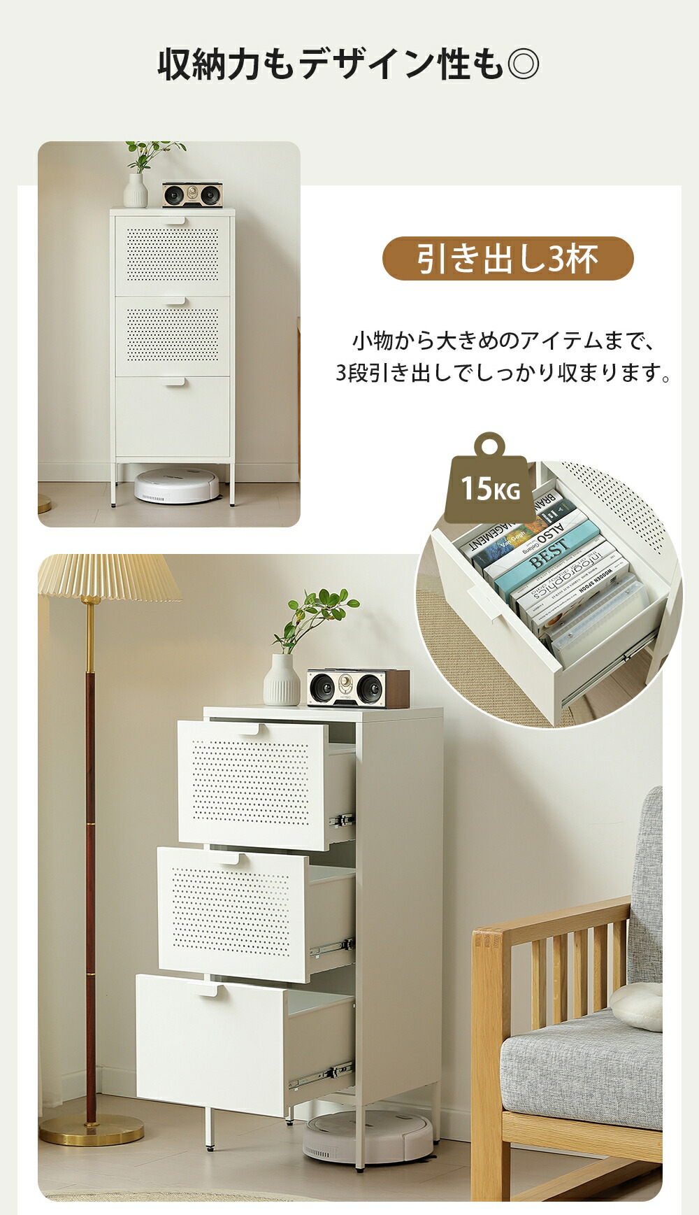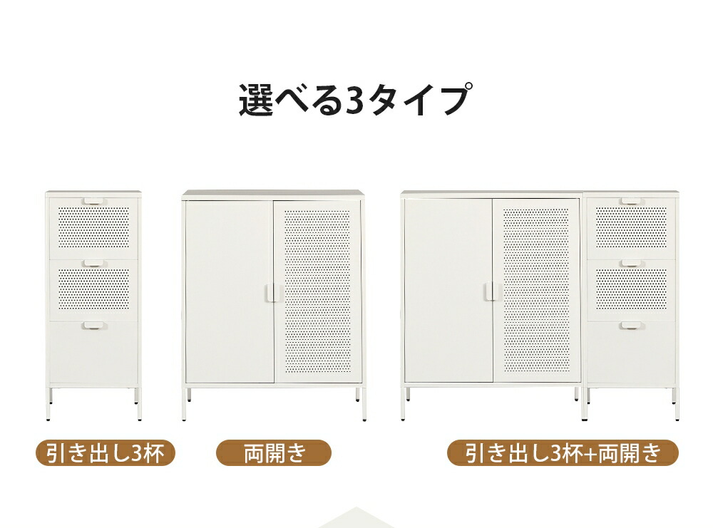 キャビネット スチール製 脚付き 3段