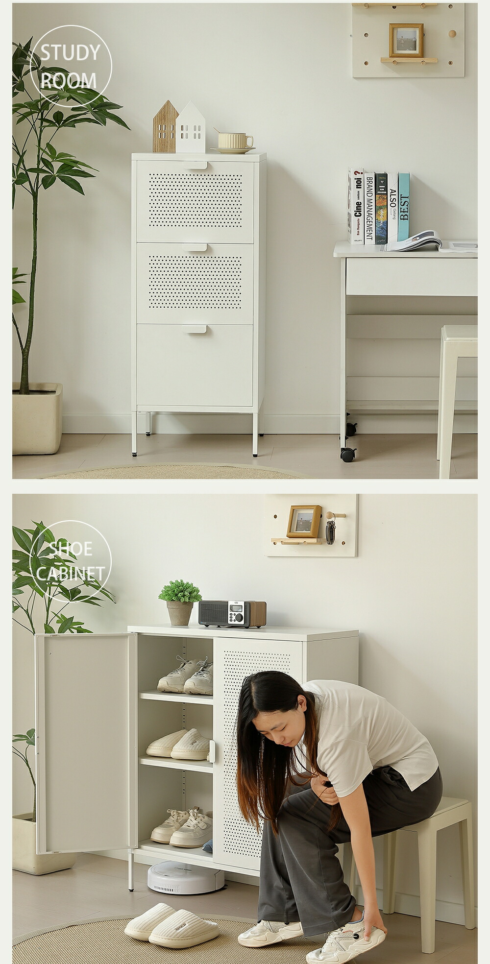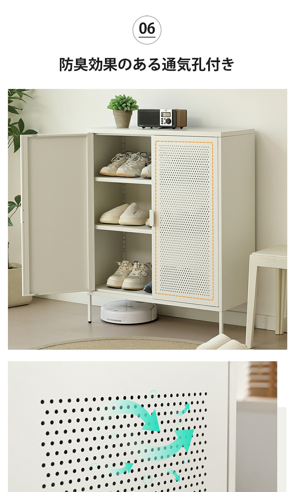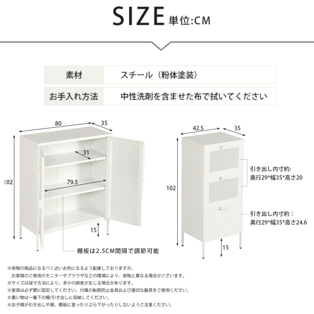キャビネット スチール製 脚付き 3段