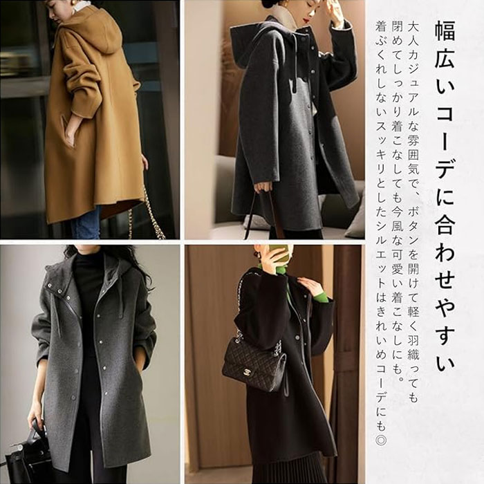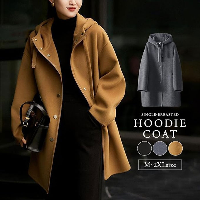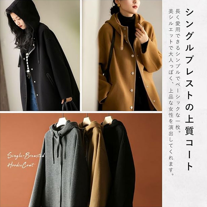 シングルブレスト フードコート コート レディースファッション 豊富 キャメル ブラック グレー M L XL 2XL