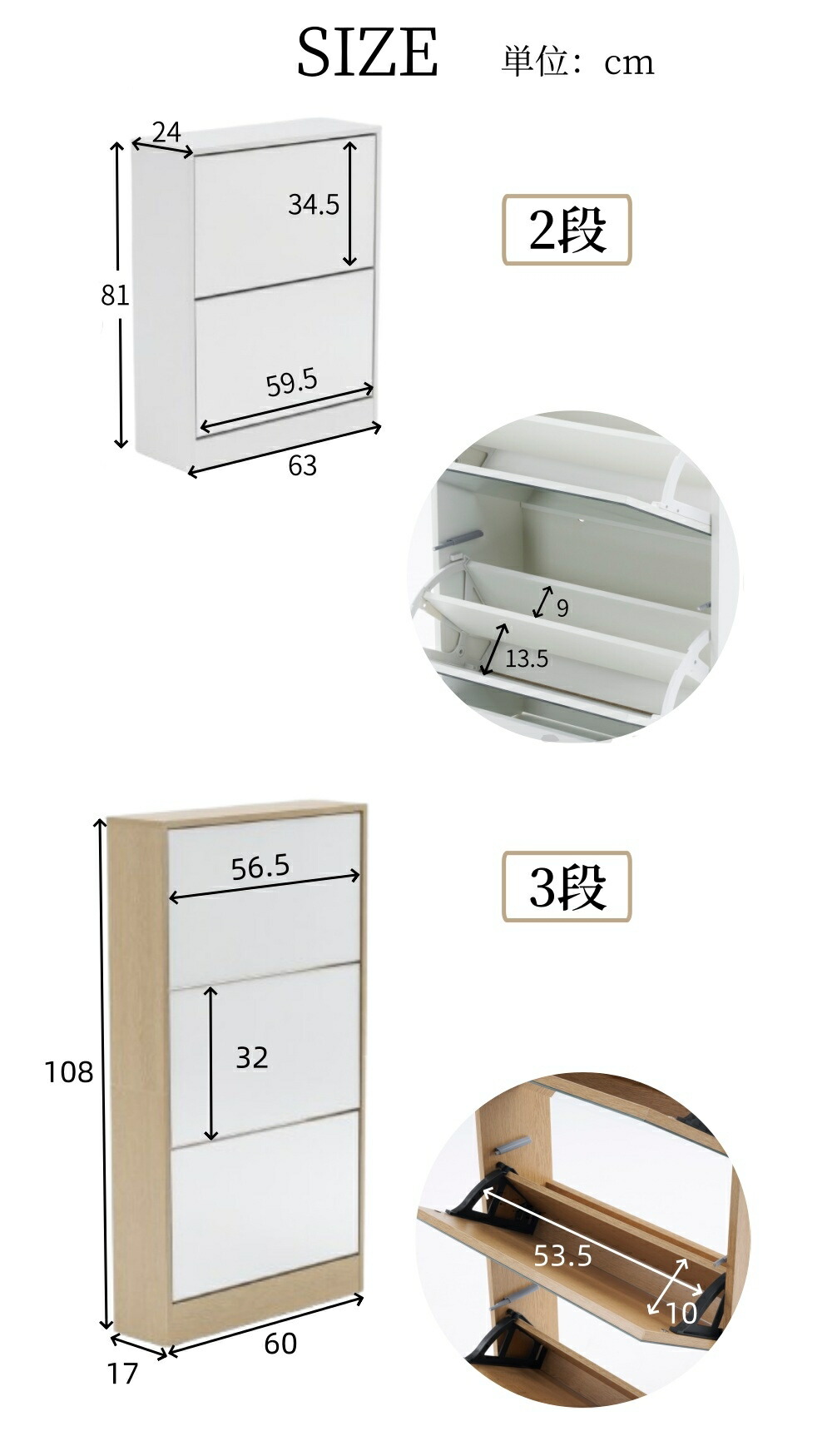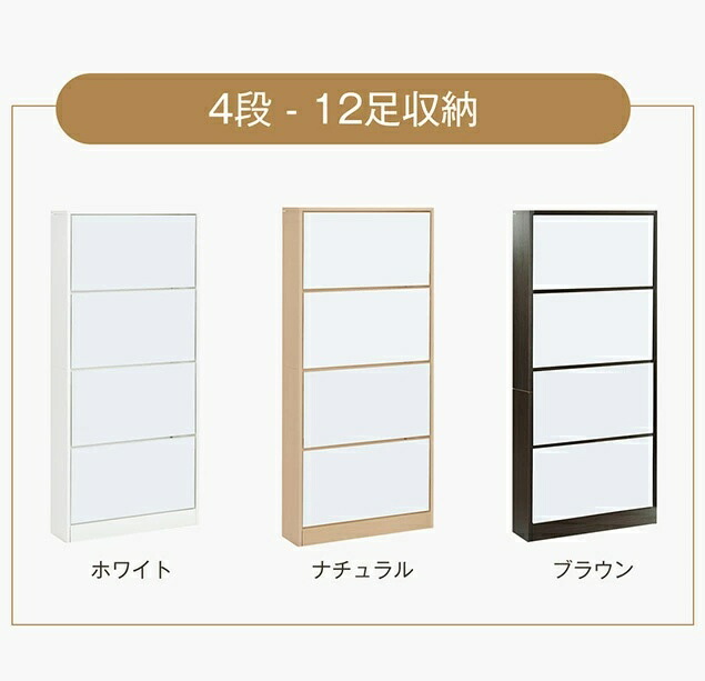 シューズボックス 超薄型 ミラー 5段 2段 3段 4段 5段 ホワイト ナチュラル ブラウン