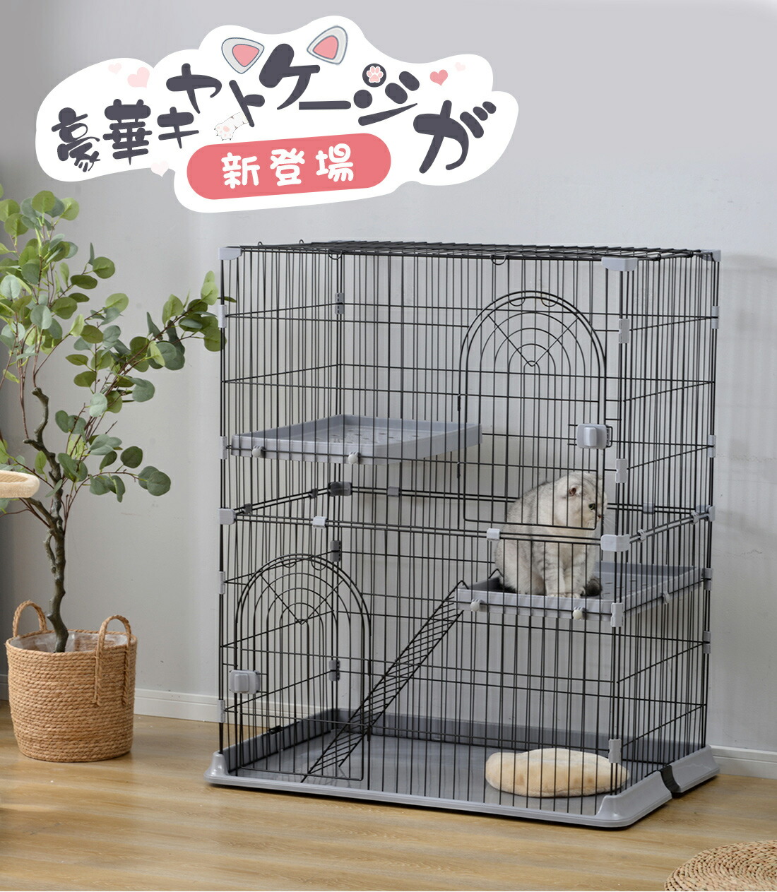 猫 ケージ 2段 キャットケージ猫ゲー 猫用品 ケージ 通販 グリーン グレー 【NEW】ピンク 【NEW】ホワイト