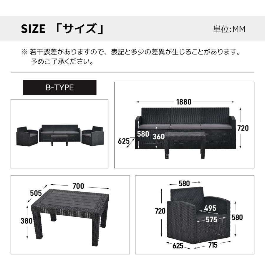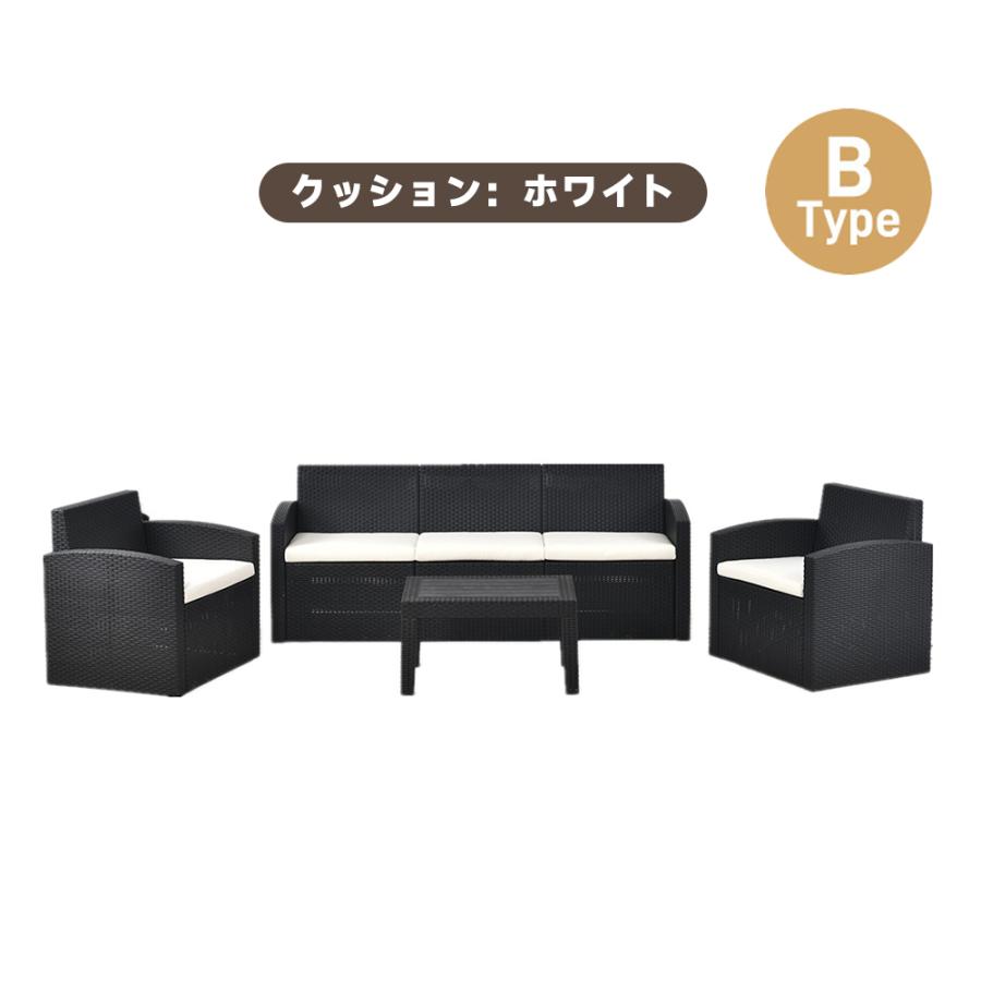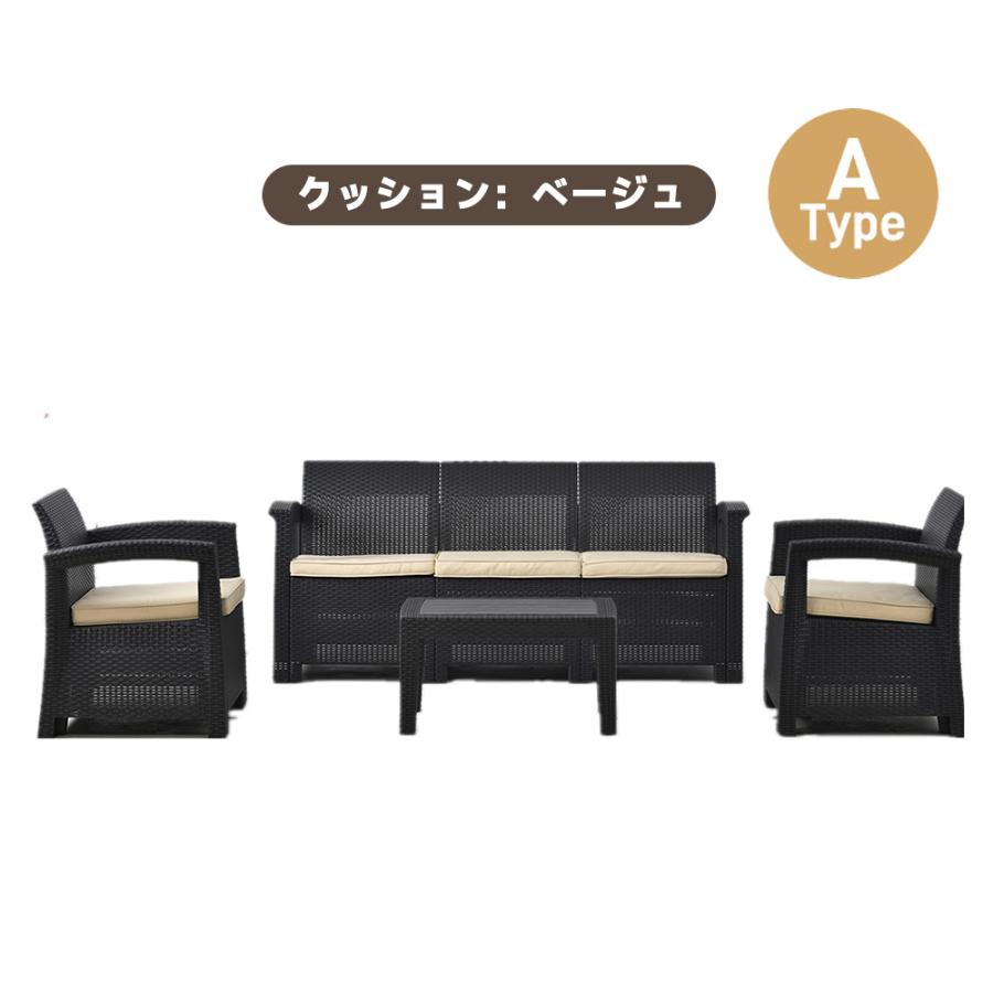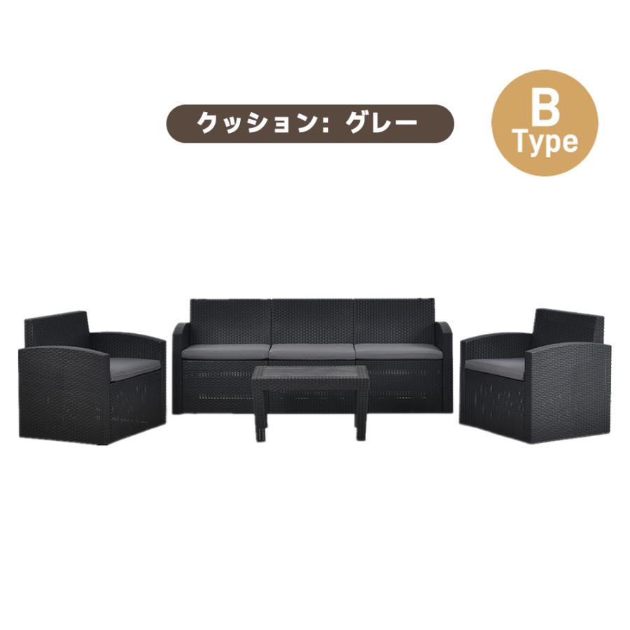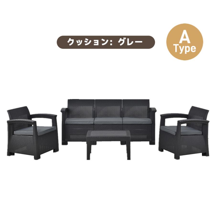 ガーデンファニチャー ラタン調 5人掛 タイプAークッション:グレー タイプAークッション:ベージュ タイプBークッション:グレー タイプBークッション:ホワイト