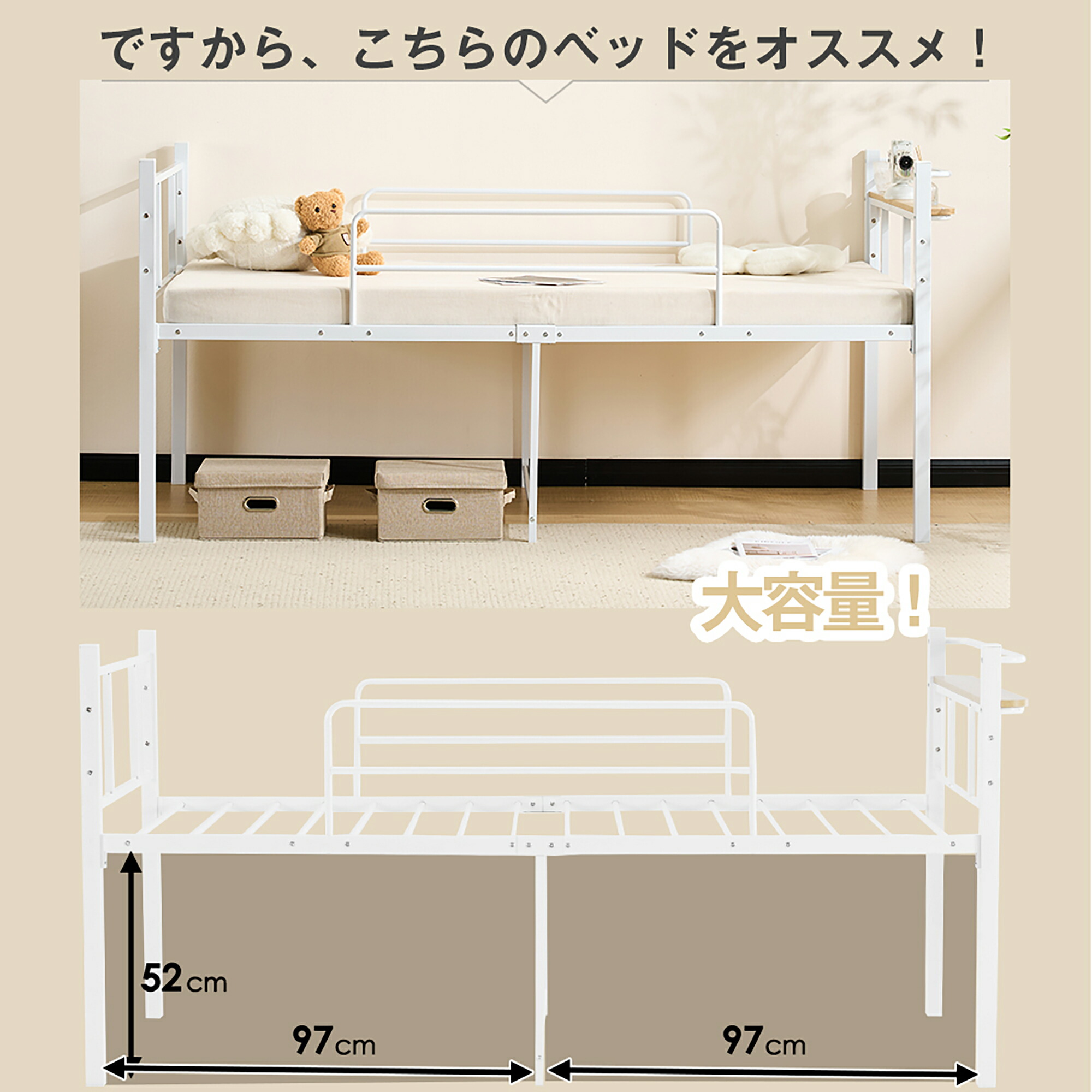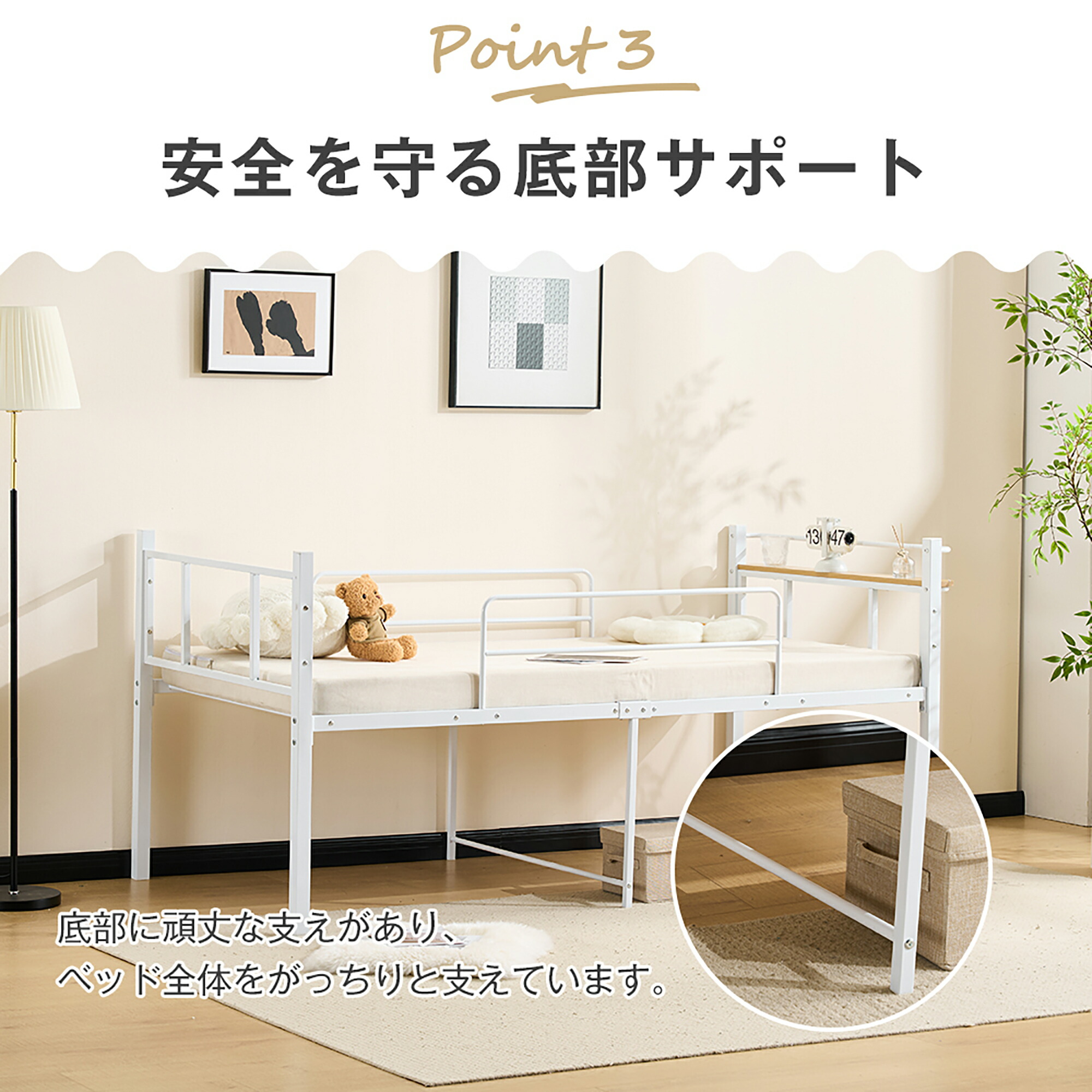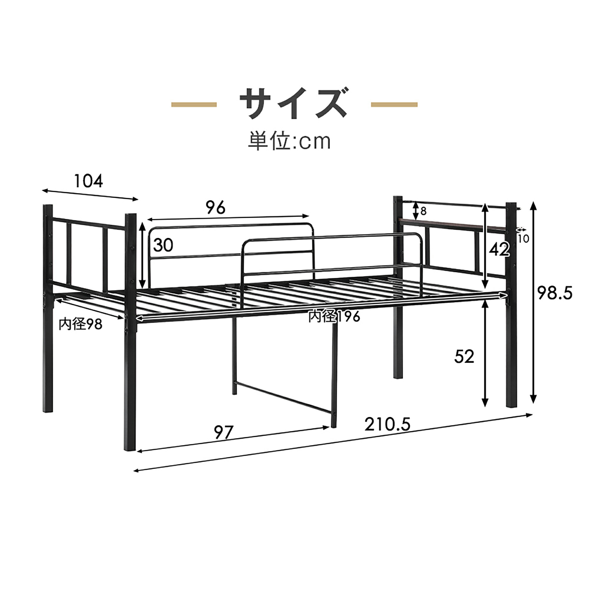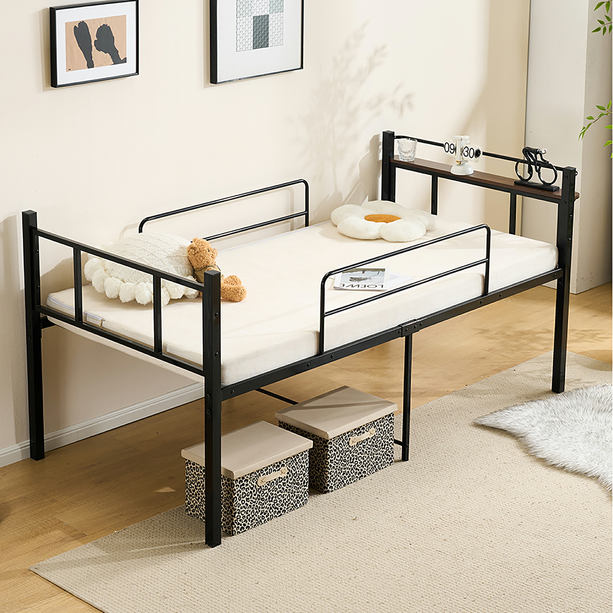 パイプベッド シングル ベッド 宮 ロ ブラック ホワイト