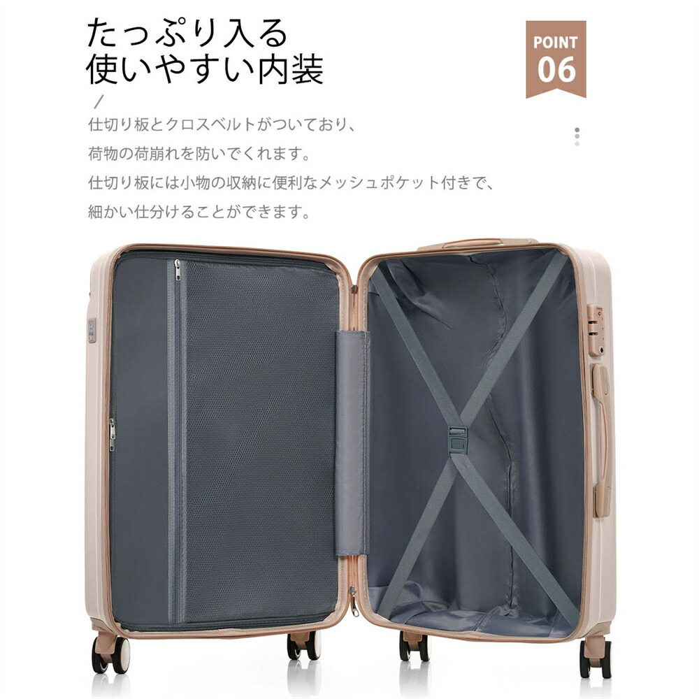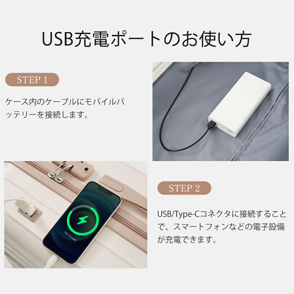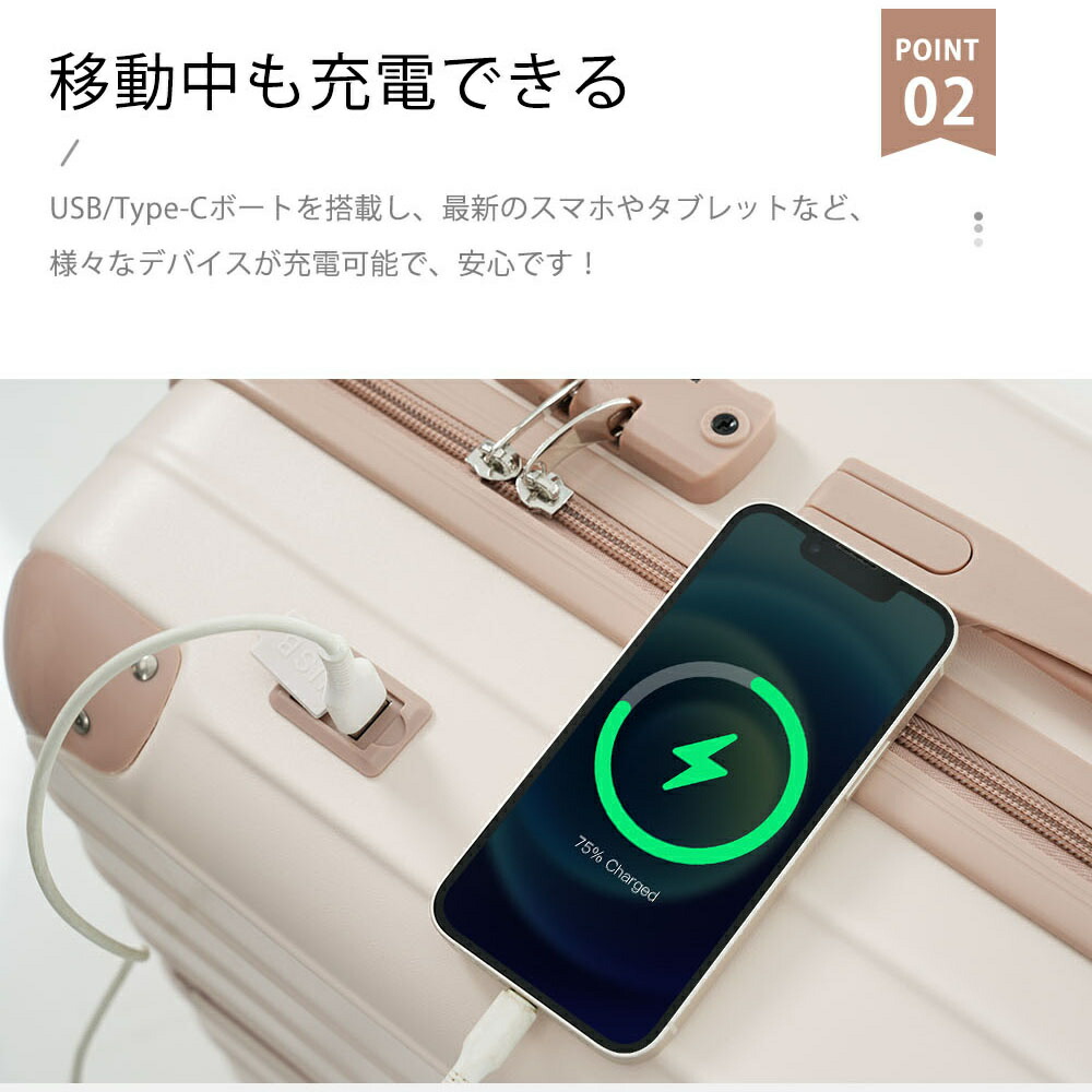 スーツケース USBポート TANOBI キャリーバッグ ストッパー付き キャリーケース カップホルダー スマホスタンド 超軽量 ファスナー式 TSAロック搭載 可愛い 2~14泊 小 フック機能付き