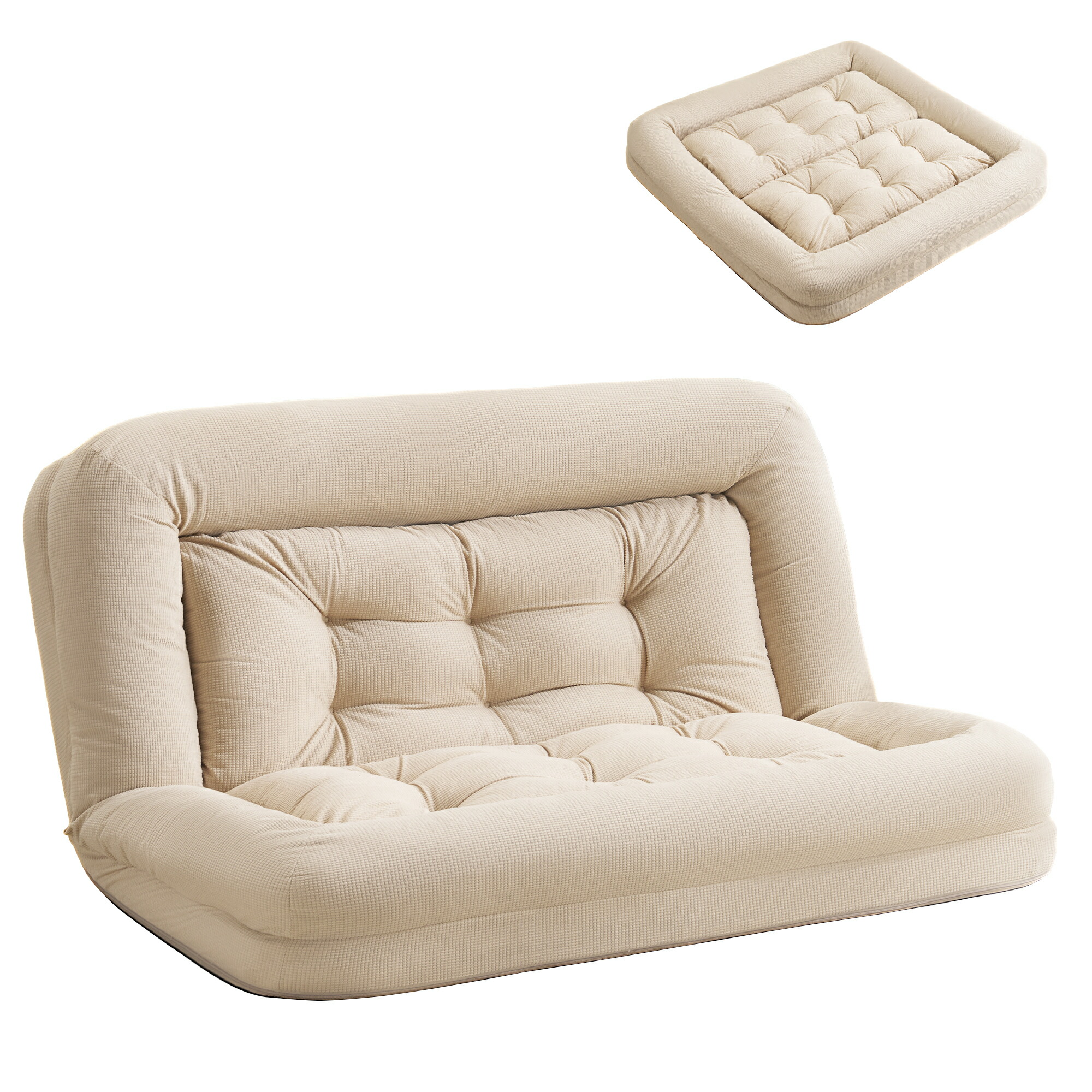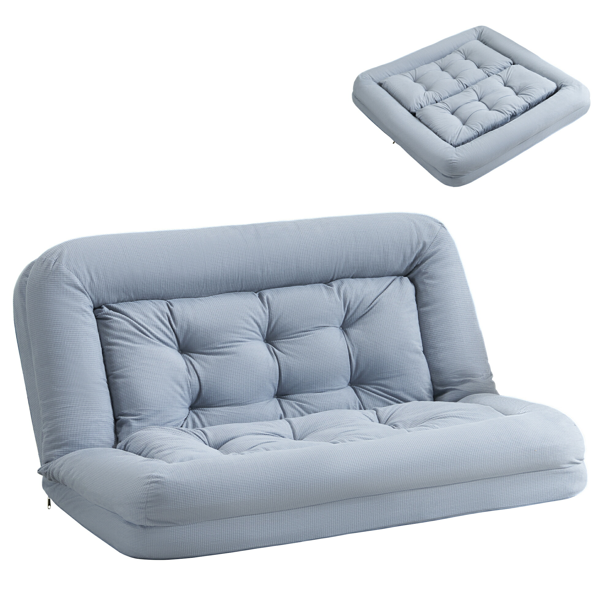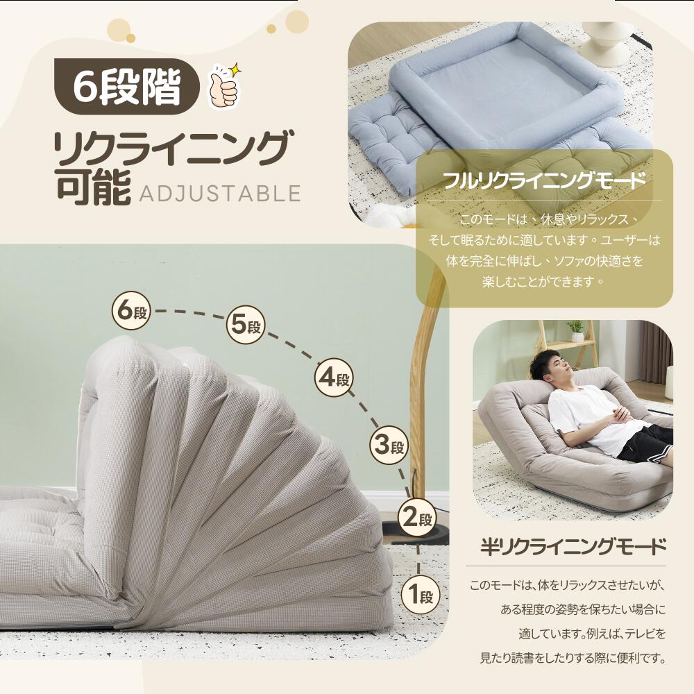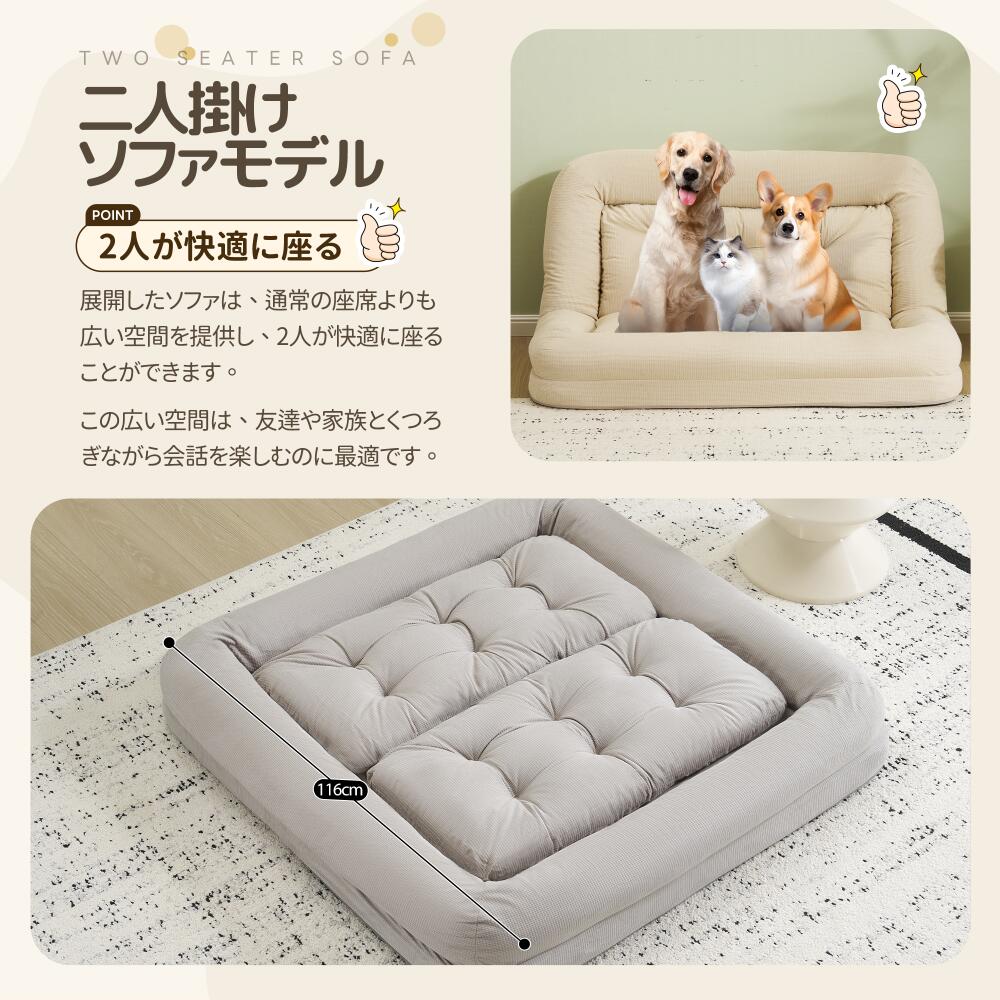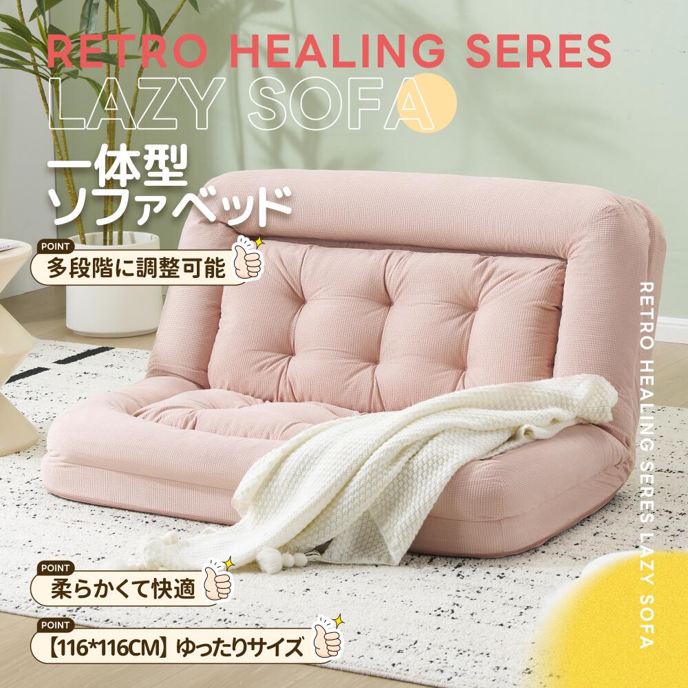 ソファベッド 2人掛け 一体型 折りた アイボリー グレー ブルー ピンク