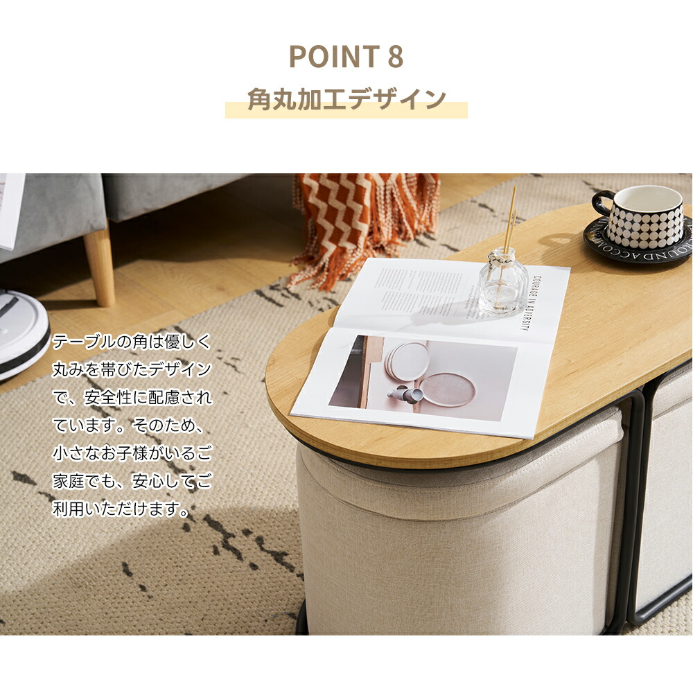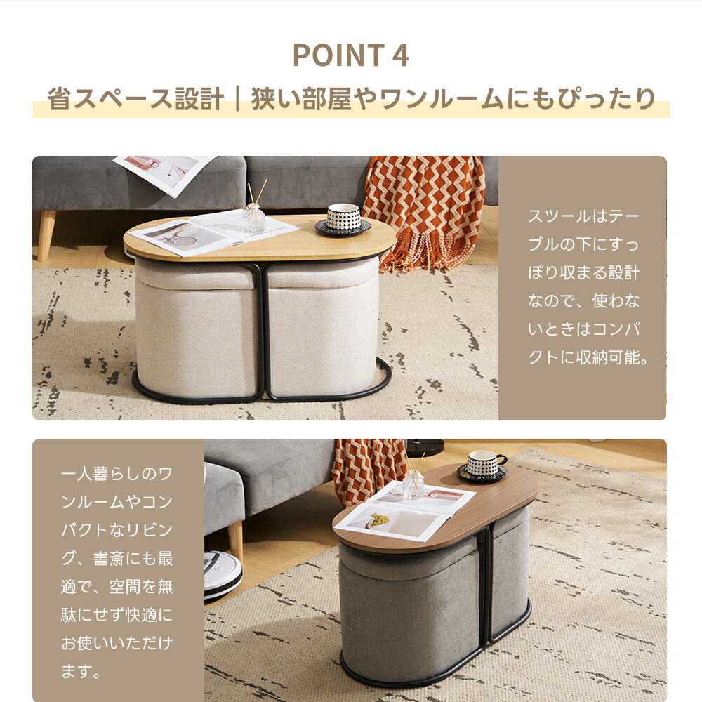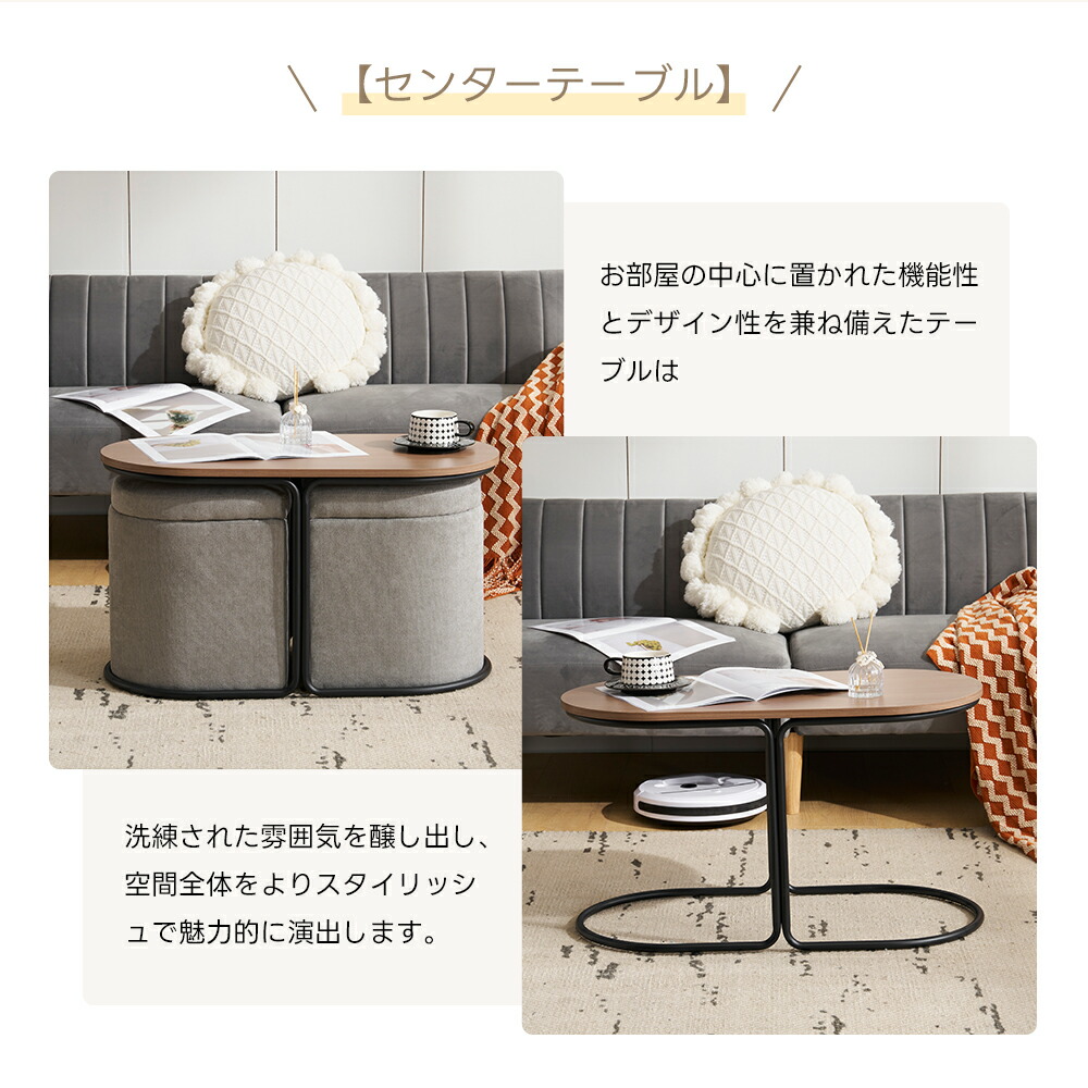 センターテーブル 座面収納 スツール付