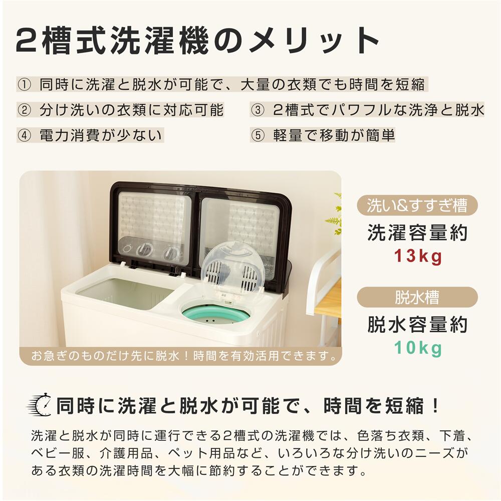 洗濯機 洗濯容量13kg 脱水容量10kg 13キロ キレイ タイマー コンパクト 一人暮らし 節電 二槽式洗濯機 まとめ洗い 脱水器 縦型洗濯機 ホワイト 部屋干し 引越し 単身 家電 洗濯物きれい