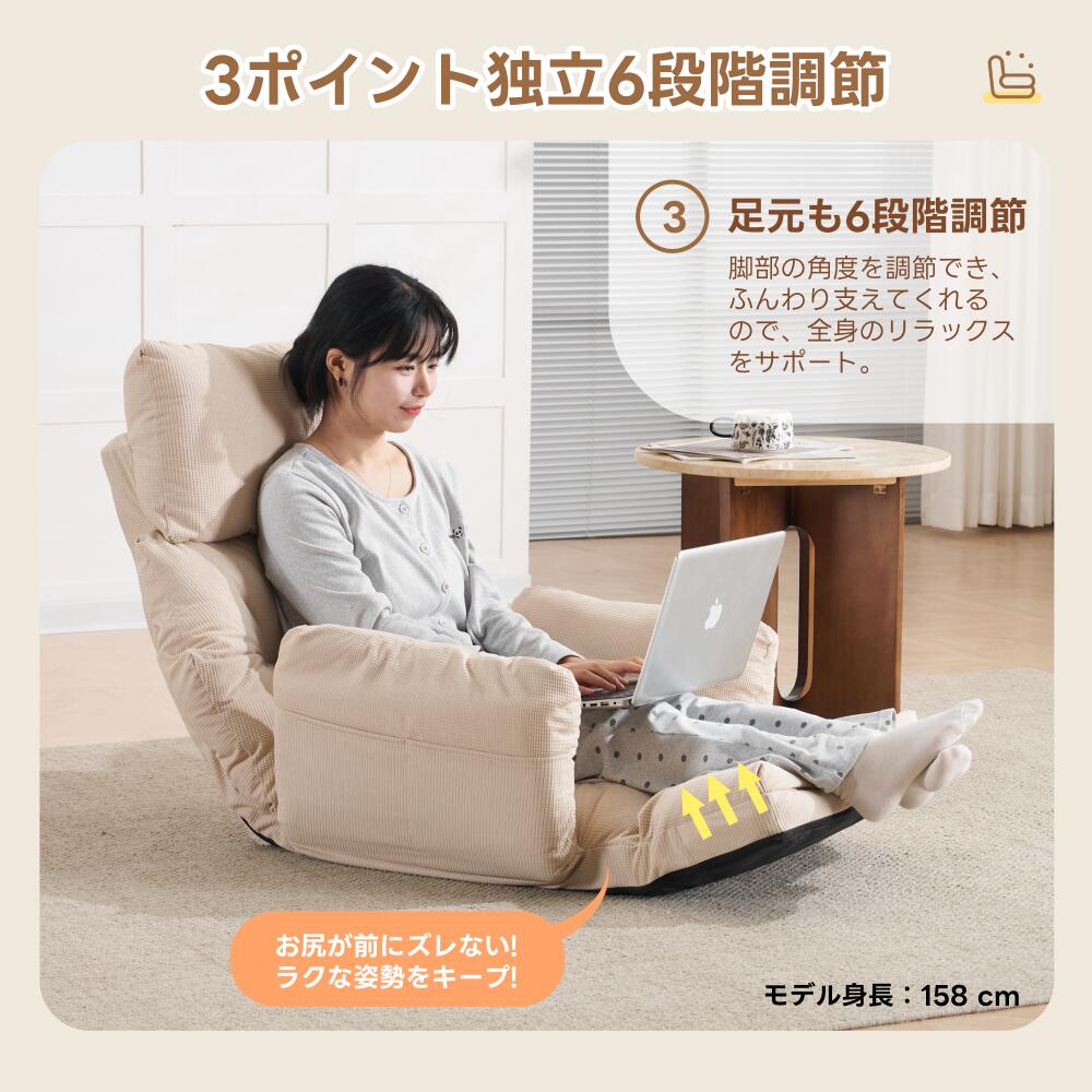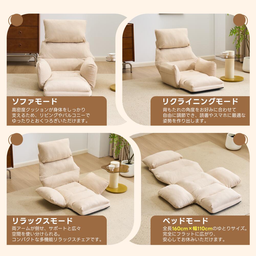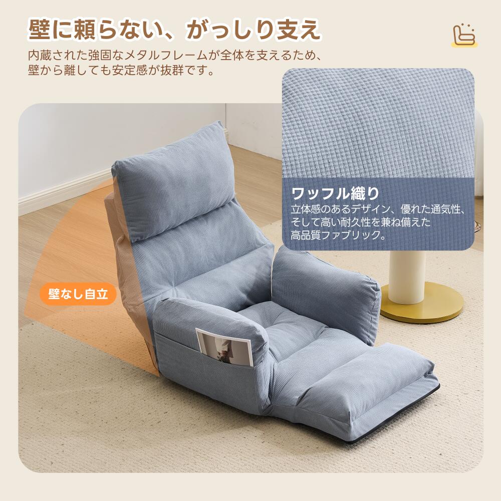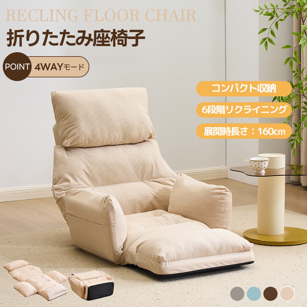 座椅子 折りたたみ 6段調整可能 肘掛 アイボリー グレー ブルー ブラウン