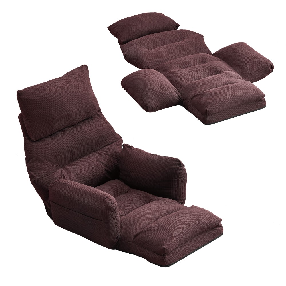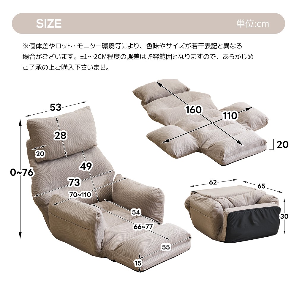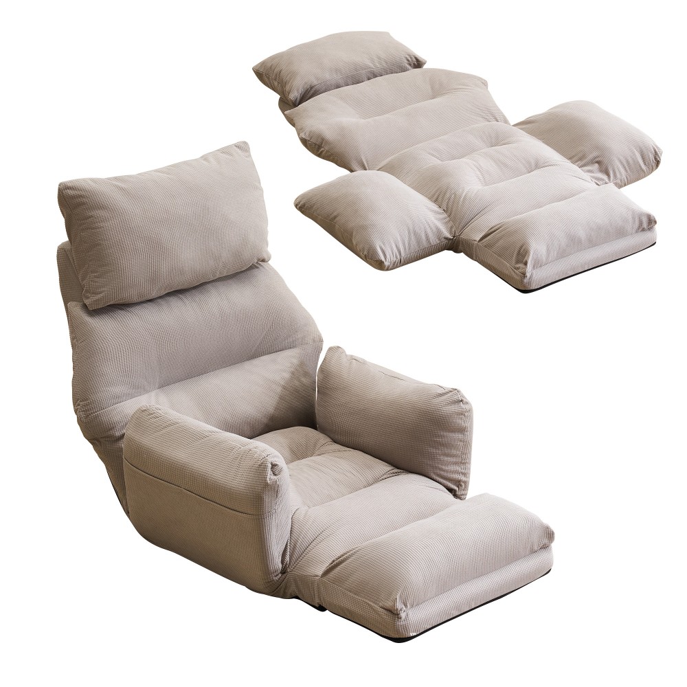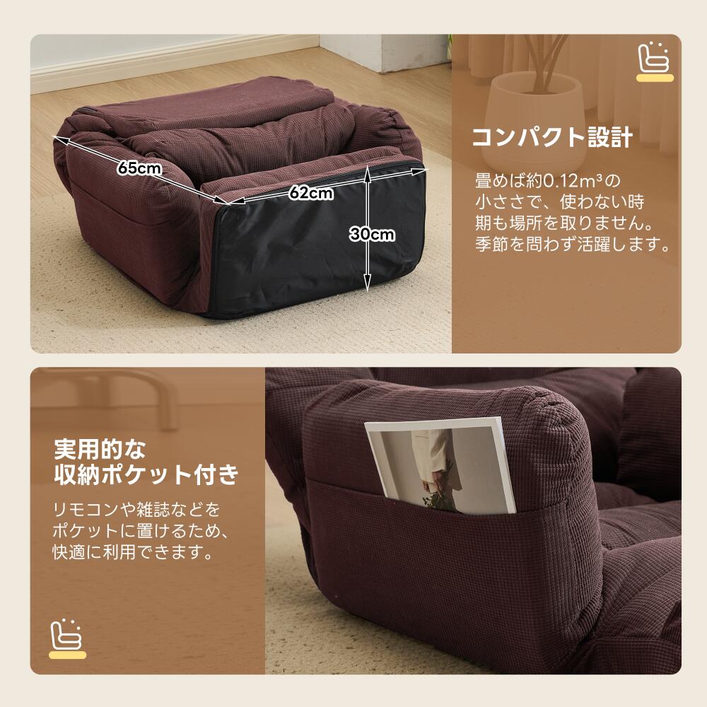 座椅子 折りたたみ 6段調整可能 肘掛 アイボリー グレー ブルー ブラウン