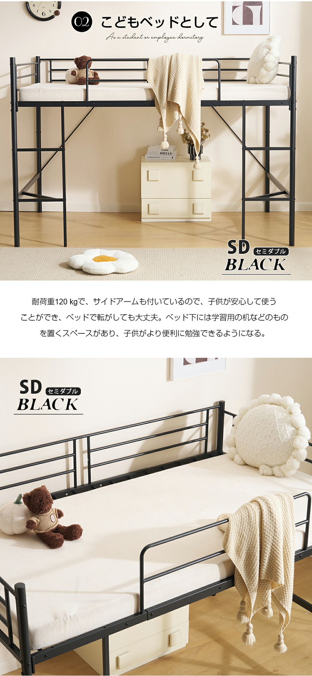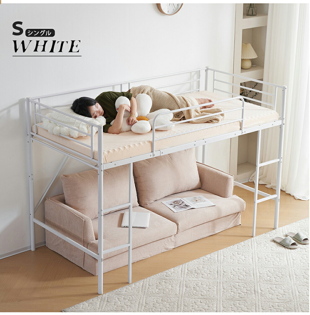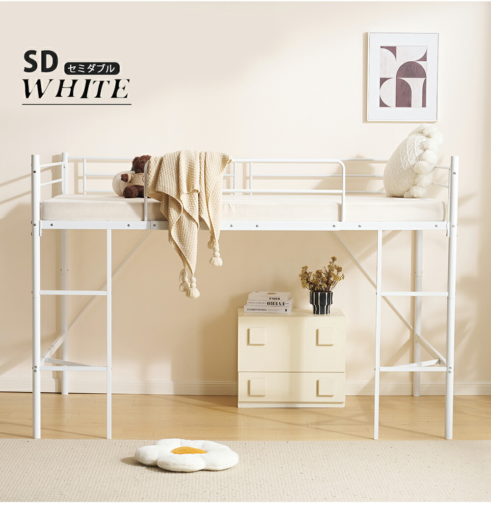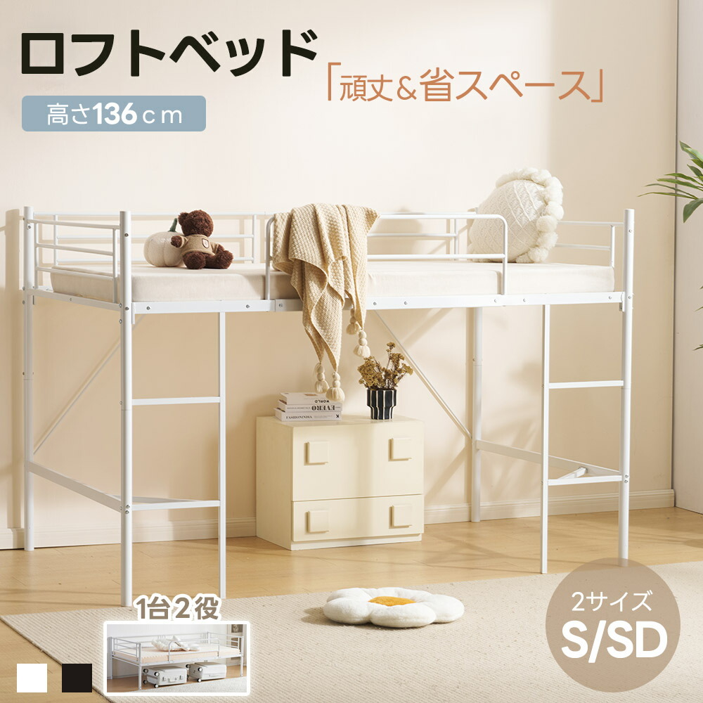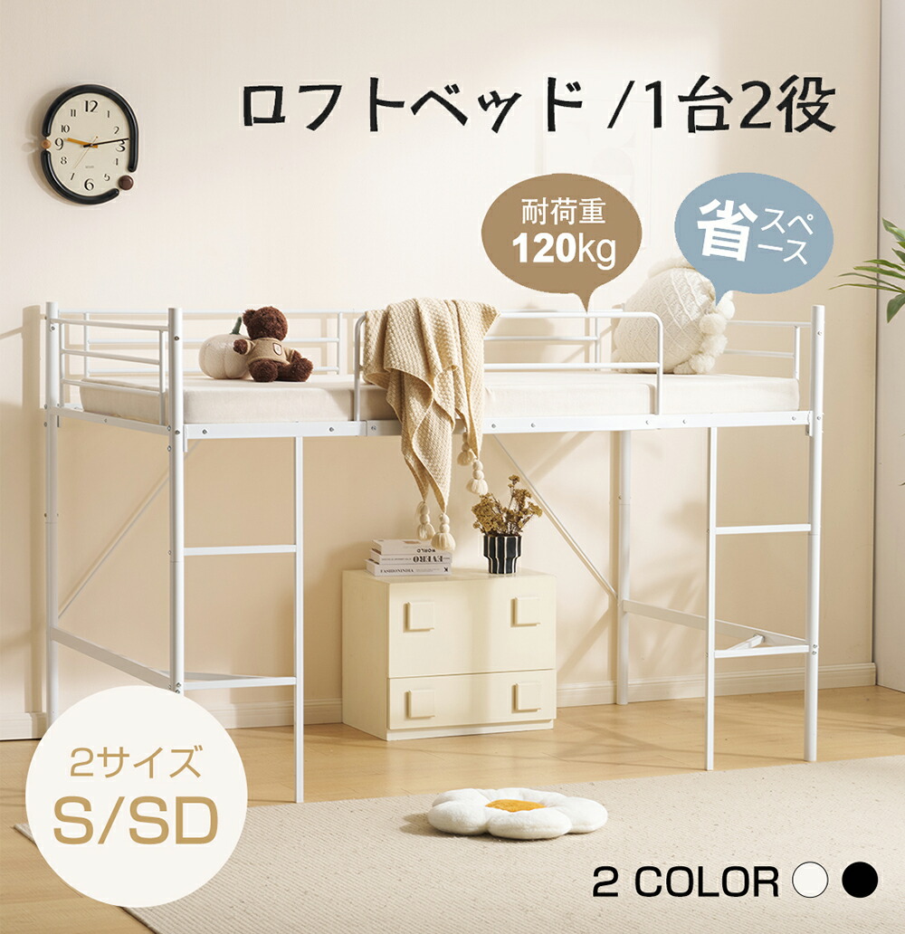ロフトベッド 1台2役 耐荷重120k シングル セミダブル ホワイト ブラック