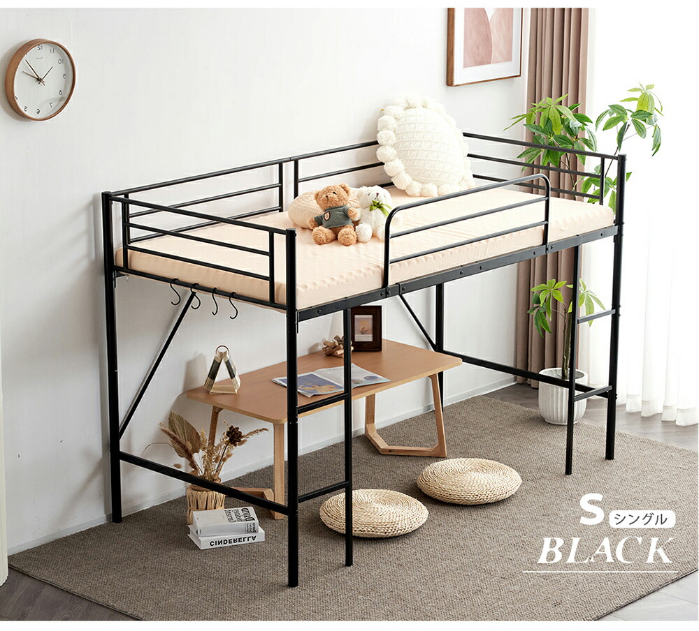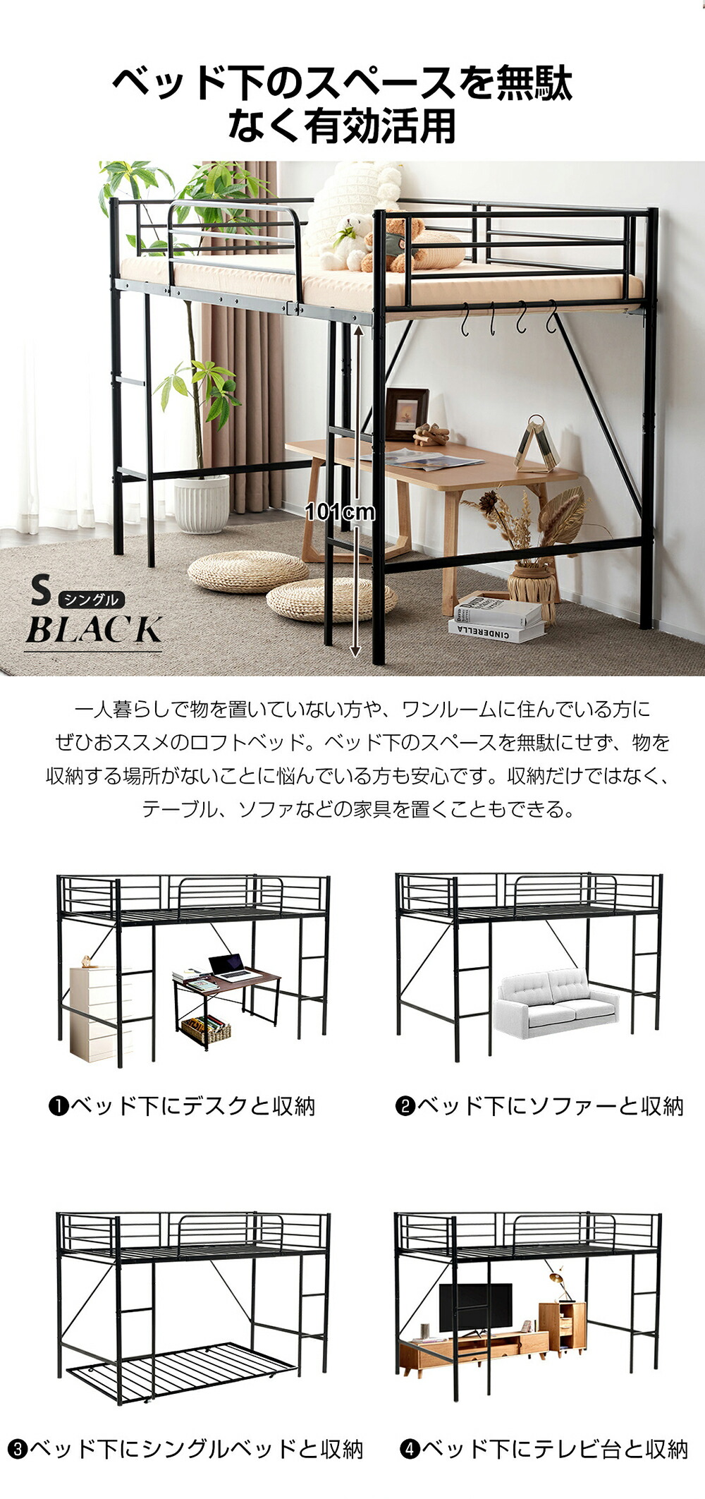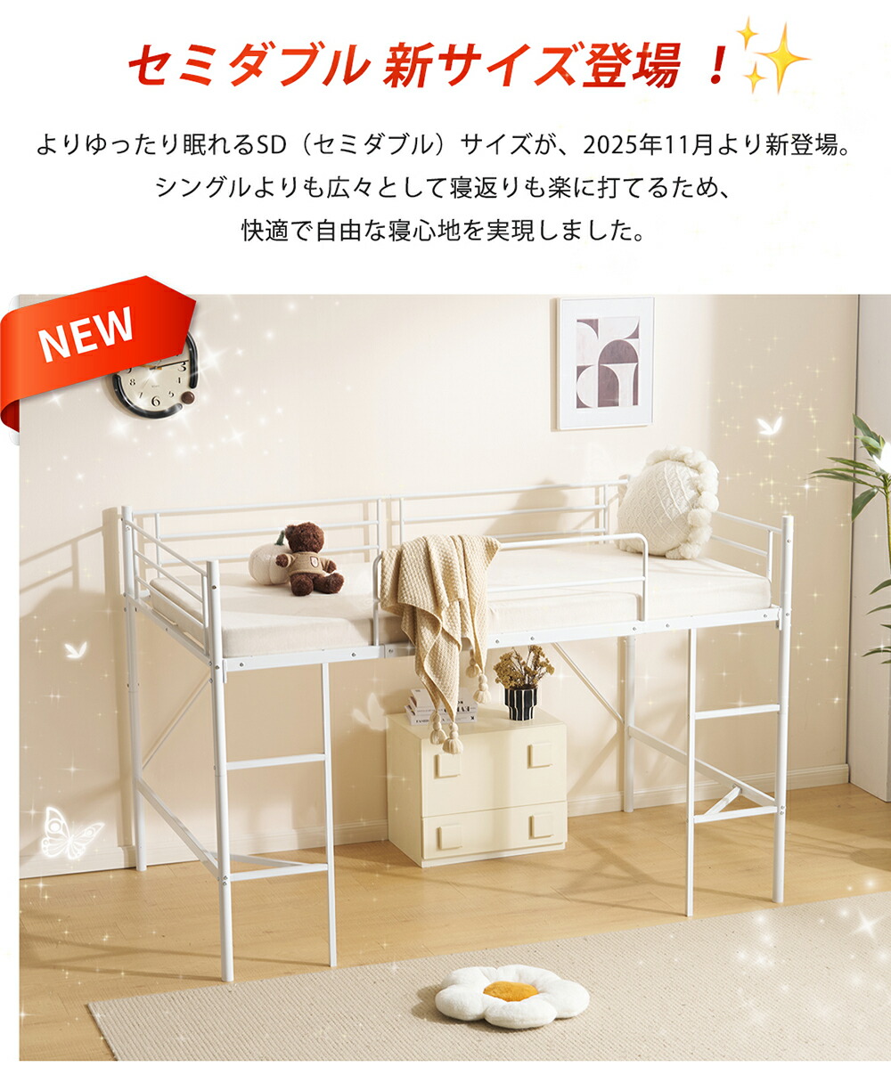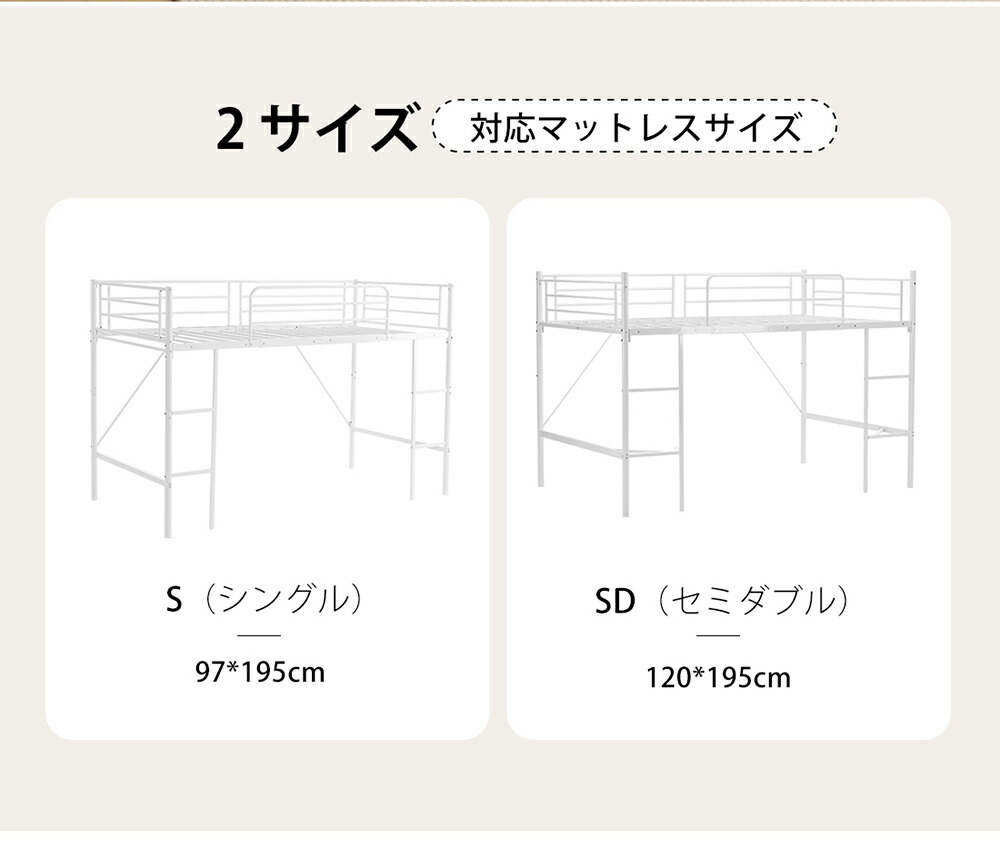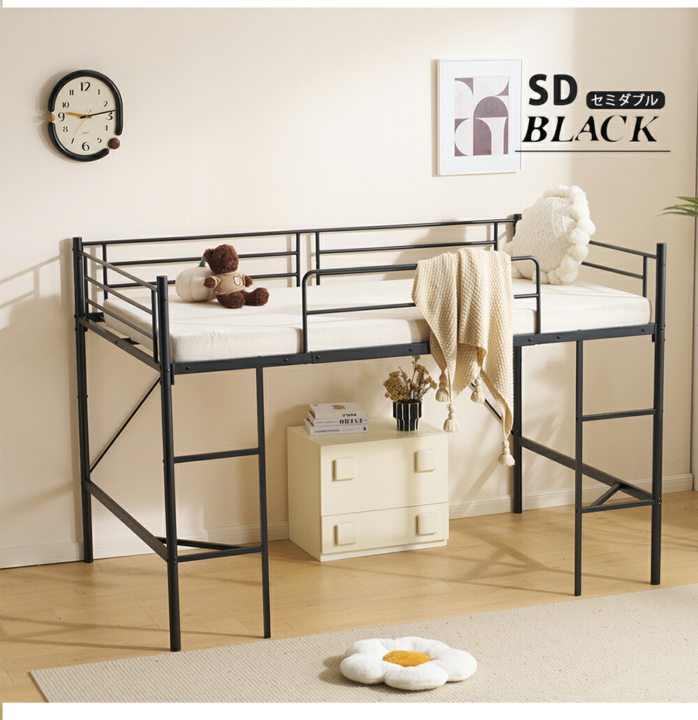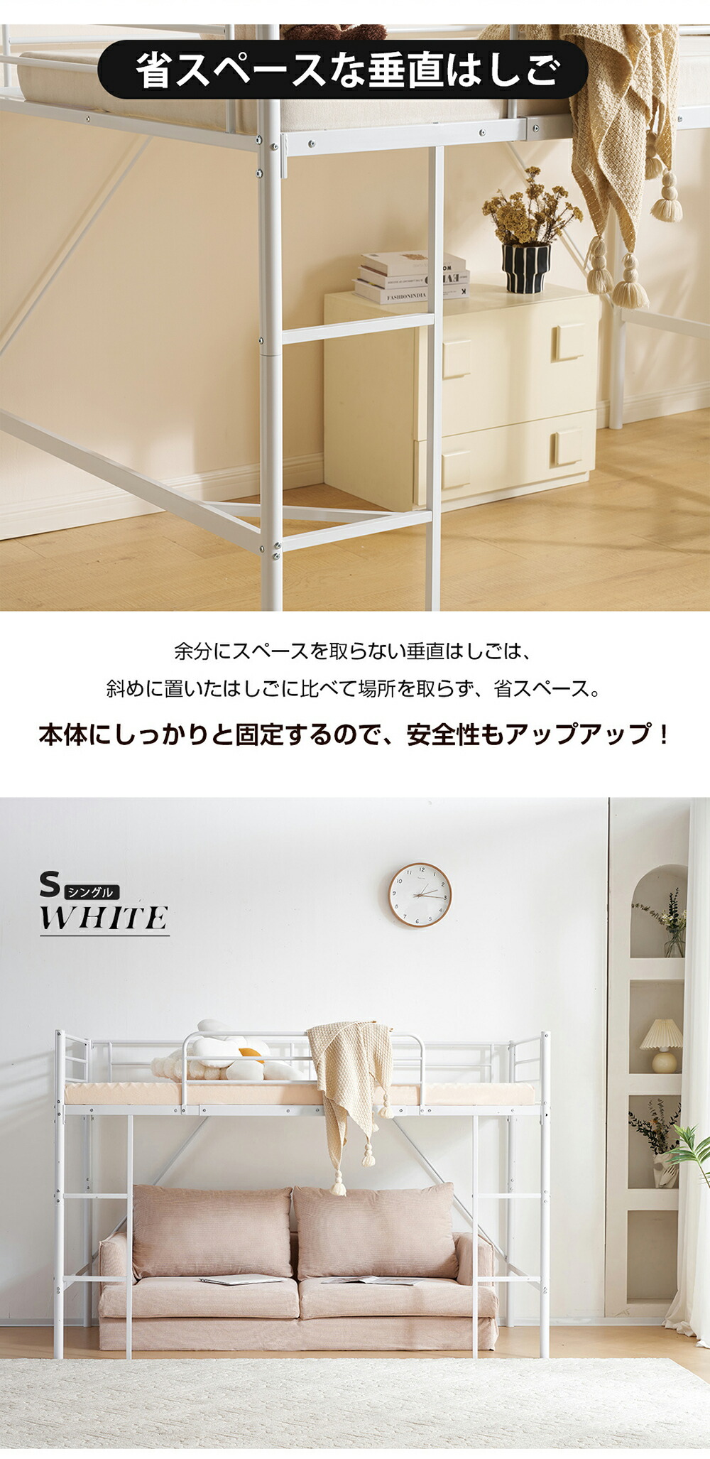 ロフトベッド 1台2役 耐荷重120k シングル セミダブル ホワイト ブラック