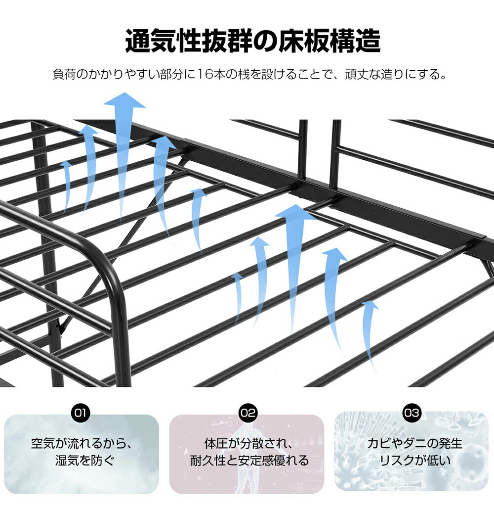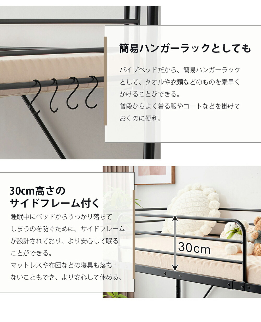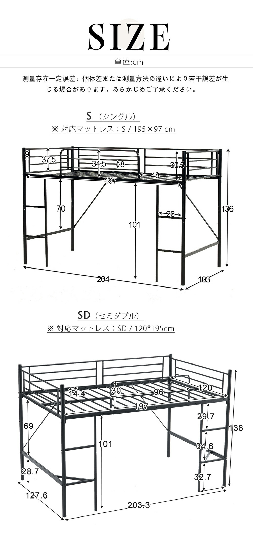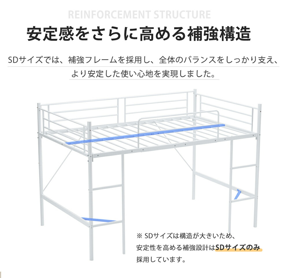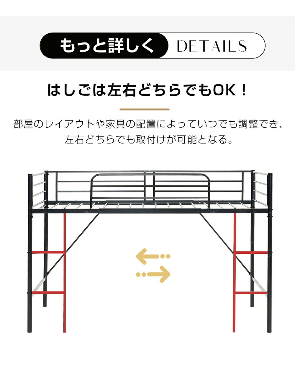 ロフトベッド 1台2役 耐荷重120k シングル セミダブル ホワイト ブラック