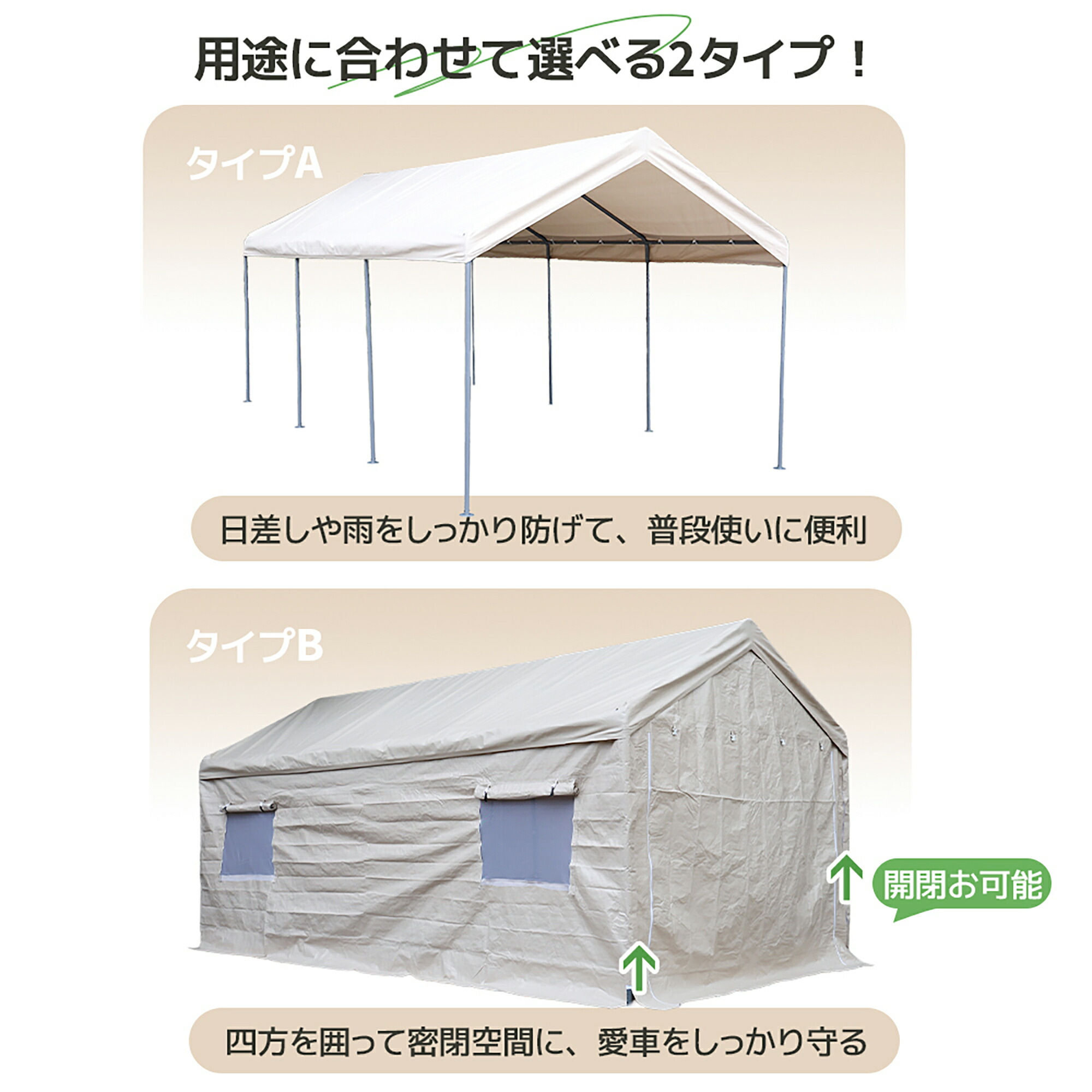 バイクガレージ テント 車庫テント ガ カバーなし カバー付き
